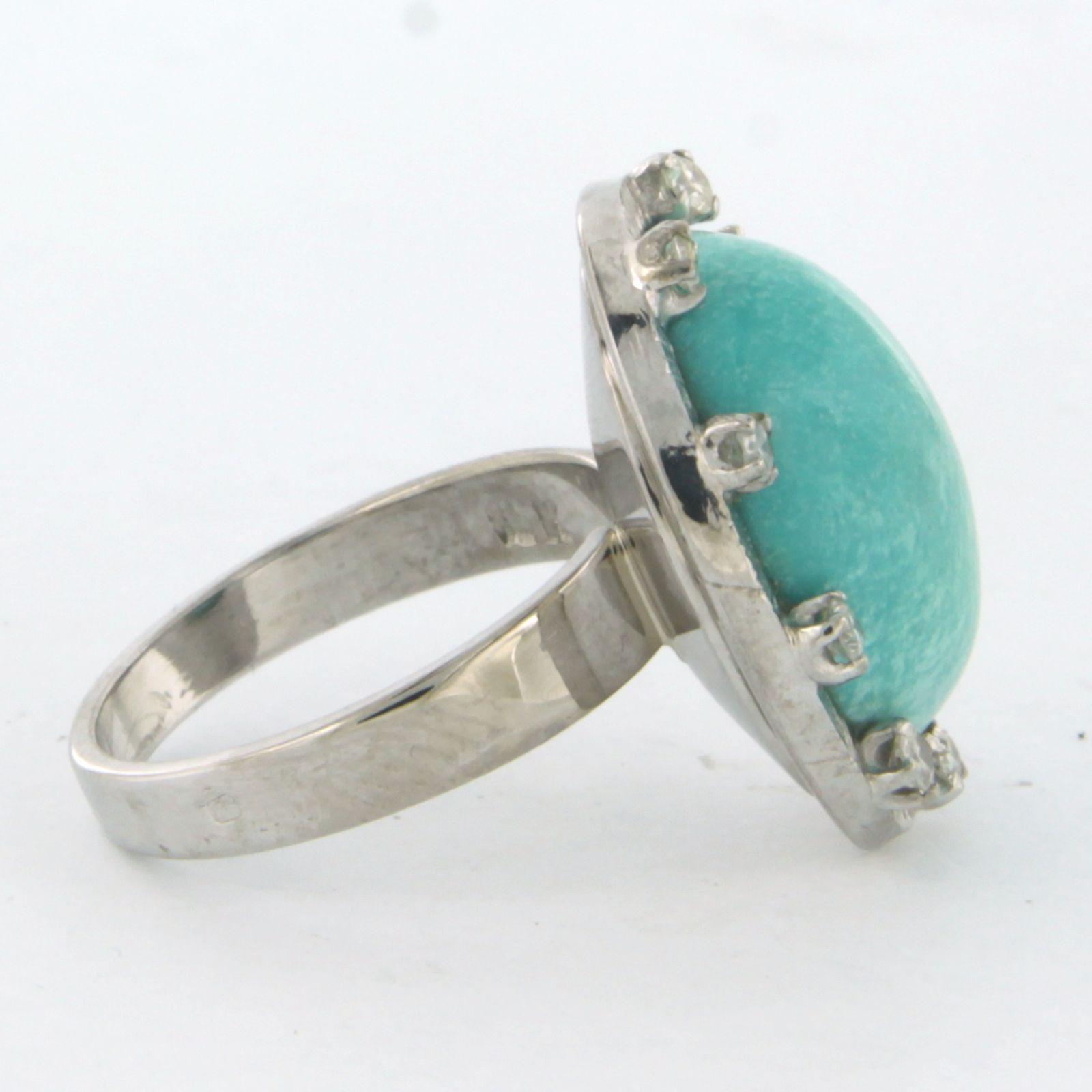 18 Kt. witgouden ring bezet met amazoniet en single cut geslepen diamant 0.18 ct ringmaat 15.25
