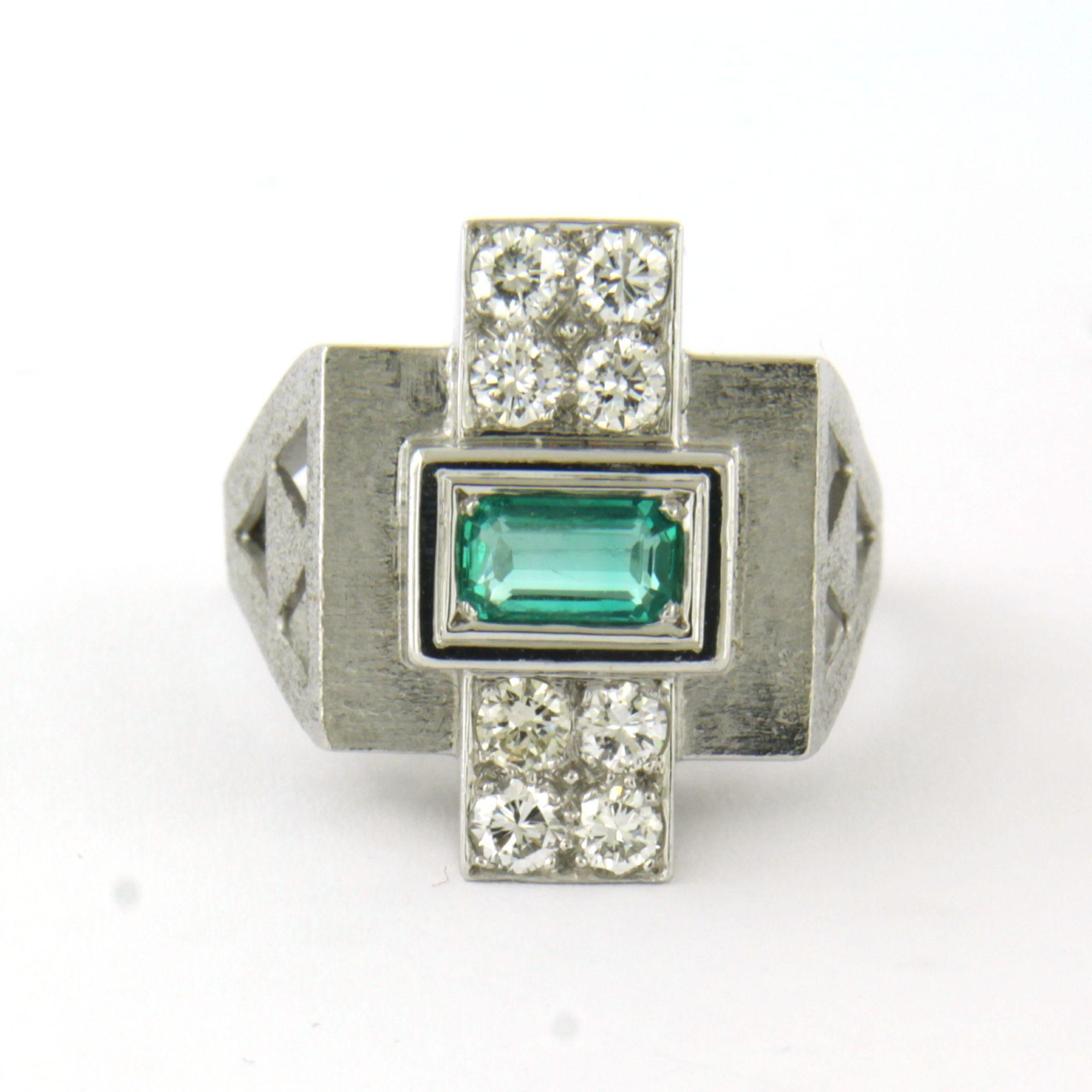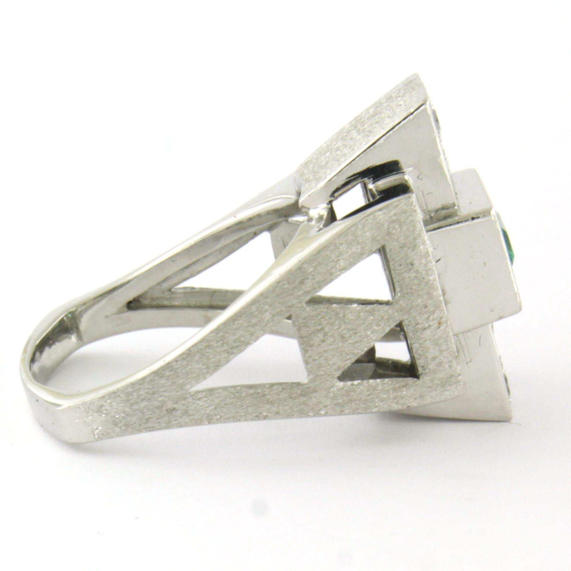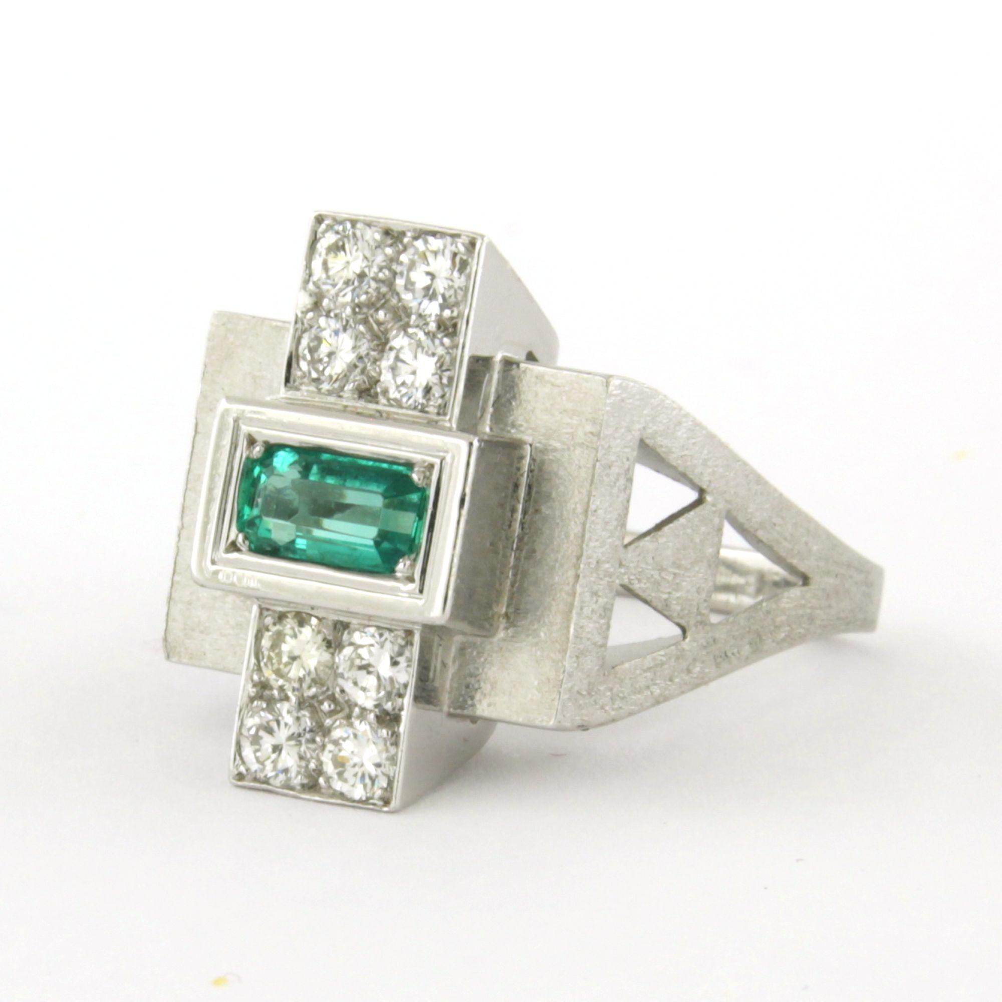 14 Kt. witgouden ring bezet met smaragd en briljant geslepen diamant tot. 0,50ct - ringmaat 17(53)