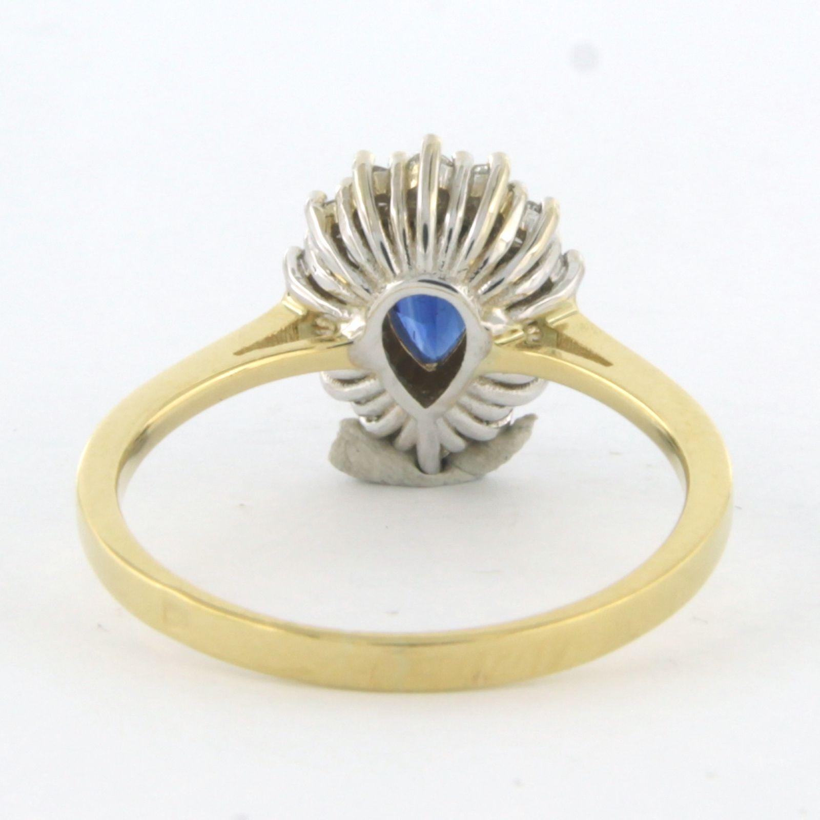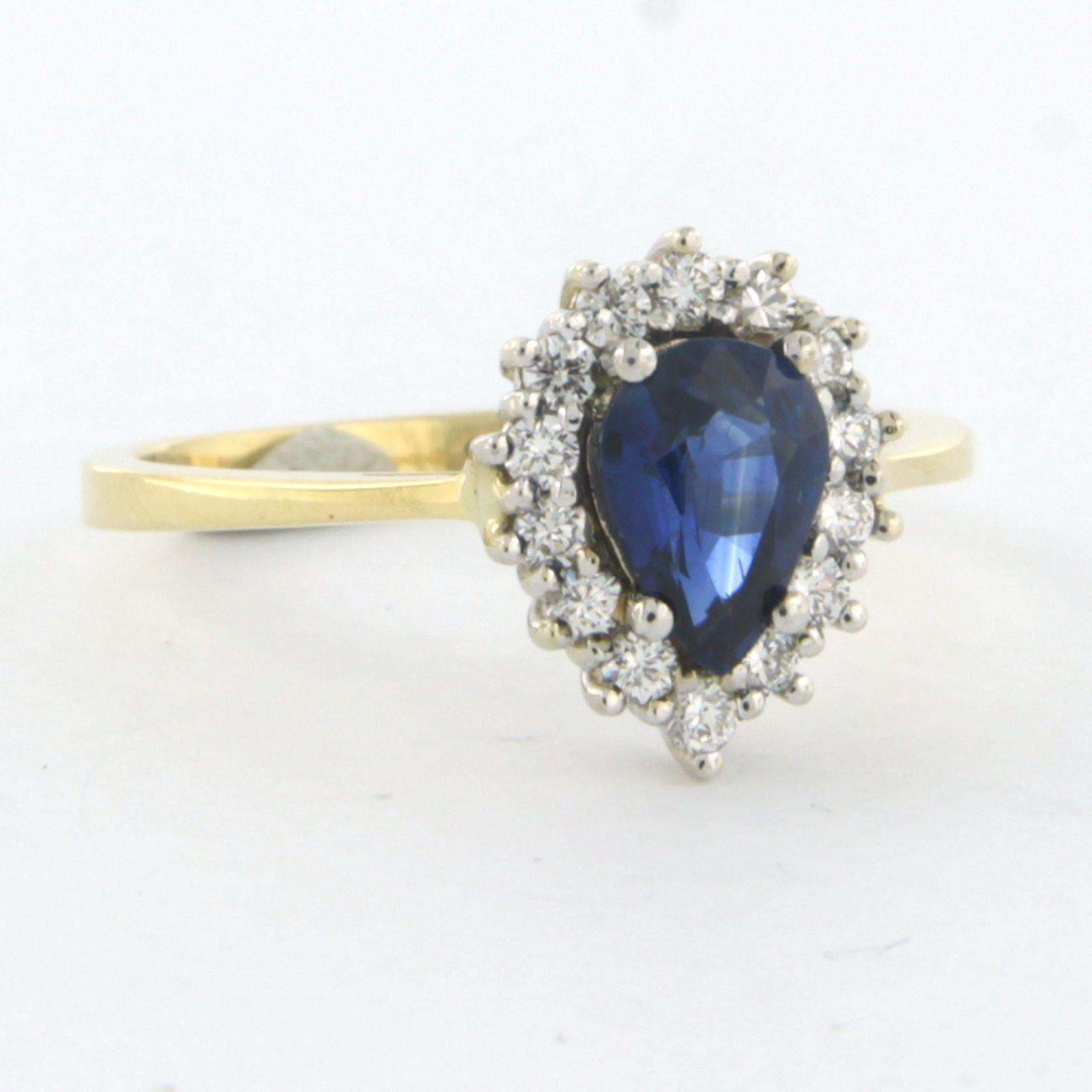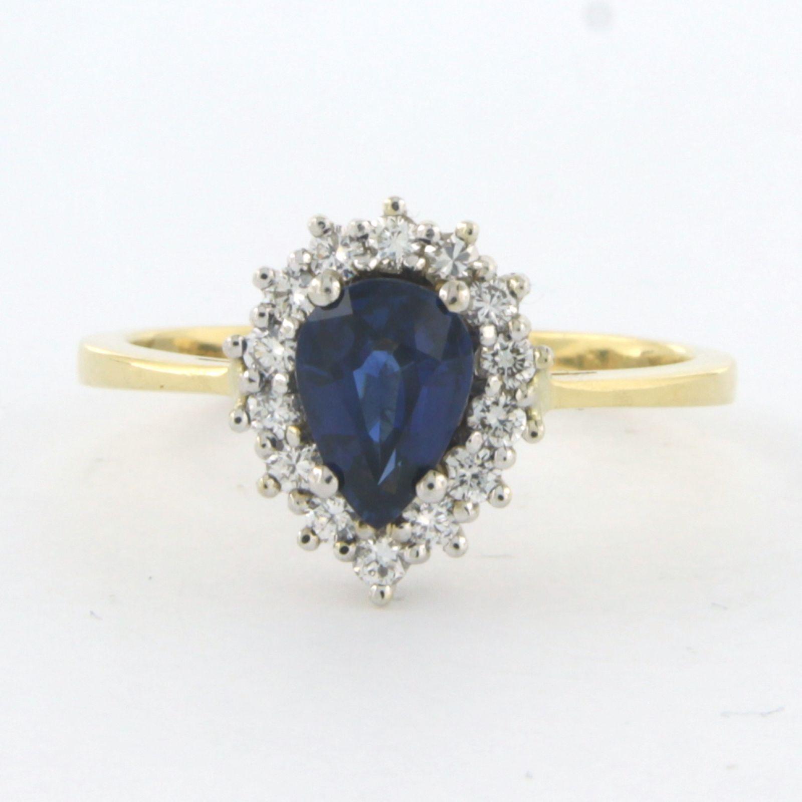 18 Kt. bicolour gouden ring bezet met saffier 1.04ct en briljant geslepen diamanten totaal 0.32ct - ringmaat 17.5(55)