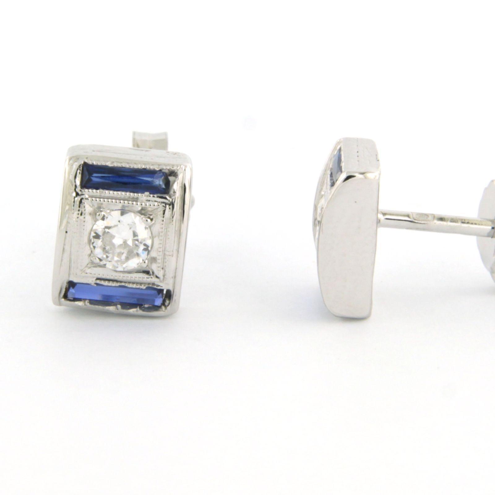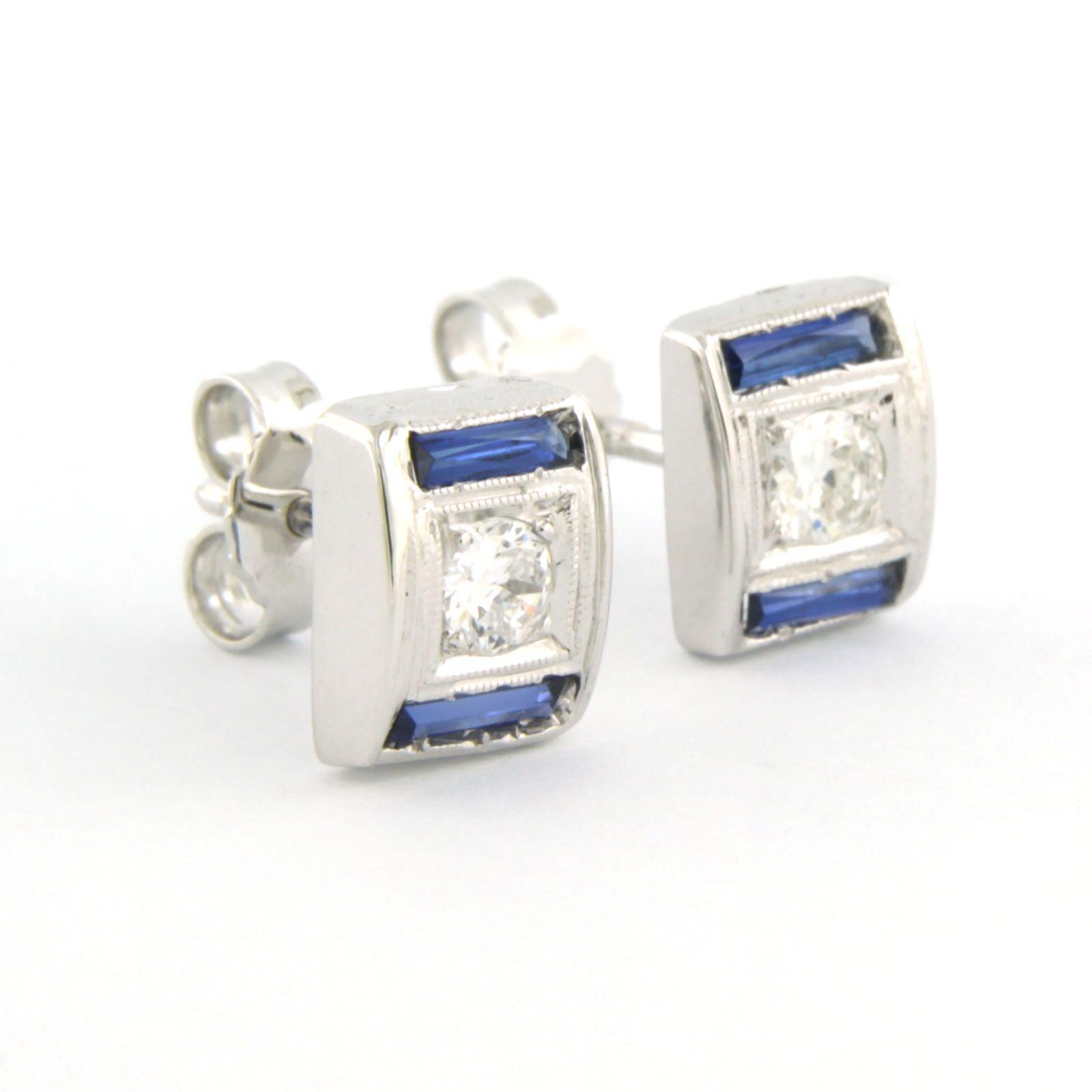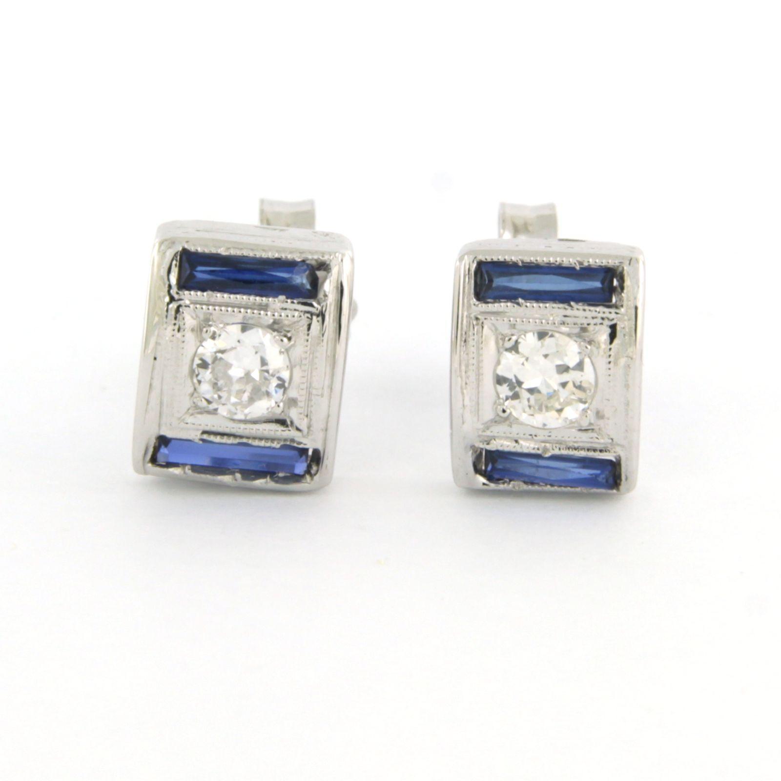 14 Kt. gouden oorknoppen bezet met saffier en oud Europees slijpvorm geslepen diamant totaal 0.60ct