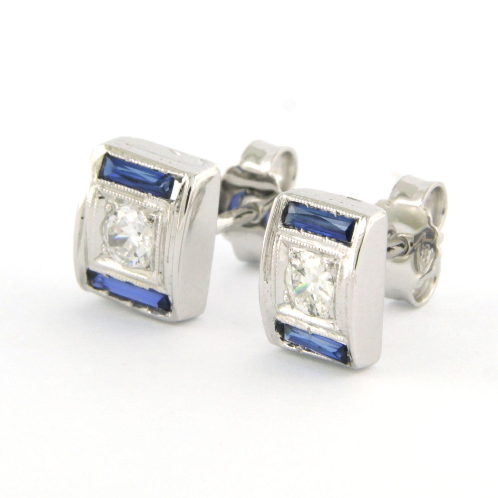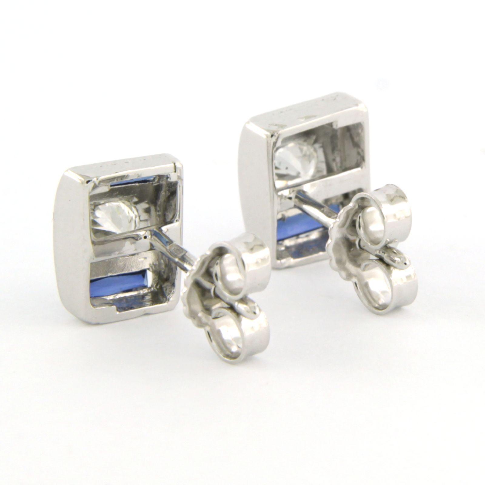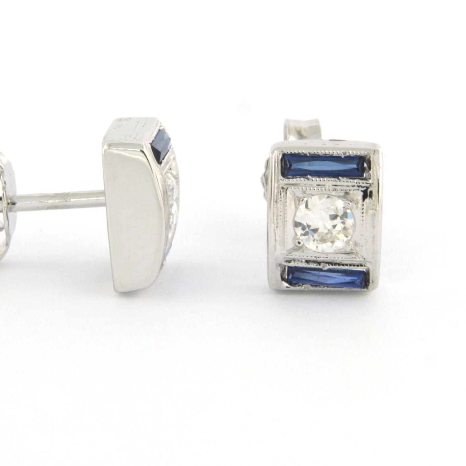 14 Kt. gouden oorknoppen bezet met saffier en oud Europees slijpvorm geslepen diamant totaal 0.60ct