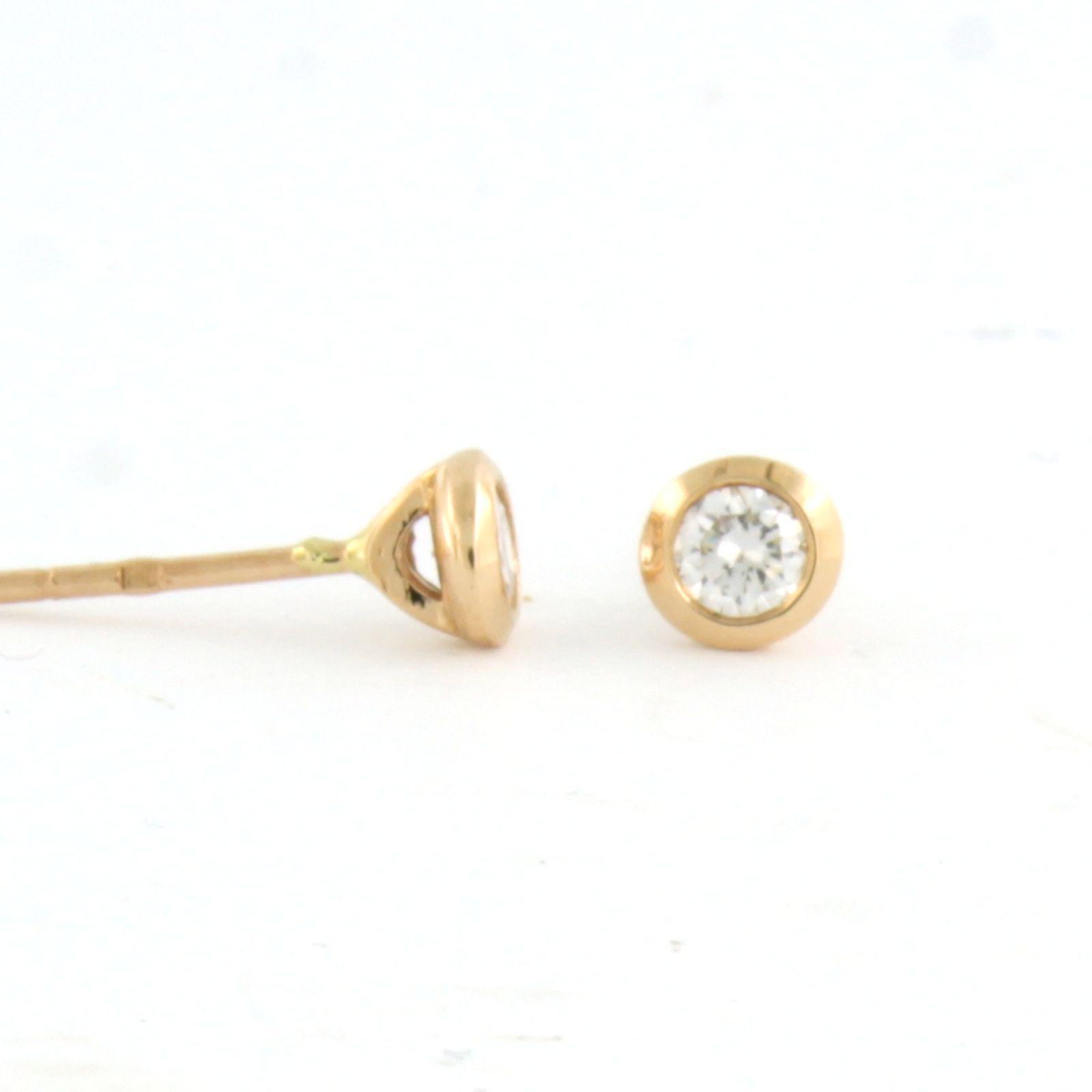 18 Kt. roségouden solitair-oorknoppen bezet met briljant geslepen diamant tot. 0.10ct
