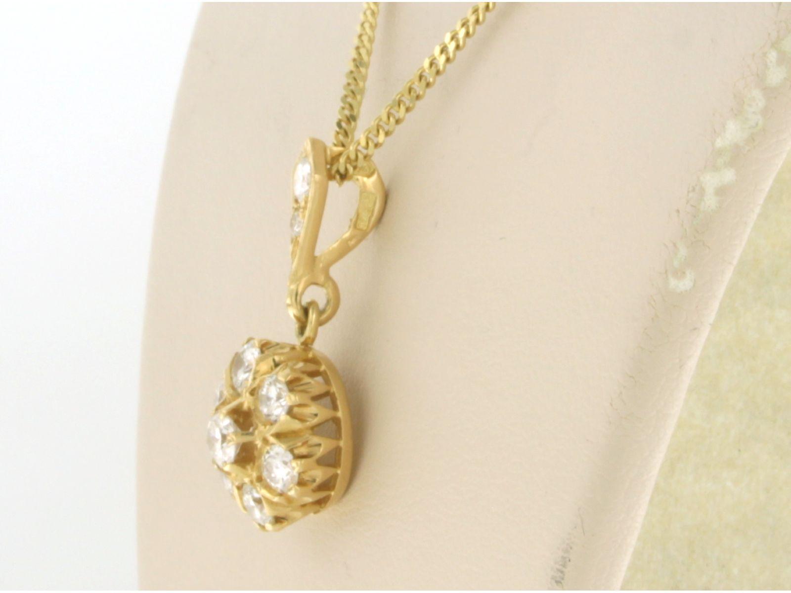 14 Kt. gouden collier met 18 Kt. gouden hanger bezet met briljant geslepen diamanten totaal 1.30 ct F/G VS/SI - lengte 45 cm