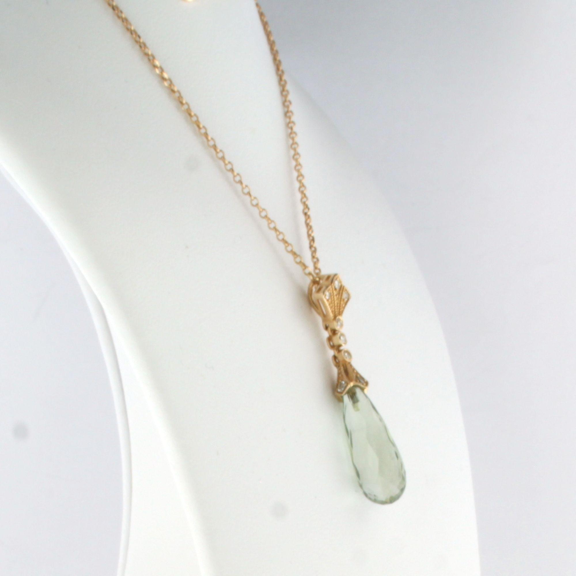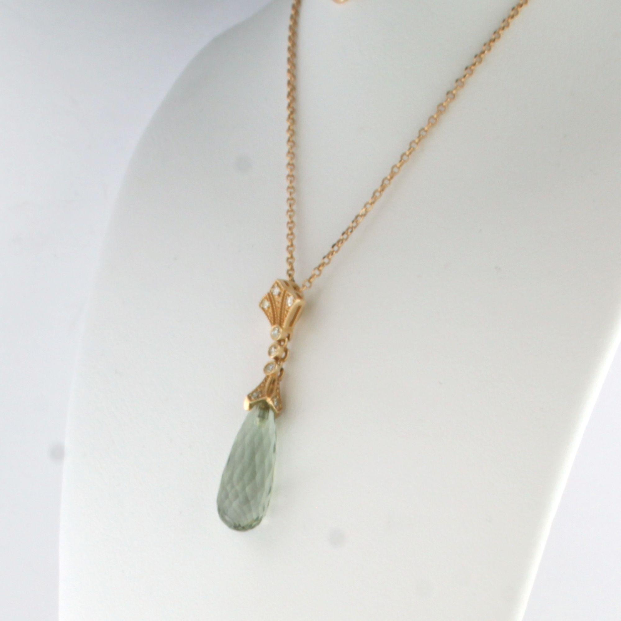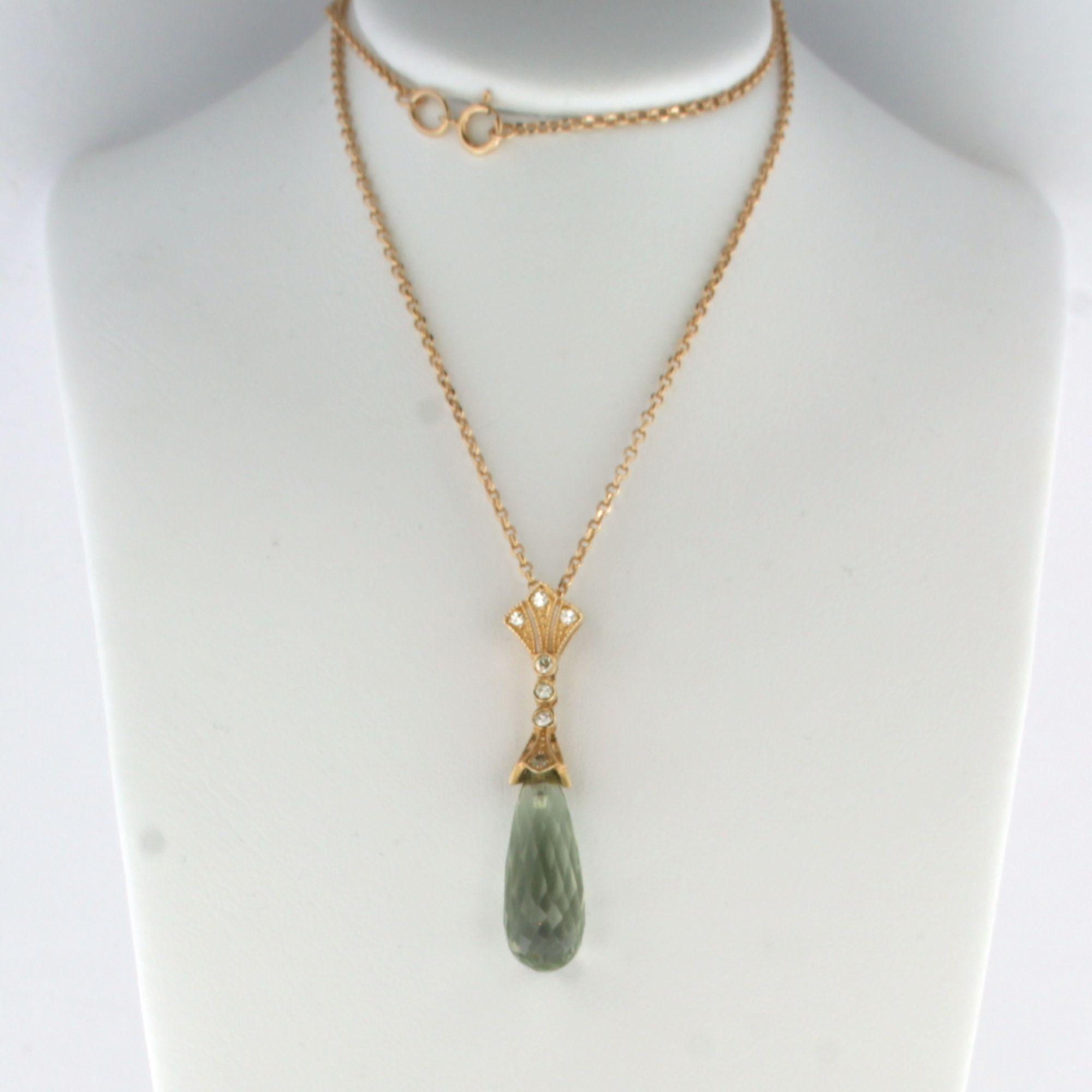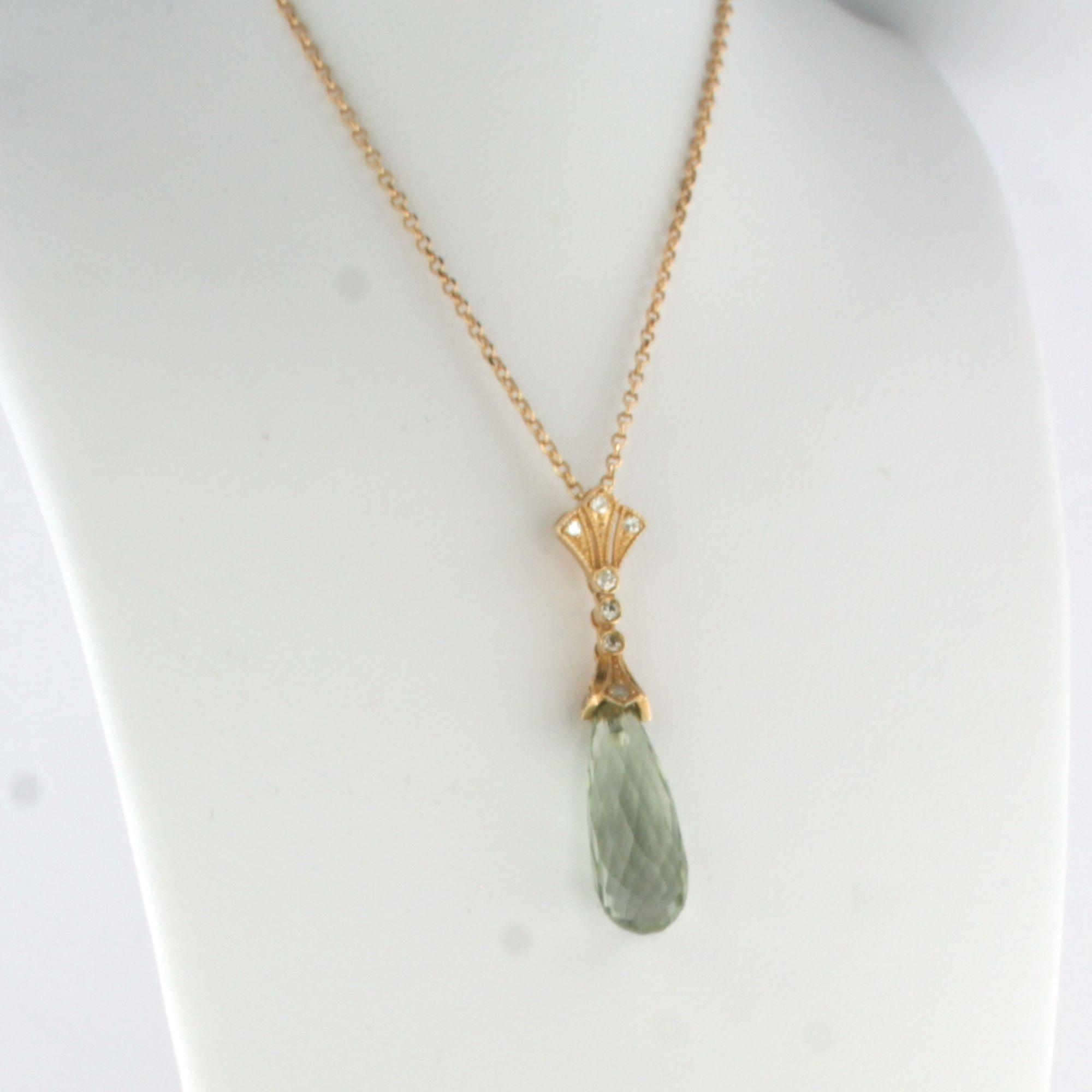 14 Kt. roodgouden collier met hanger bezet met groene kwarts en single cut geslepen diamanten totaal 0.18ct - lengte 45cm