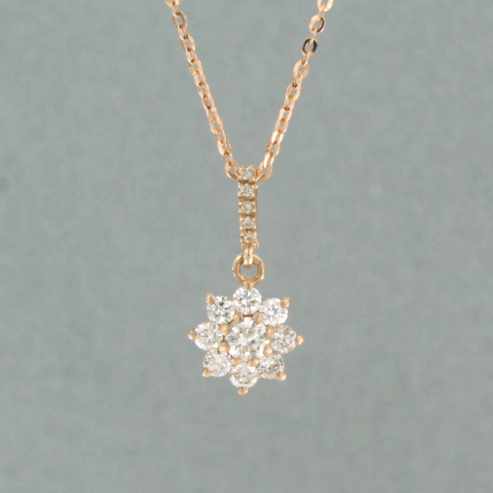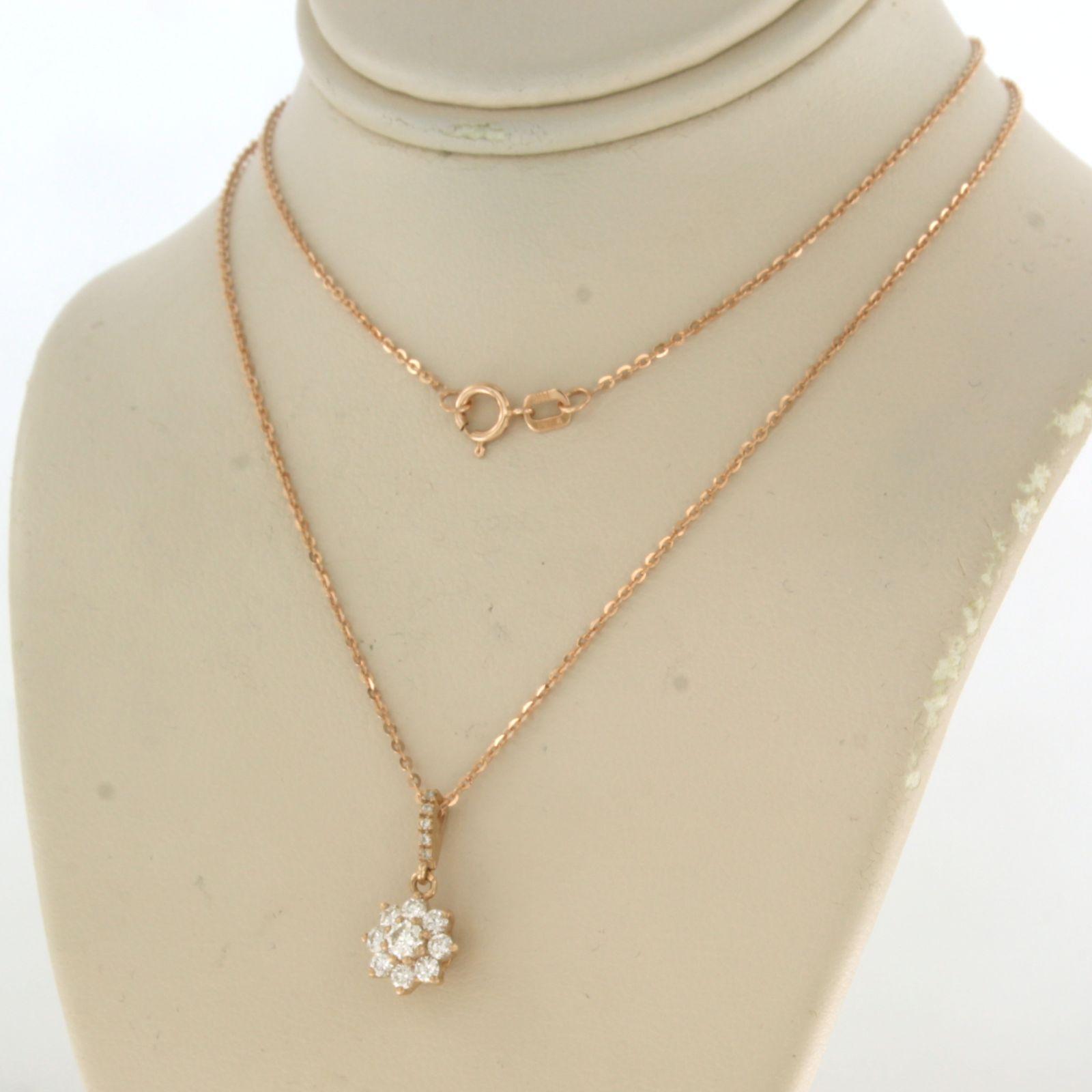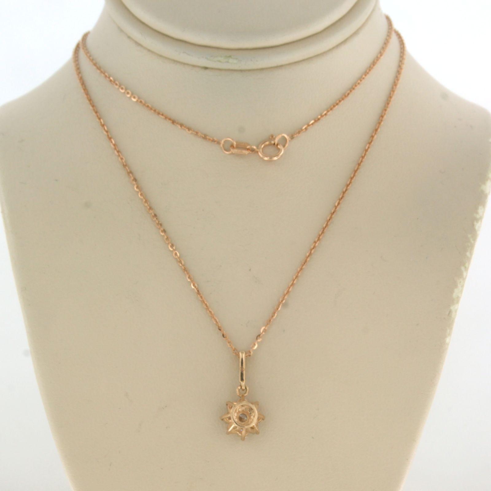 14 Kt. roségouden collier met een entourage hanger bezet met briljant geslepen diamant tot. 0,24ct - 45 cm lang