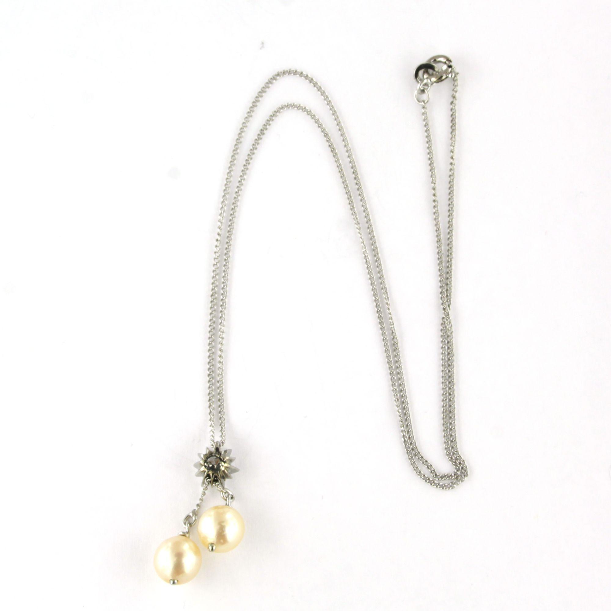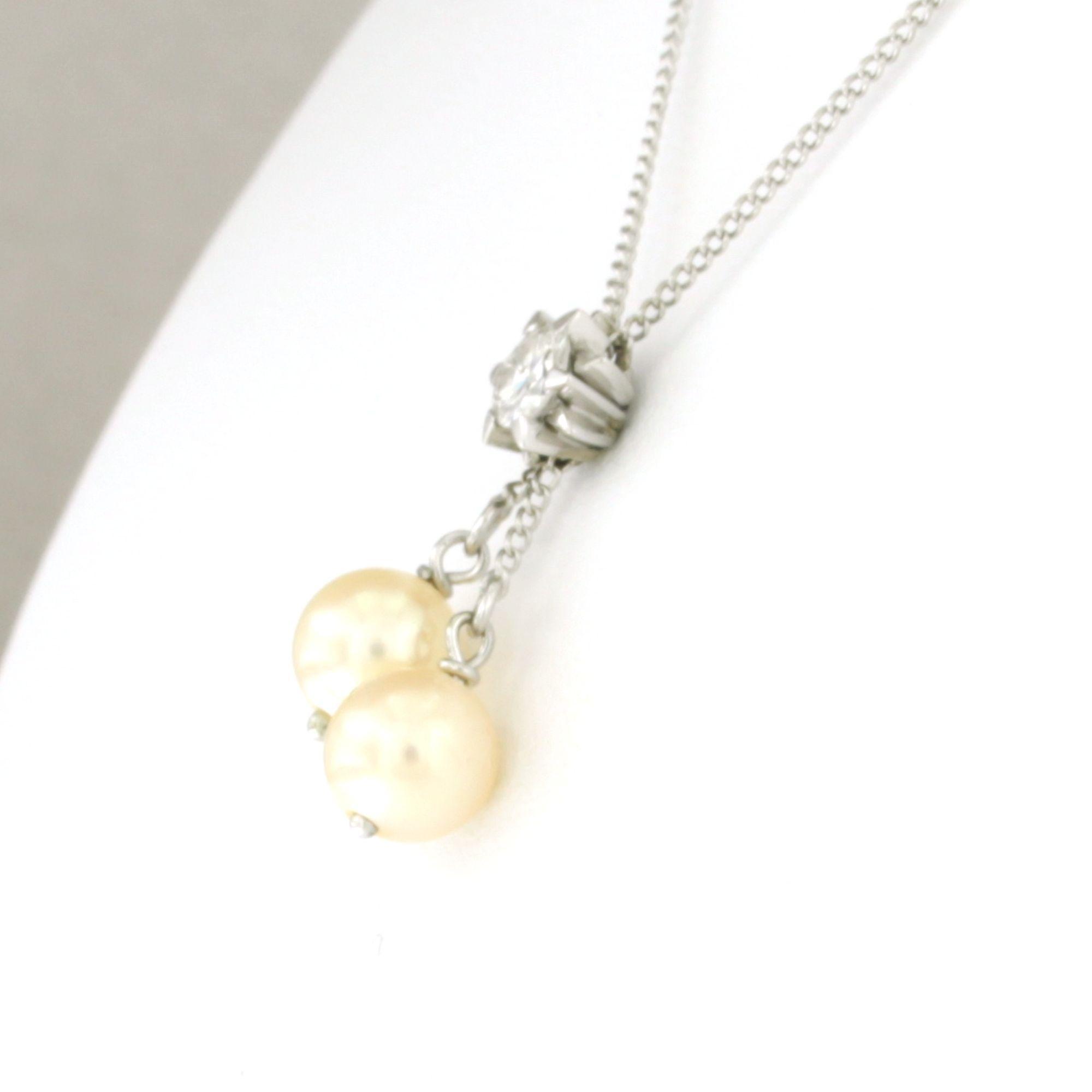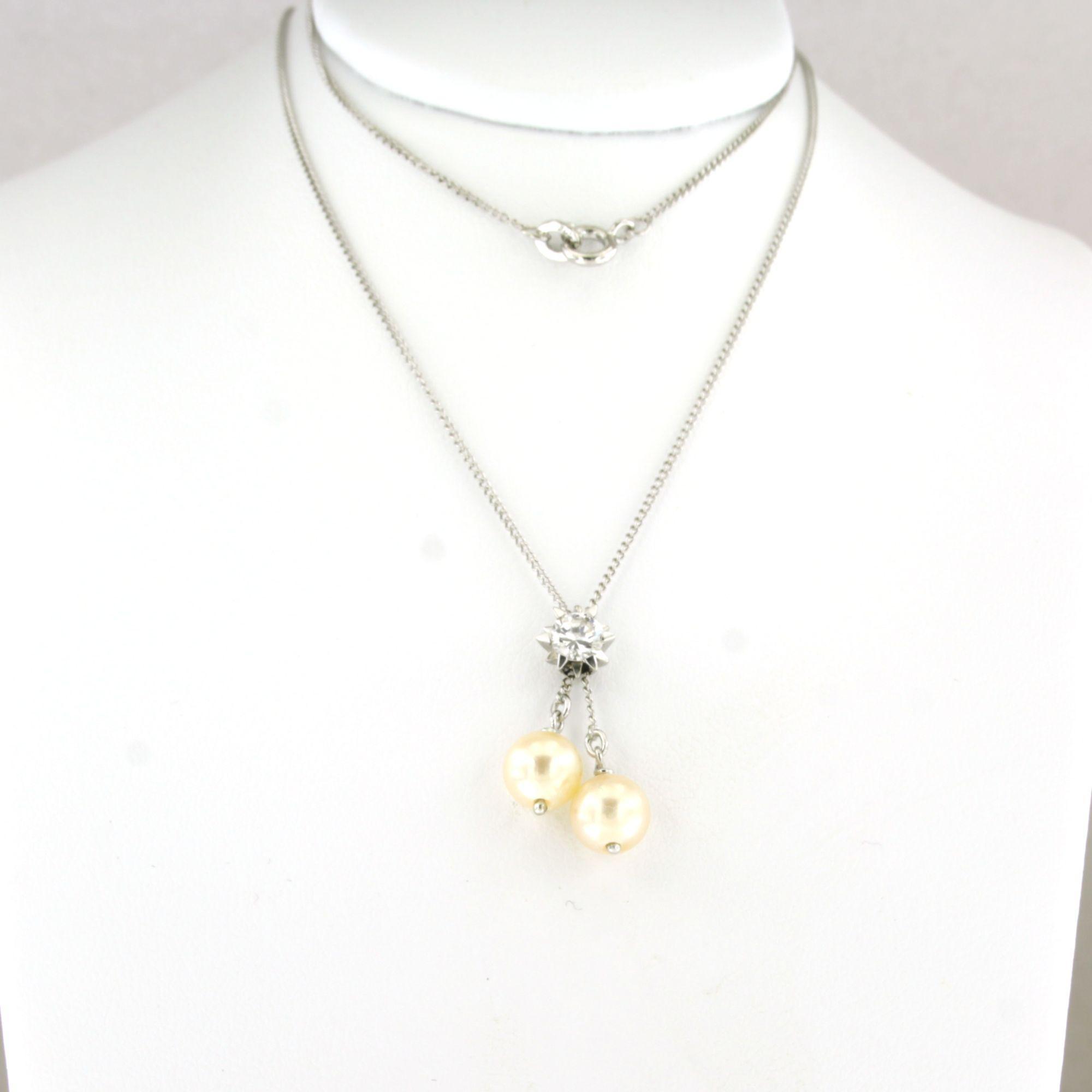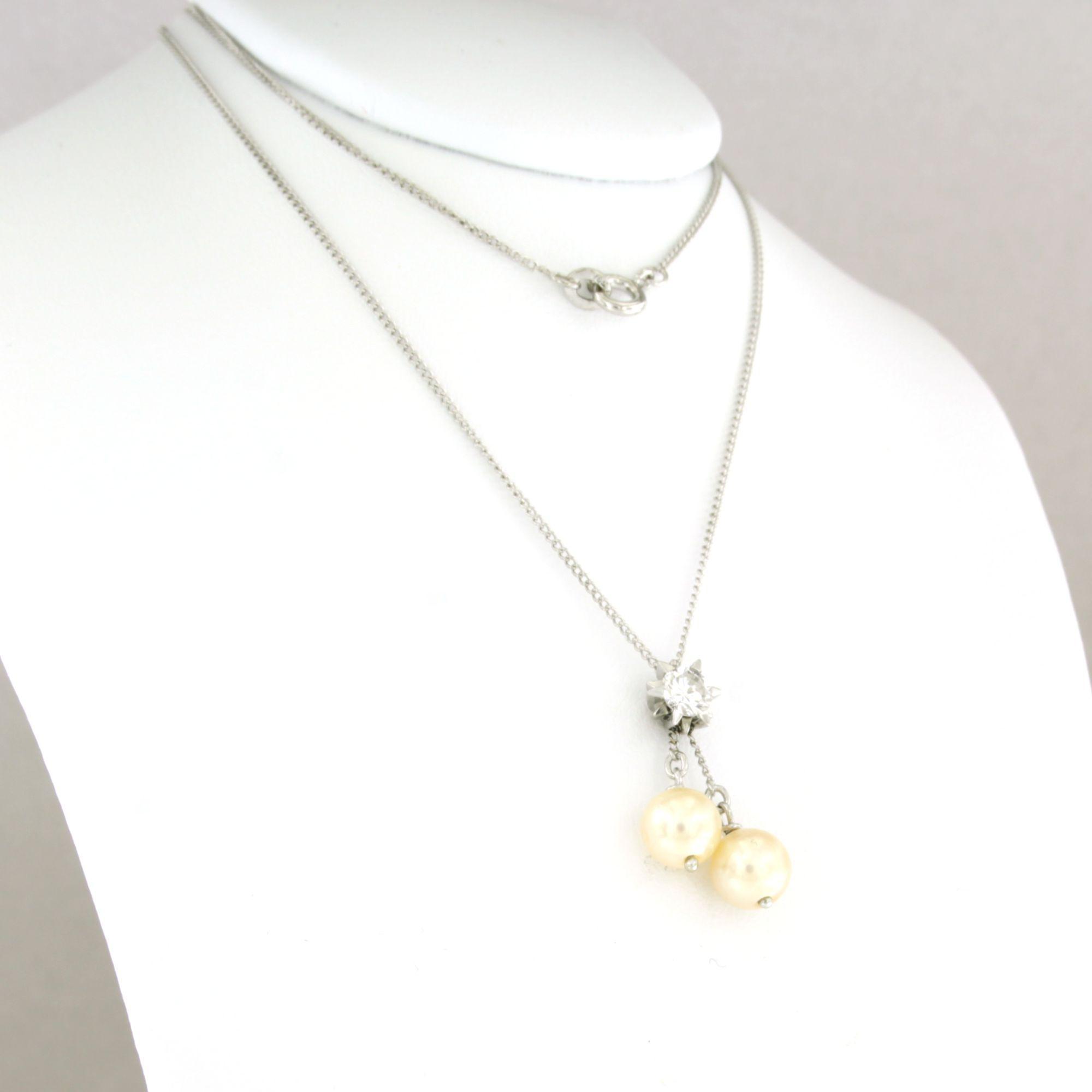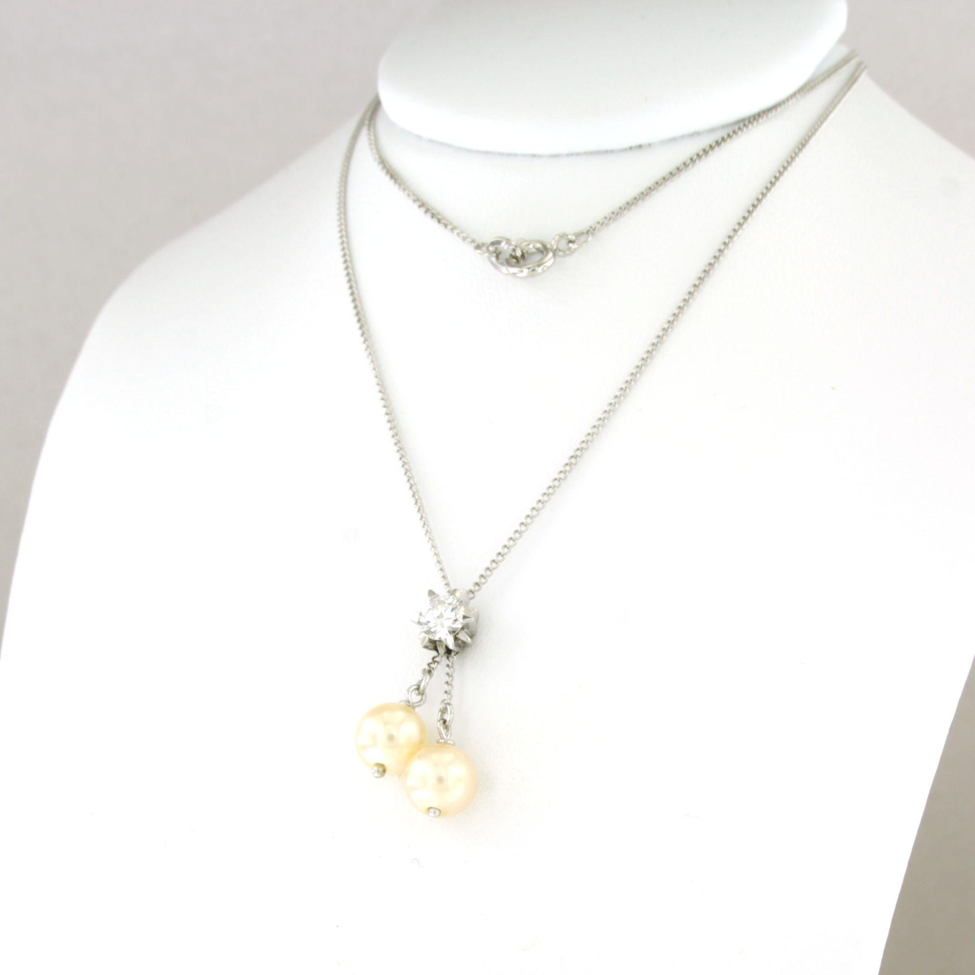 14 Kt. witgouden collier met hanger bezet met parels en briljant geslepen diamant tot. 0,32 F/G - VS/SI - 38 cm lang