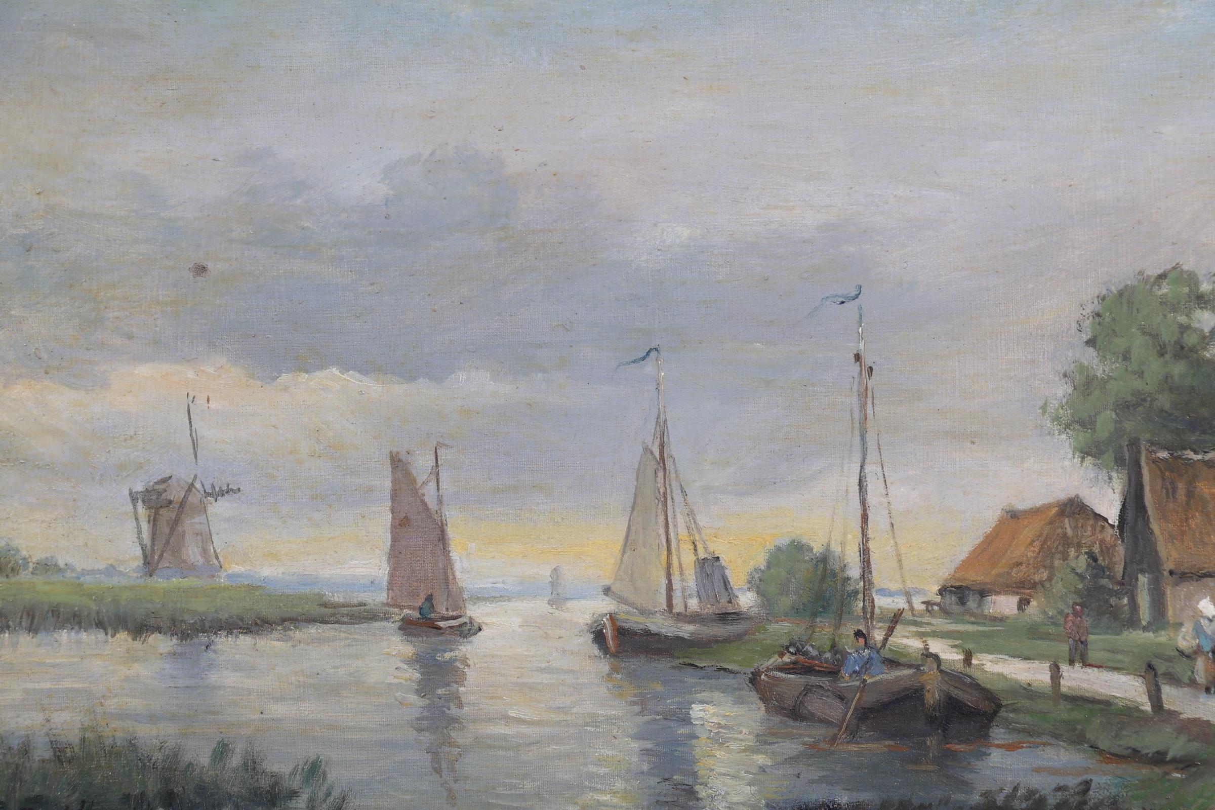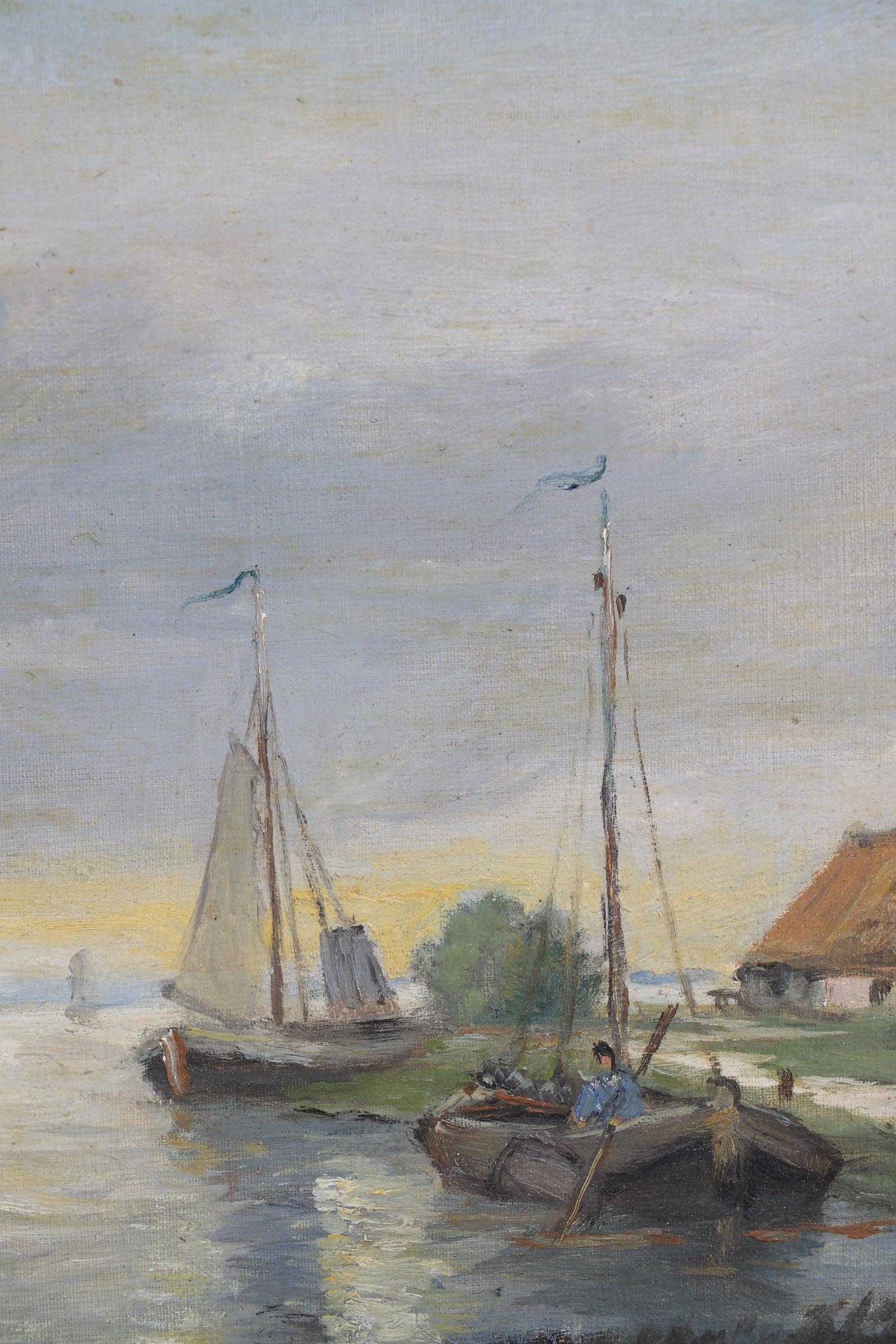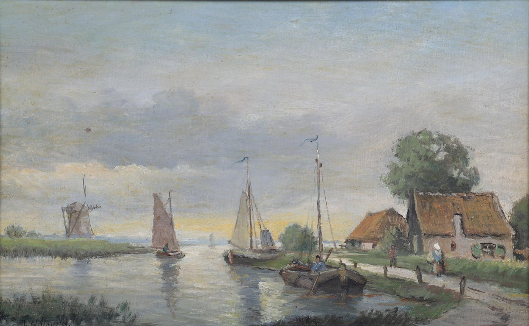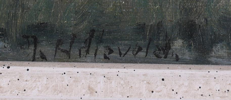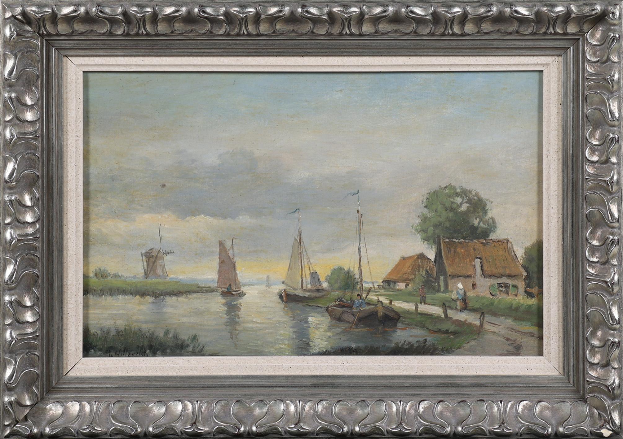 J. Hilleveld, Waterlandschap, olieverf op paneel, 35 x 22cm.