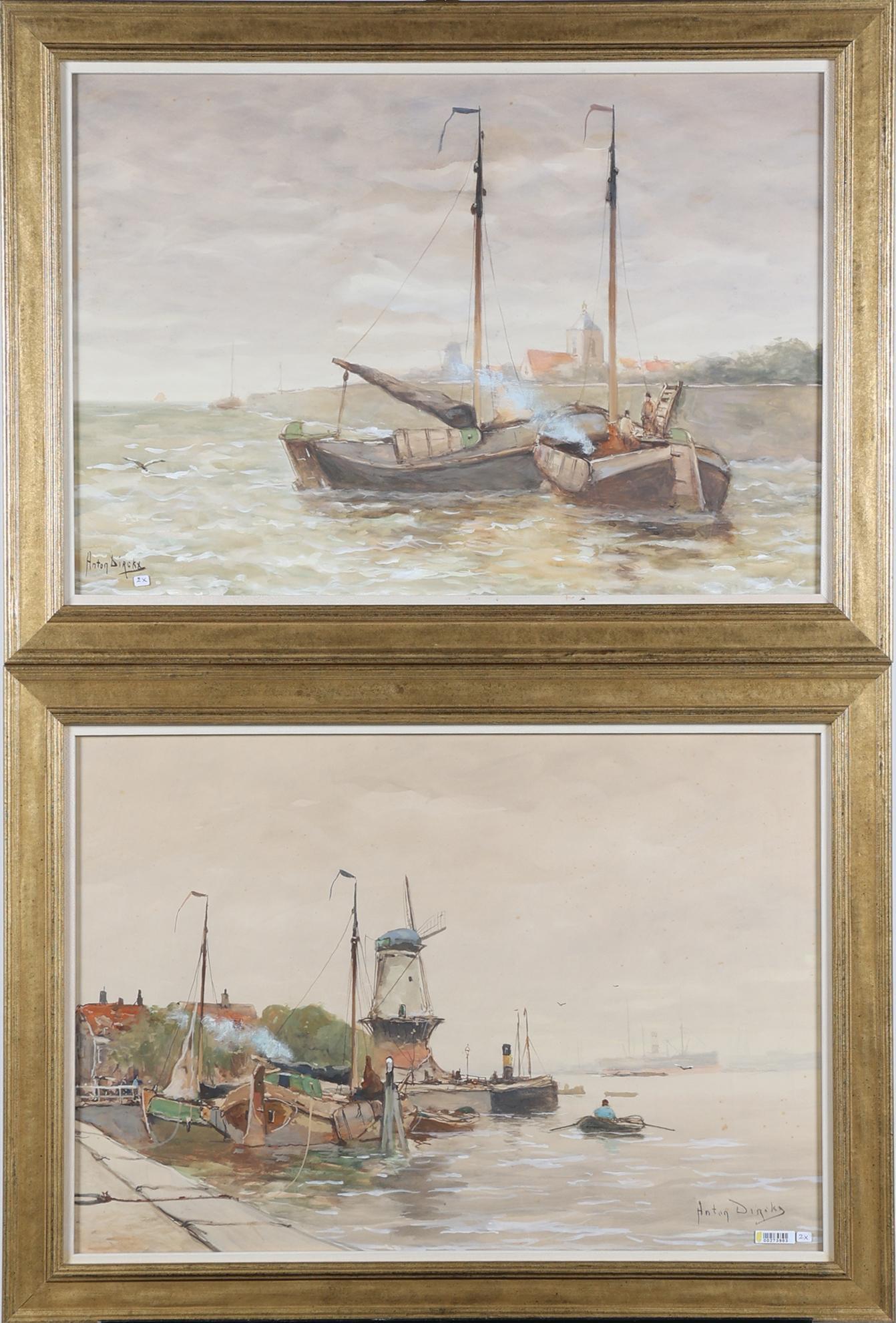 Anton Dirckx (1878-1927), stel aquarellen m.b.t. zeevaart, 61 x 43 cm.