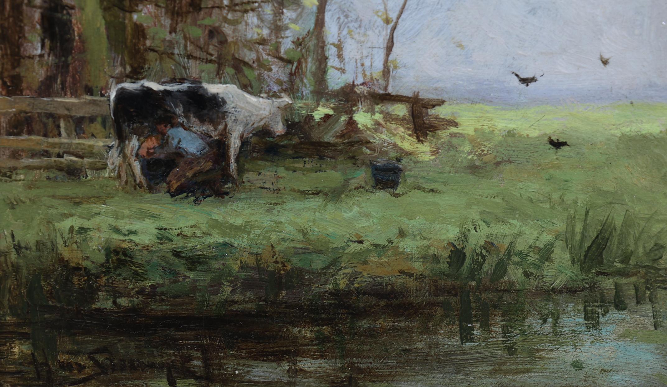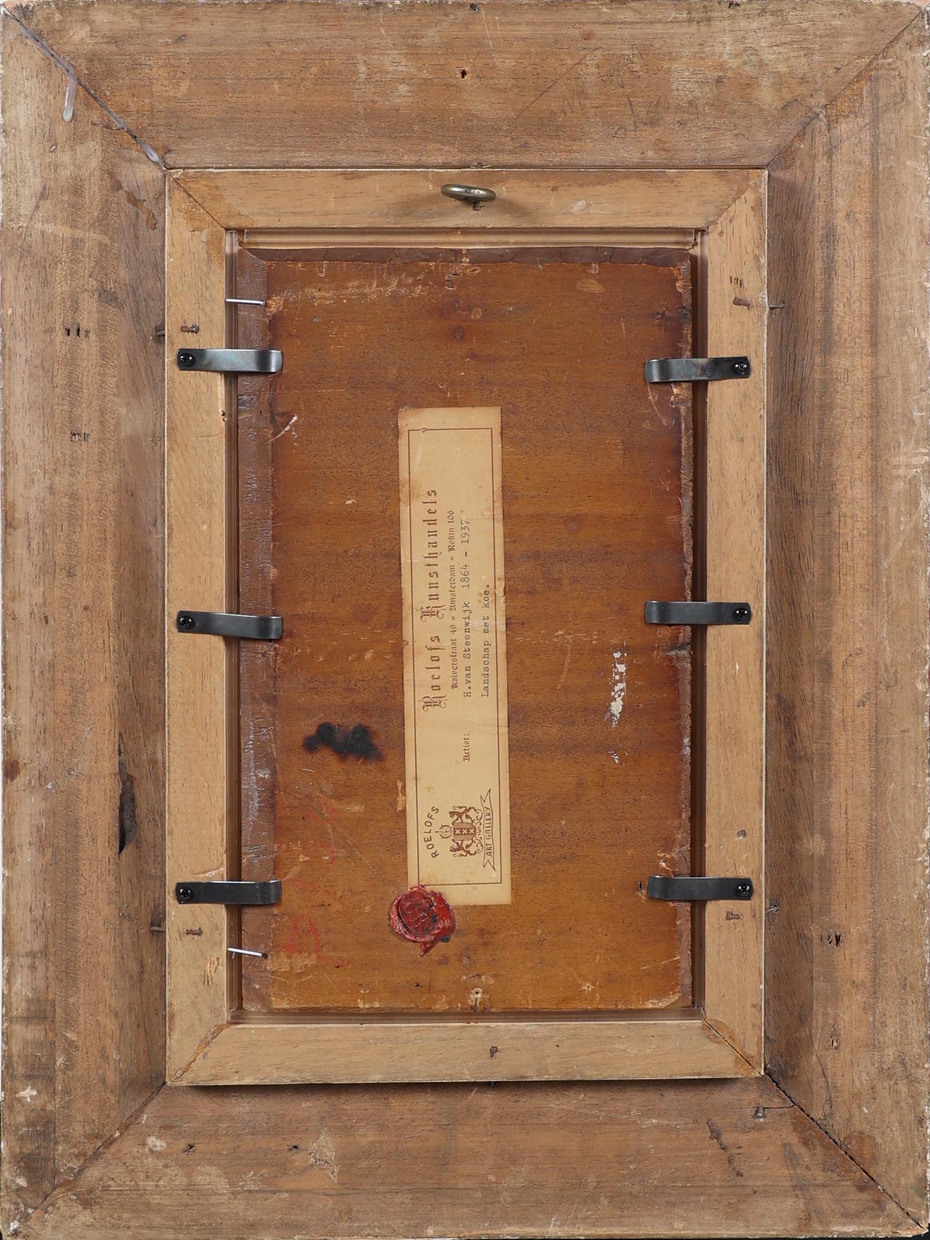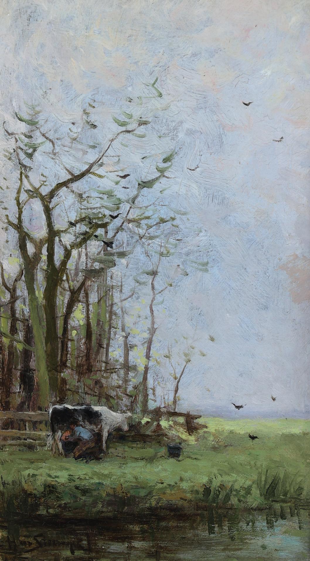 Hendrik van Steenwijk (1864-1937), Weidelandschap, olieverf op paneel, 28 x 16,5 cm.