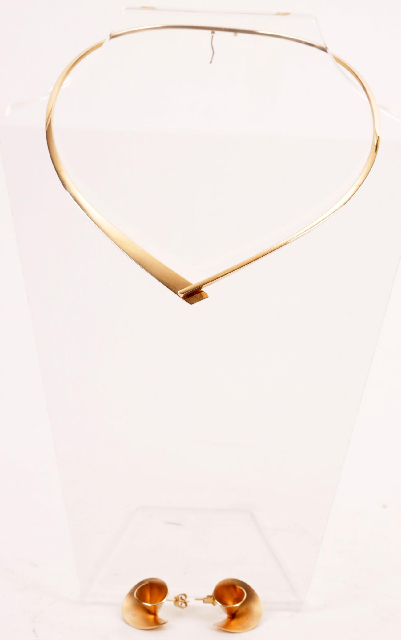 Jean Jacques Smeijsters, moderne 14 kt\. gouden spangcollier met twee bijpassende oorhanger, 30,2 gram