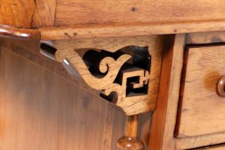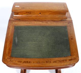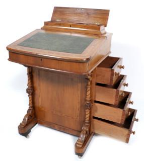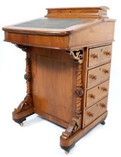 Oude notenhouten Davenport afgedekt met lederen blad, h.86 x b.55 x d.55 cm.