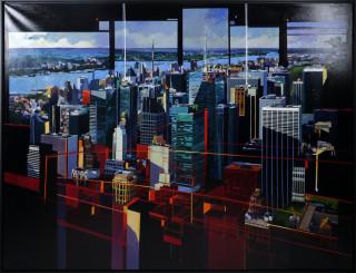 Josep Frances (Spaans, 1957), New York in red, acryl op doek, 188 x 150 cm.