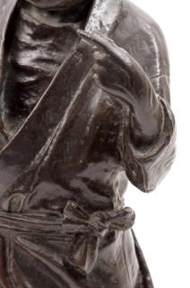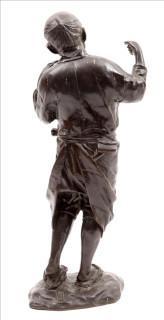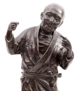 Antieke bronzen Japanse sculptuur van een man, gesigneerd, h.37 cm.