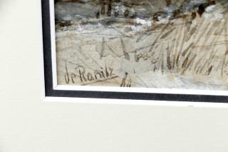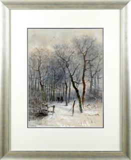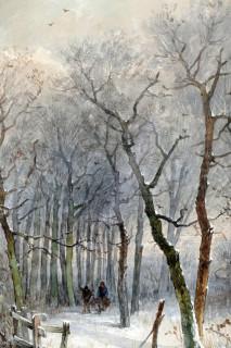 Sebastiaan Mattheus Sigismund de Ranitz, Nijmegen 1846-1916 Den Haag, Winters bosgezicht met houtsprokkelaars, aquarel, 45 x 34 cm.
