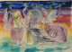 Petronella Hélène ‘Nel’ Bouhuys-Klaassen (1906-1989), Personen in landschap, gemengde techniek op papier, 39 x 30 cm.