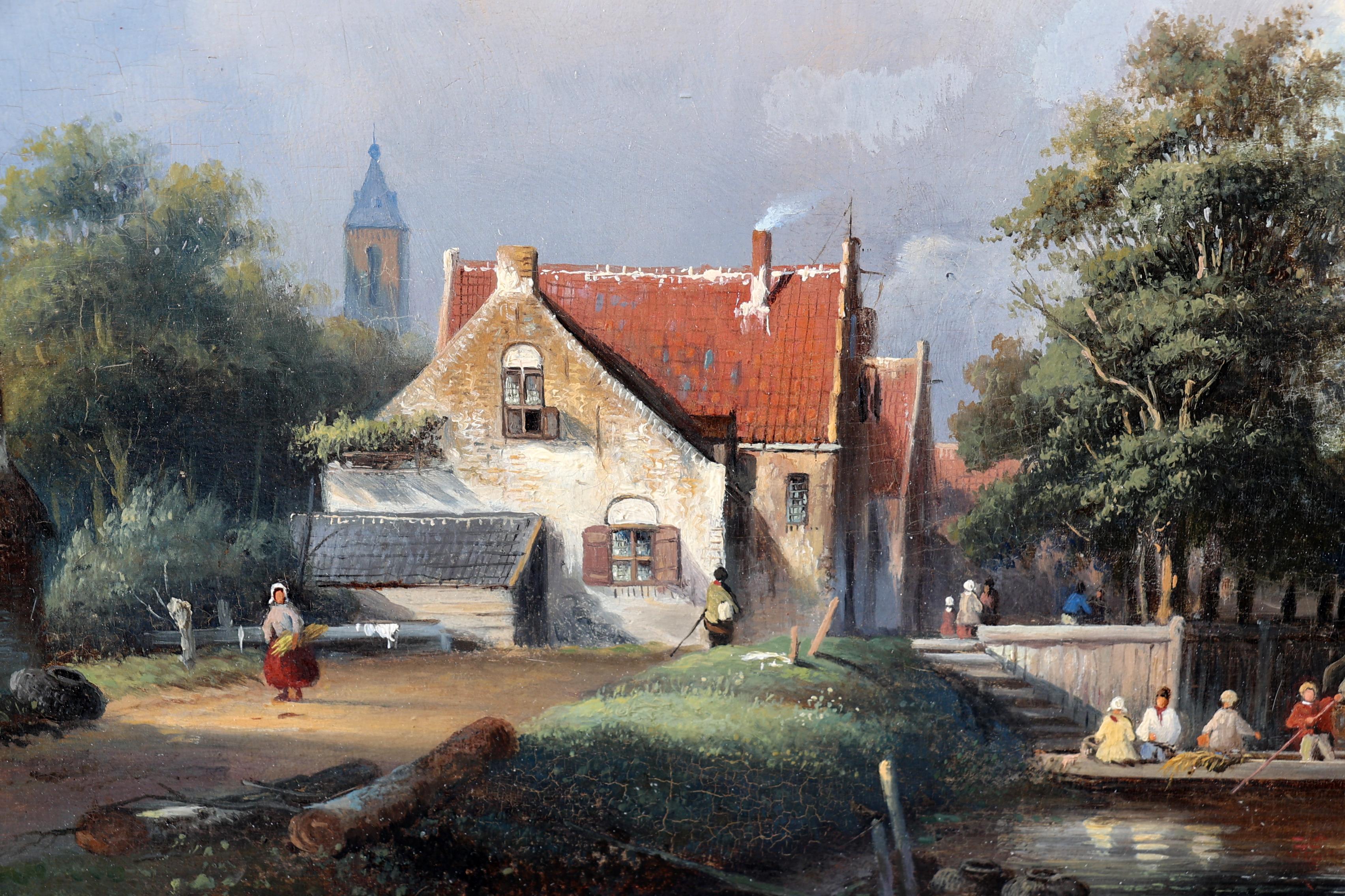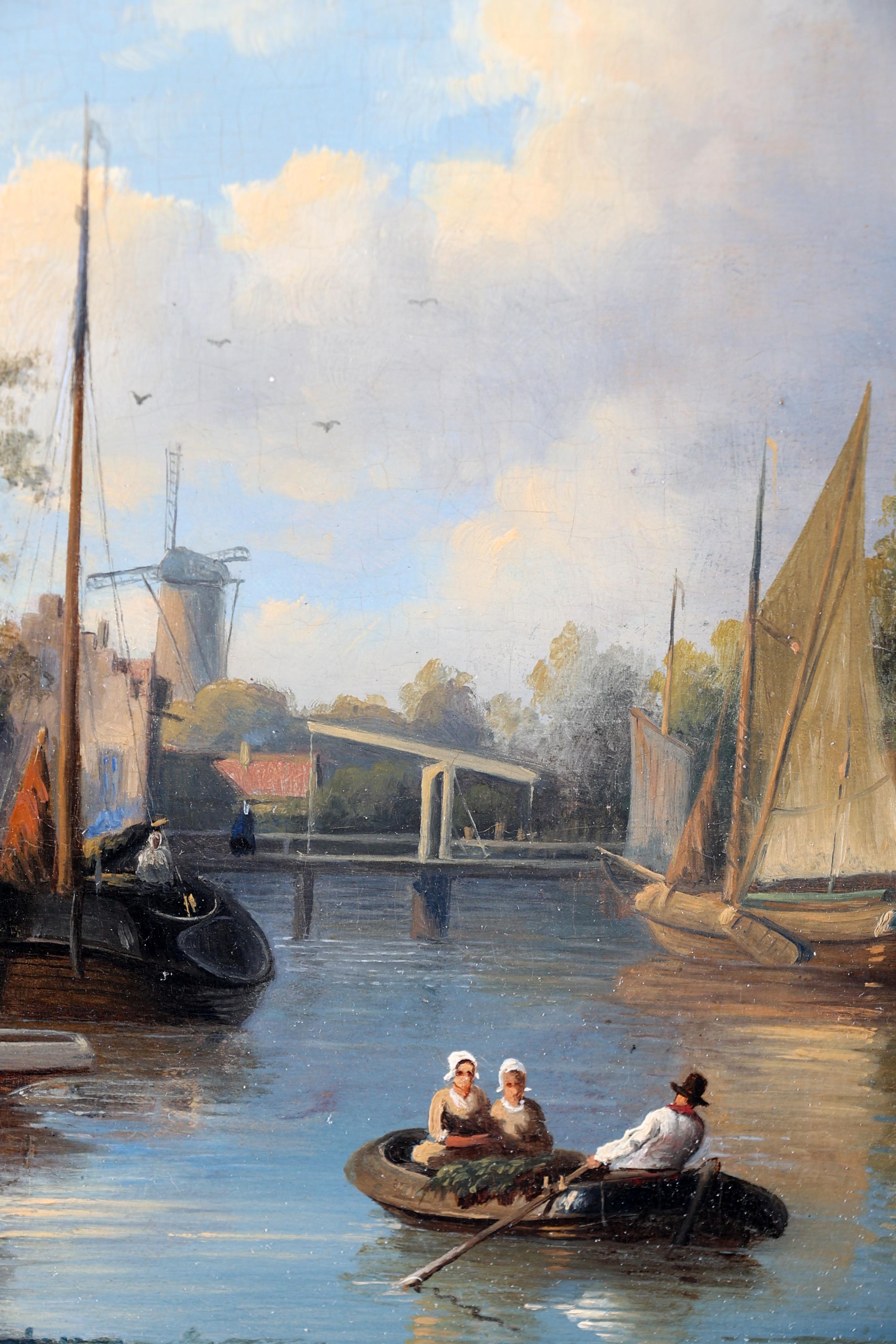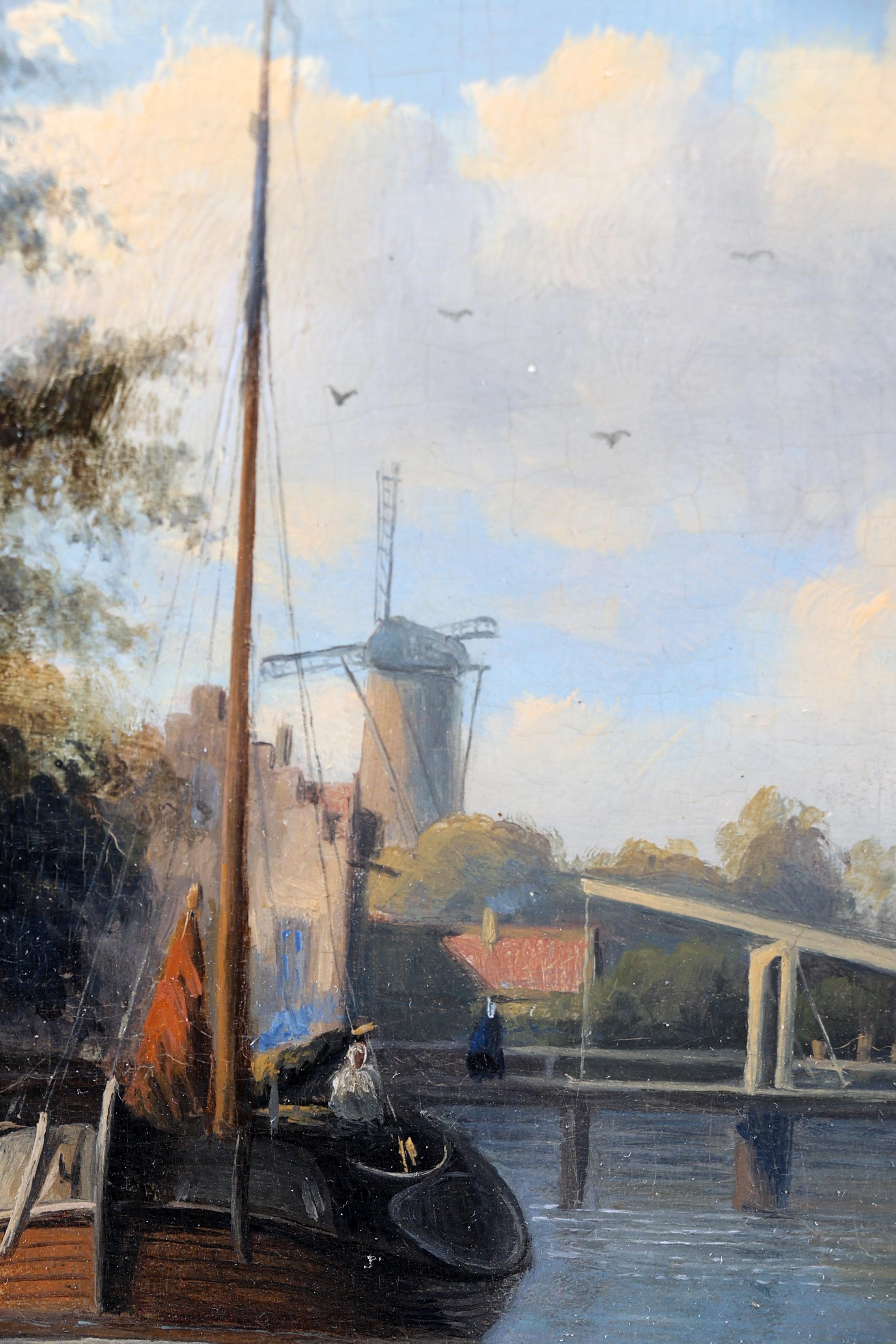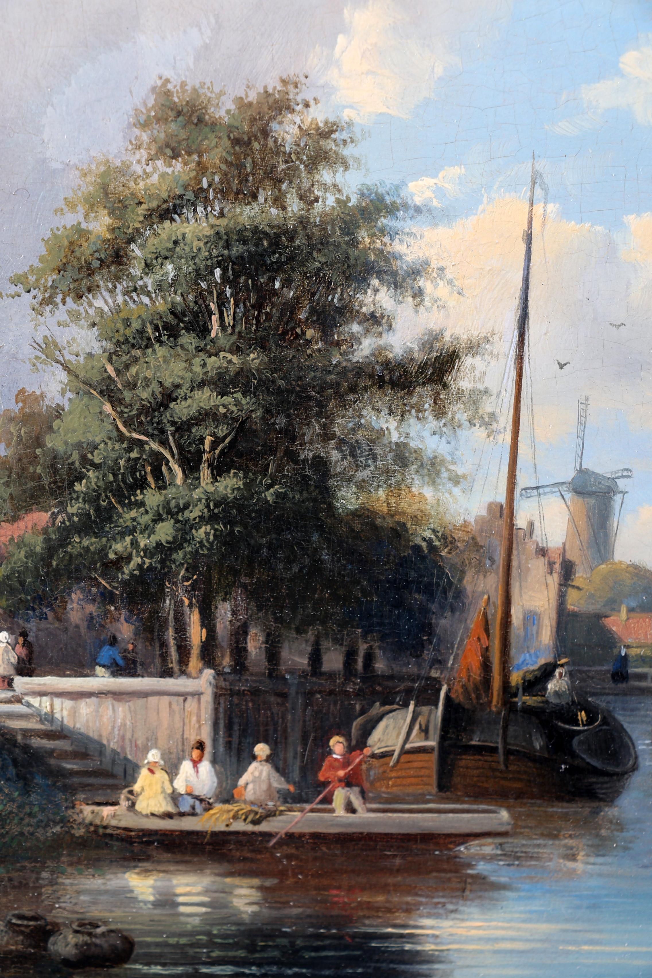 Toegeschreven aan Jan Jacob Spöhler (1811-1866)-'79, Zomers riviergezicht met personen, boten, etc., olieverf op paneel, 45 x 32,5 cm.