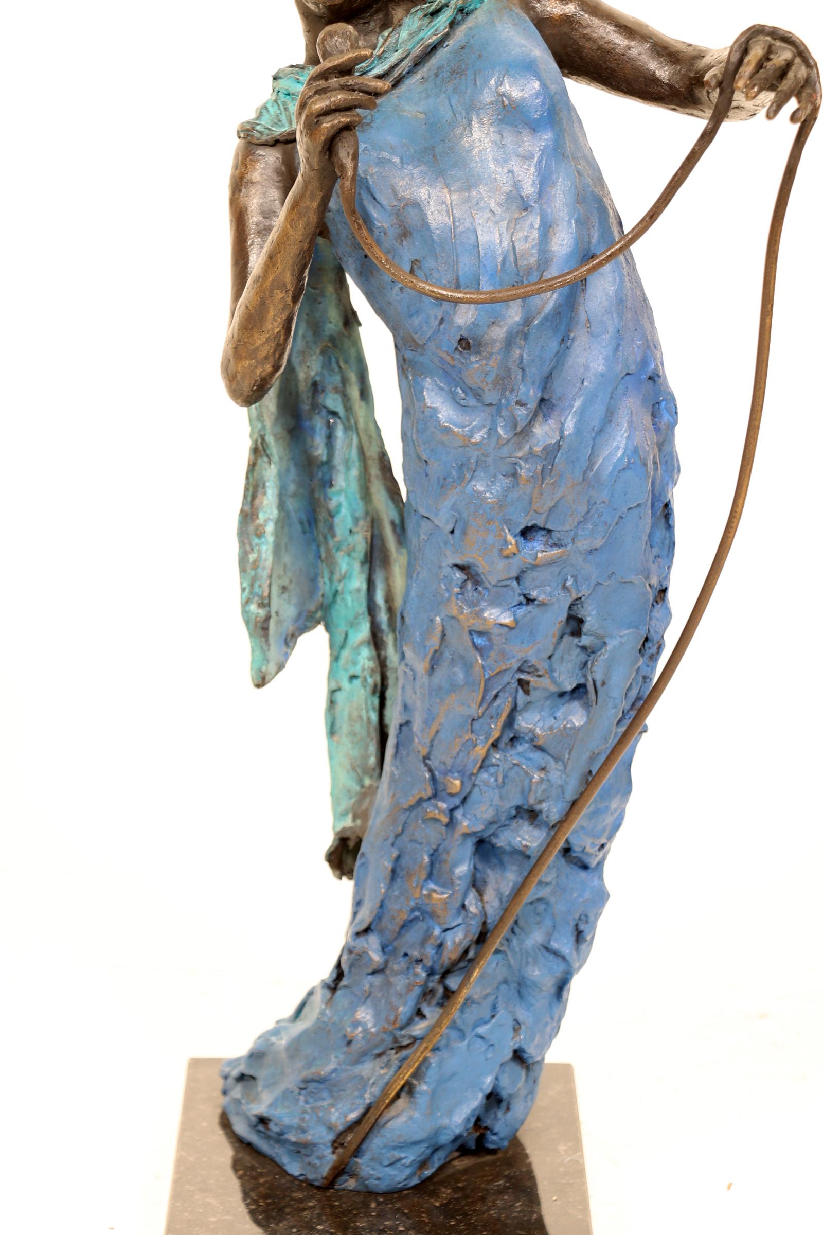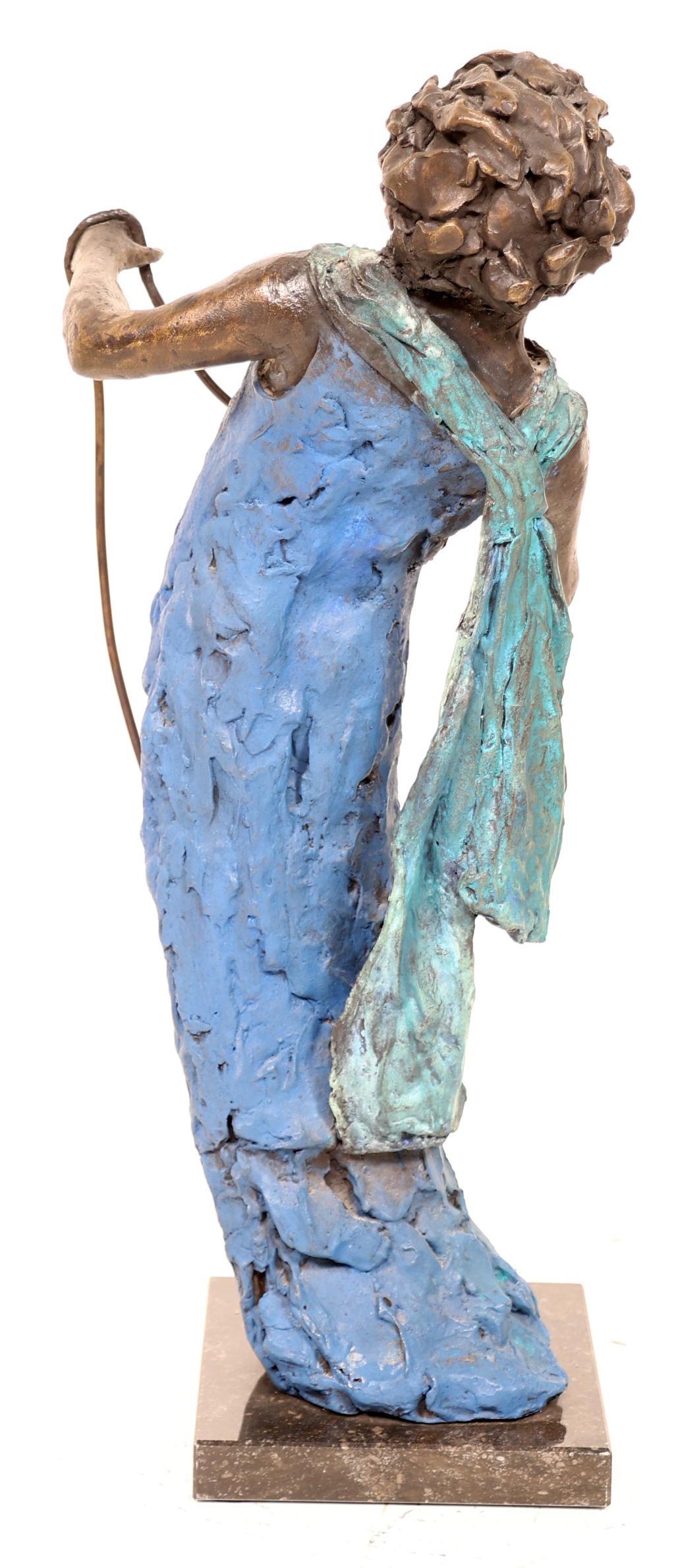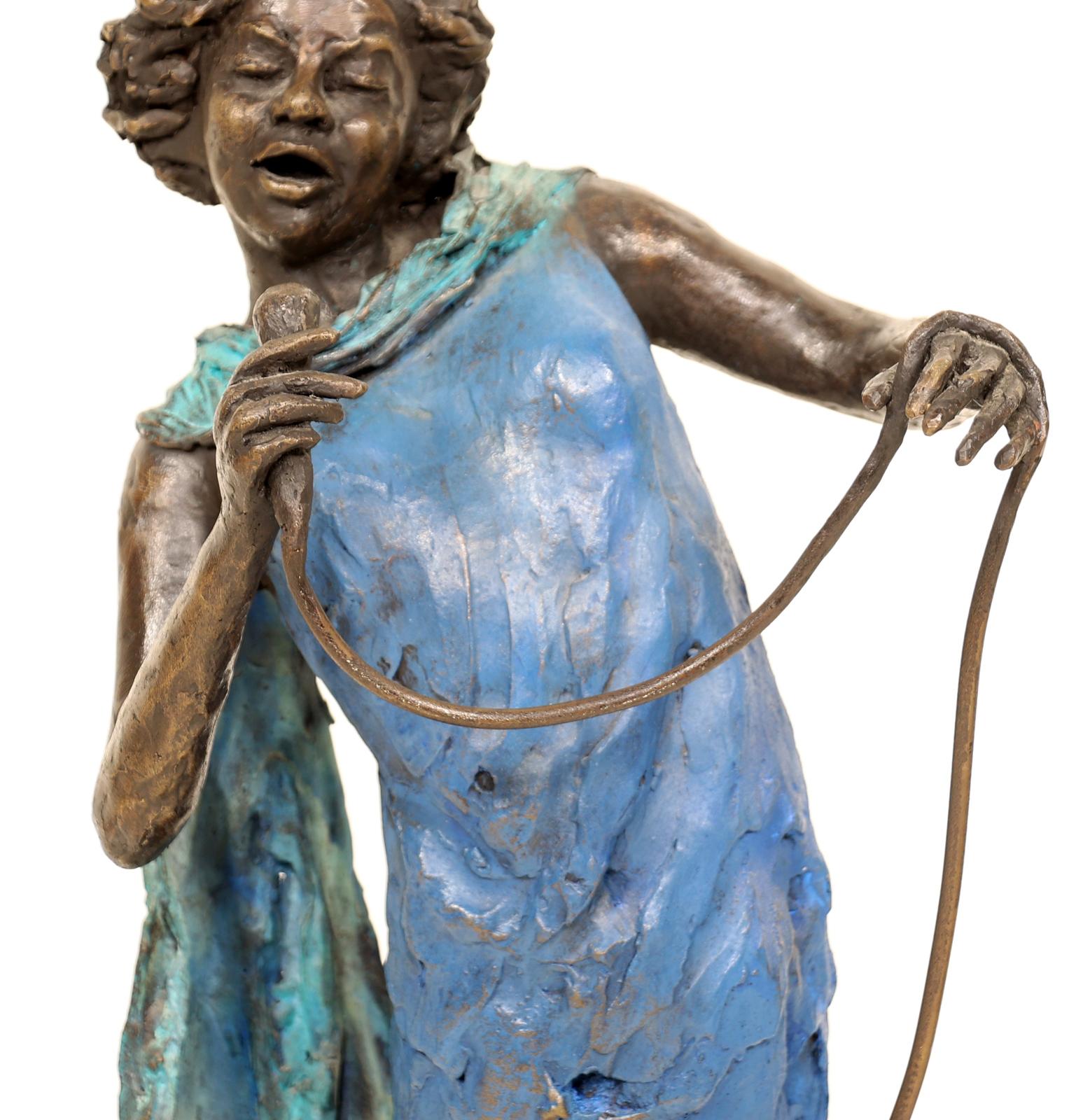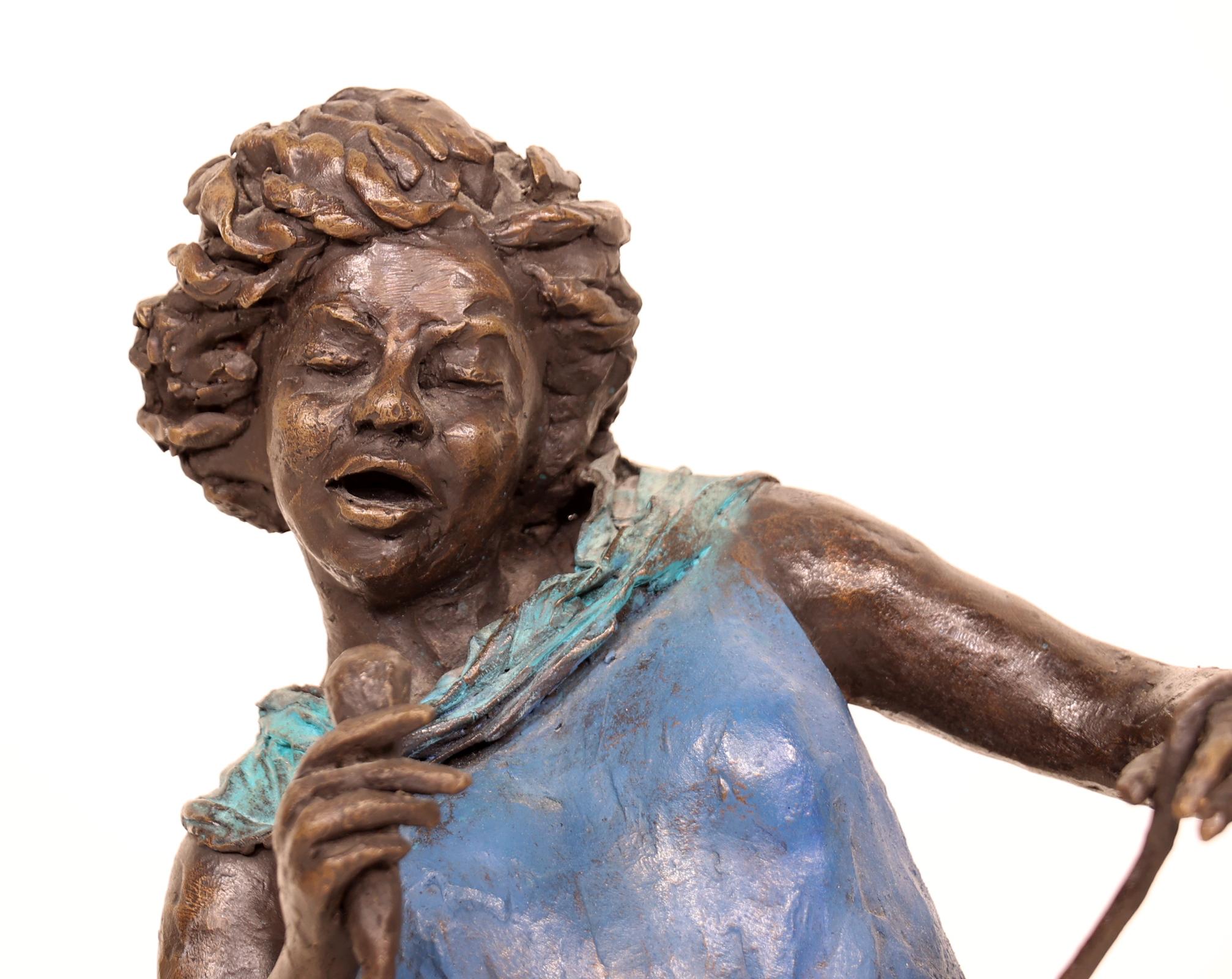 Marianne Houtkamp (1948), gepolychromeerde bronzen sculptuur van Jazz zangeres 2001 rustend op marmeren voetstuk, h.62 cm., provenance particuliere collectie