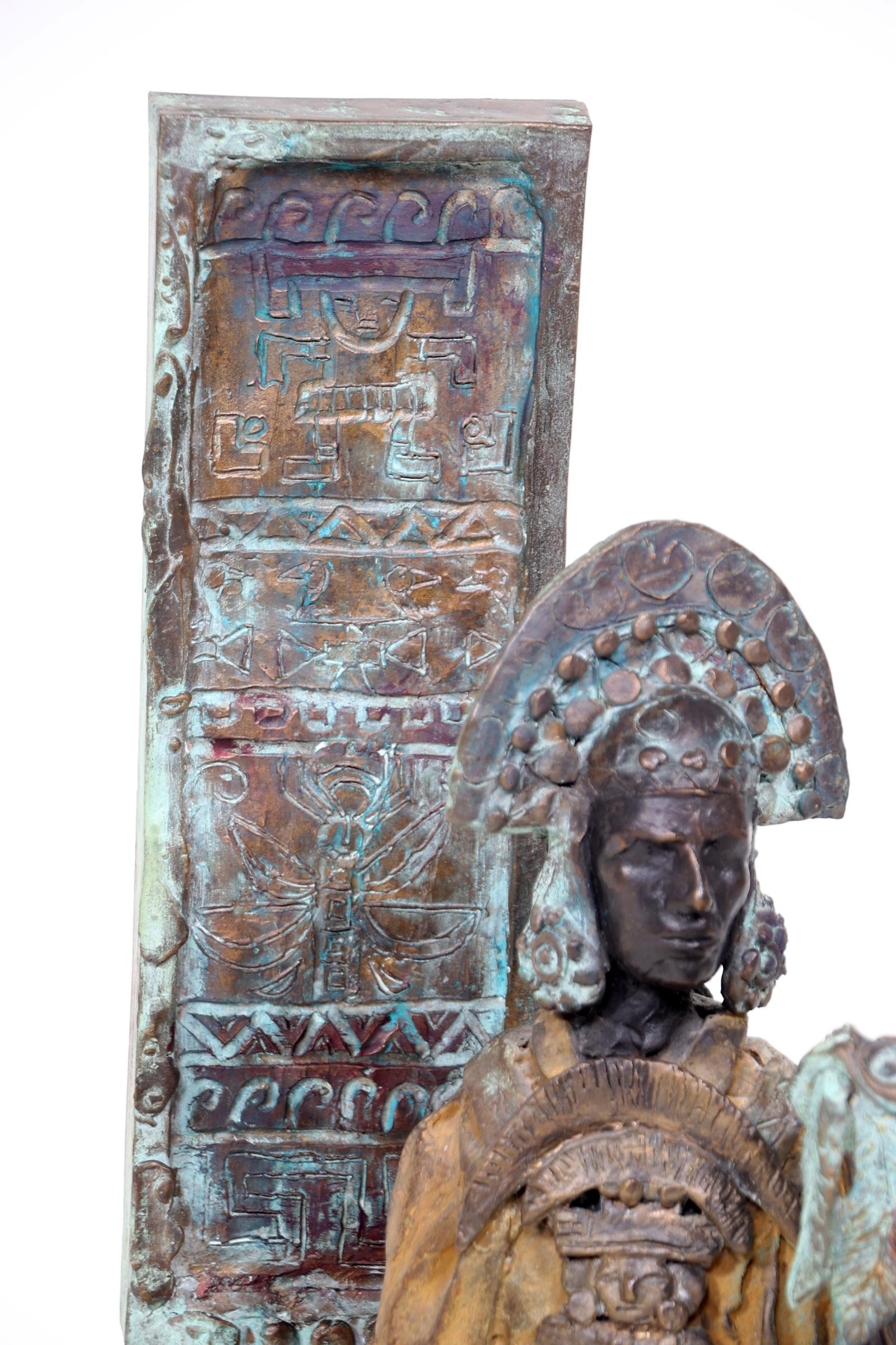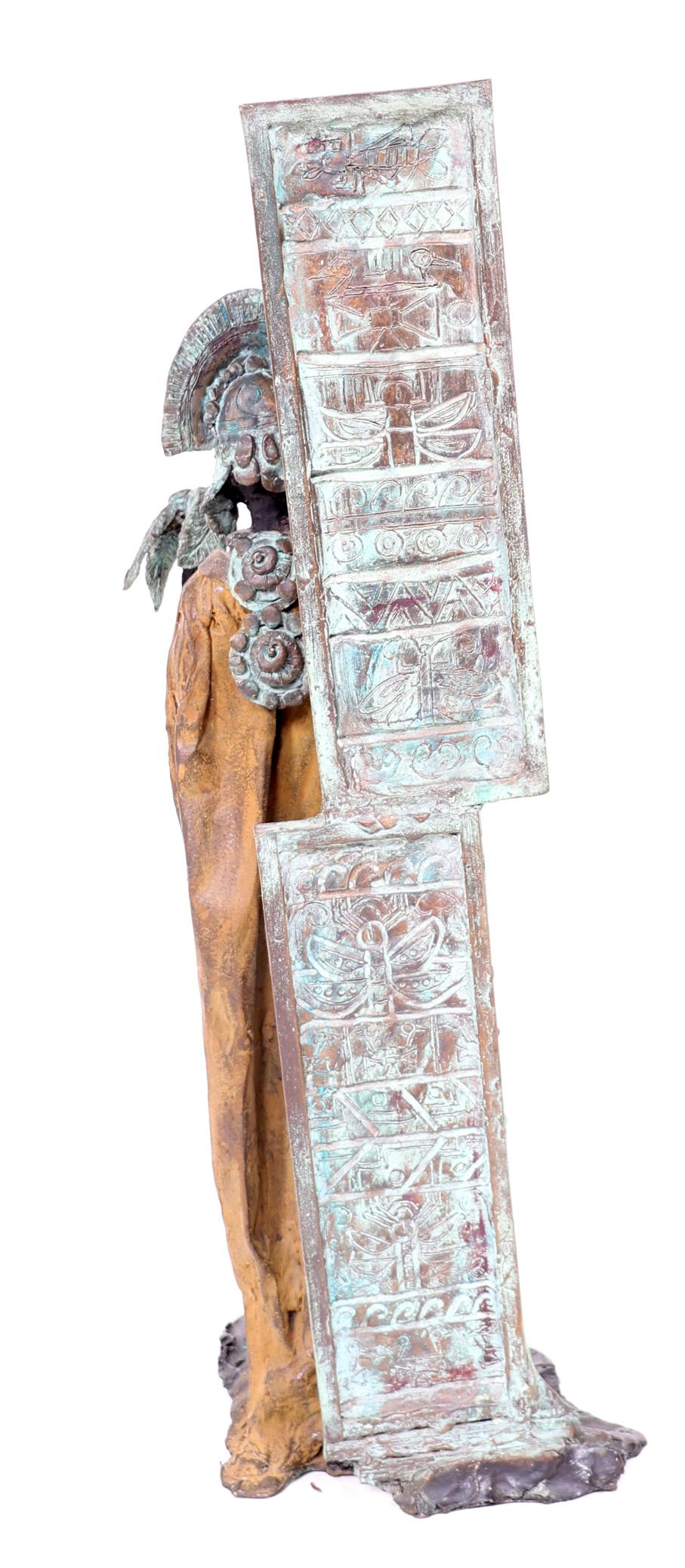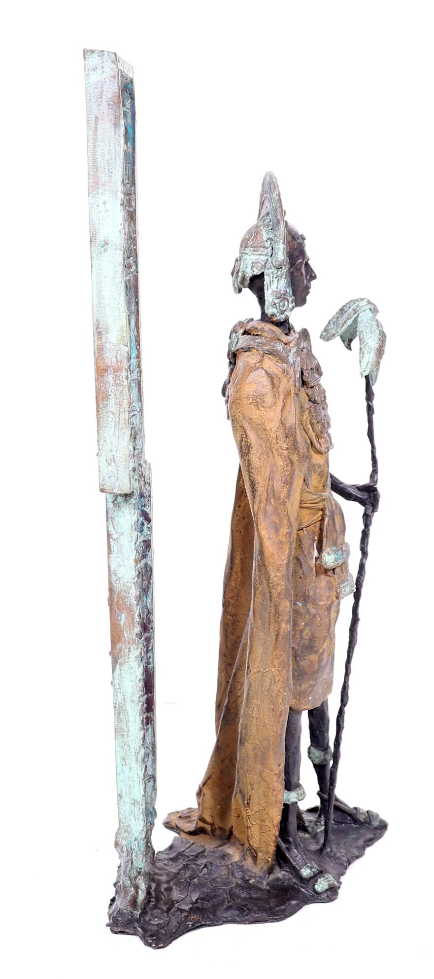 Marianne Houtkamp, Amsterdam 1948, bronzen sculptuur van een Inca wachter/1999, h.67,5 cm., provenance particuliere collectie