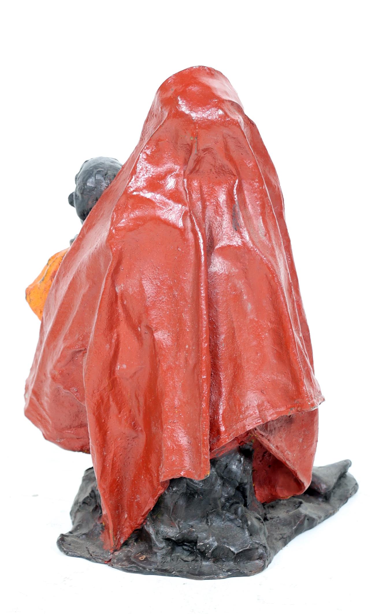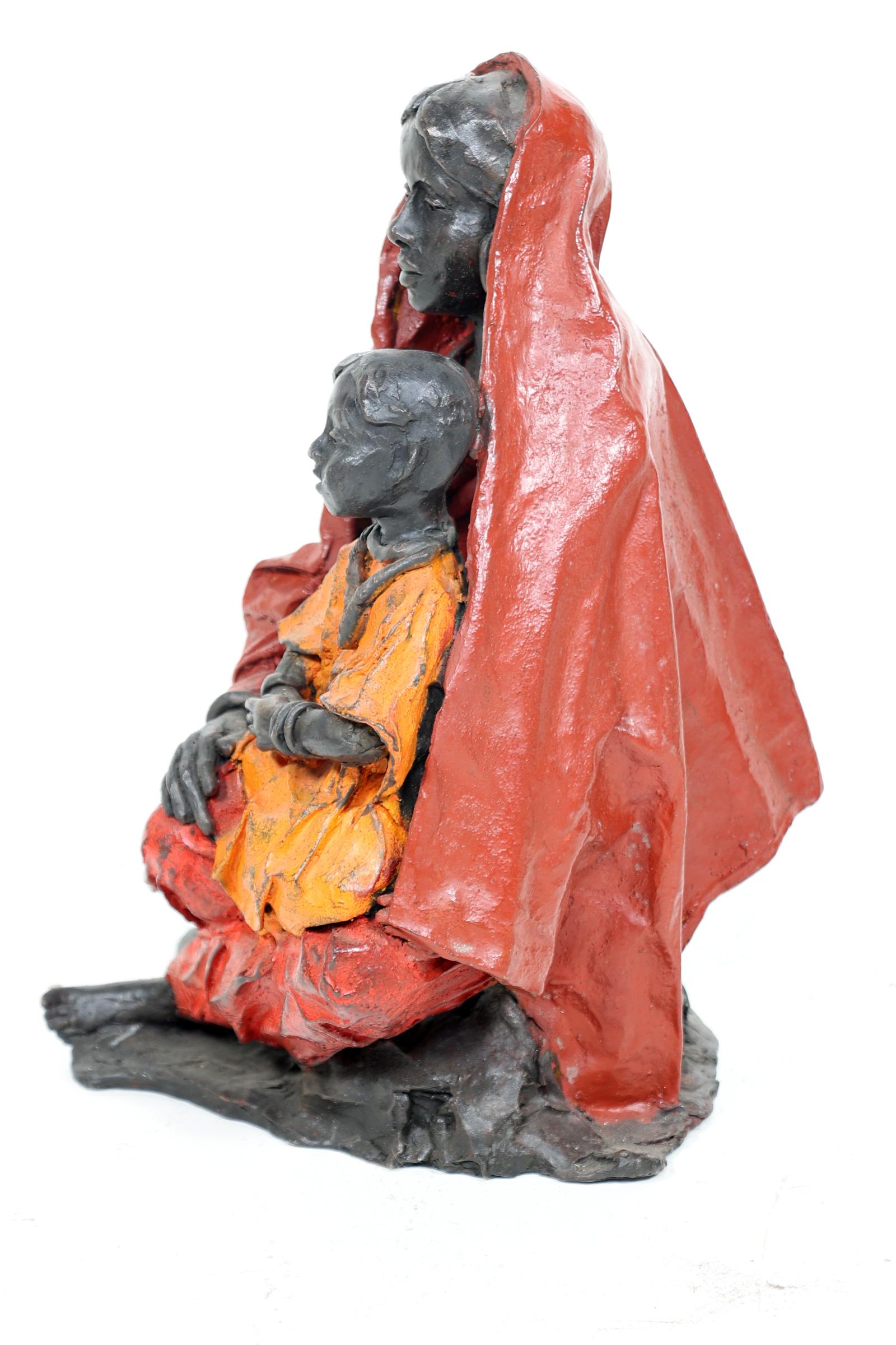 Marianne Houtkamp (1948), gepolychromeerde bronzen sculptuur van moeder met kind, 2002, oplage 1/8, h.40 cm.,