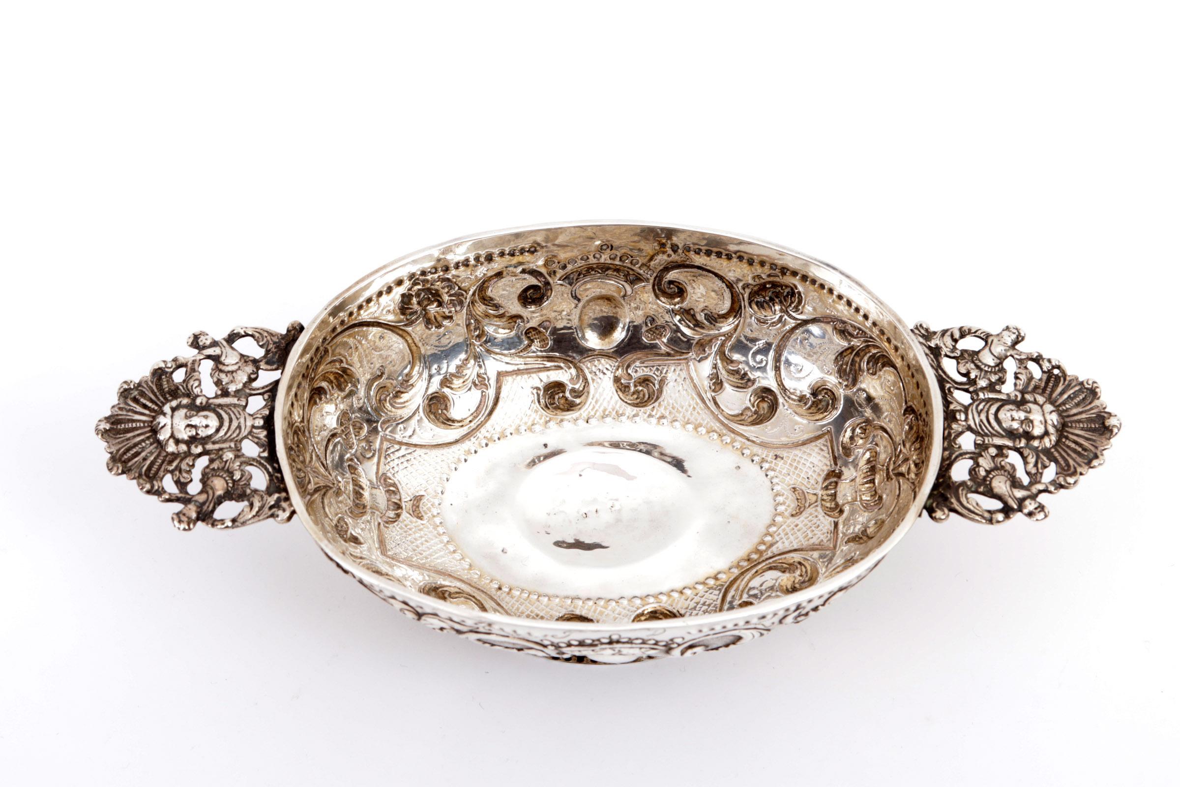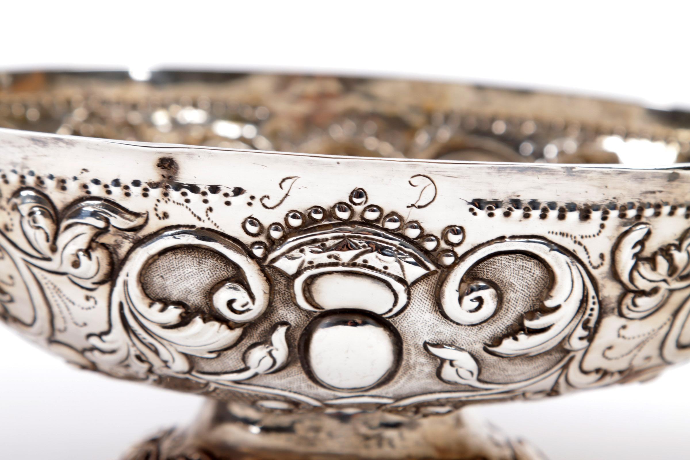 Antieke rijkbewerkte zilveren brandewijnkom, 18e eeuw
