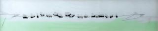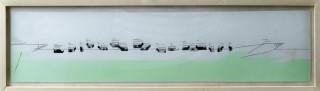 Toegeschreven aan Hendrik Jacobus Valk, Zoeterwoude-Dorp 1897-1986 Arnhem, Landschap, gemengde techniek, 10 x 49,5 cm.