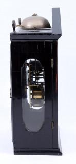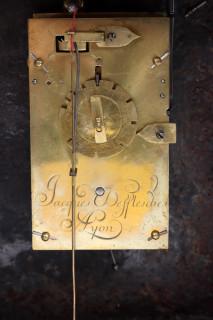 Franse pendule religieuse, Jacques Defflesches à Lyon, ca.1670, met zwart gepolitoerde kast waarop een toog, koperen cijferring en een fluwelen wijzerplaat, 30 uurs uurwerk met spillegang op 1 veerton, gesigneerd op het uurwerk, h.32 cm.