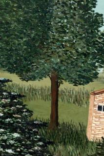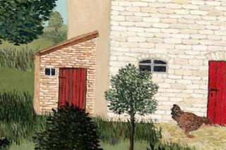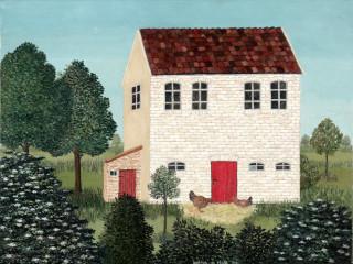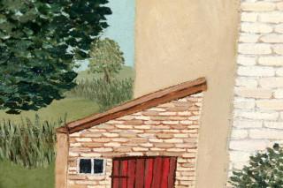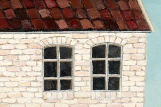 Laetitia de Haas (Voorburg 1948), Huisje in België Charneux, olieverf op board, gedateerd 1982, 41 x 31 cm.