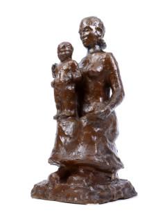Hildo Hildebrand L. Krop (1884-1970), bronzen sculptuur van een moeder met kind, h.36 cm.