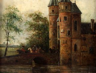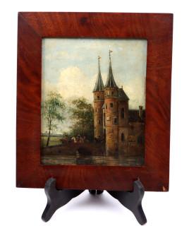 Onb.meester, Oostpoort te Delft, olieverf op paneel, 19 x 15 cm.