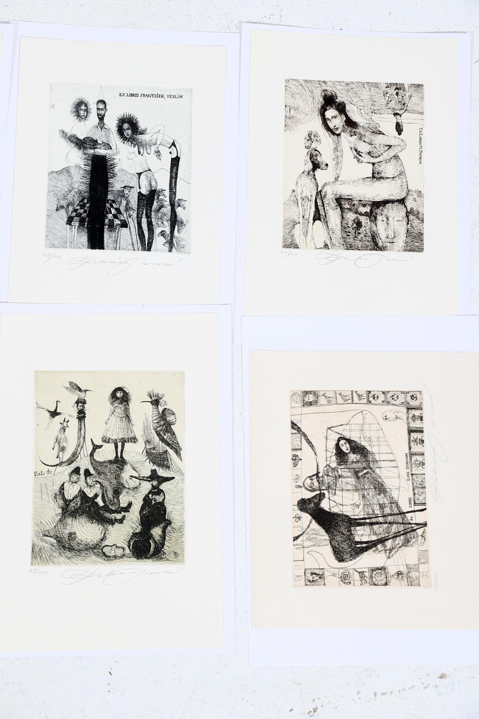 Vavrova, K., 11 exlibris, C3, genummerd en gesigneerd, opgeplakt (o.a. voor Potrok, Hulin, 4W, Bergomi, Cadioli)