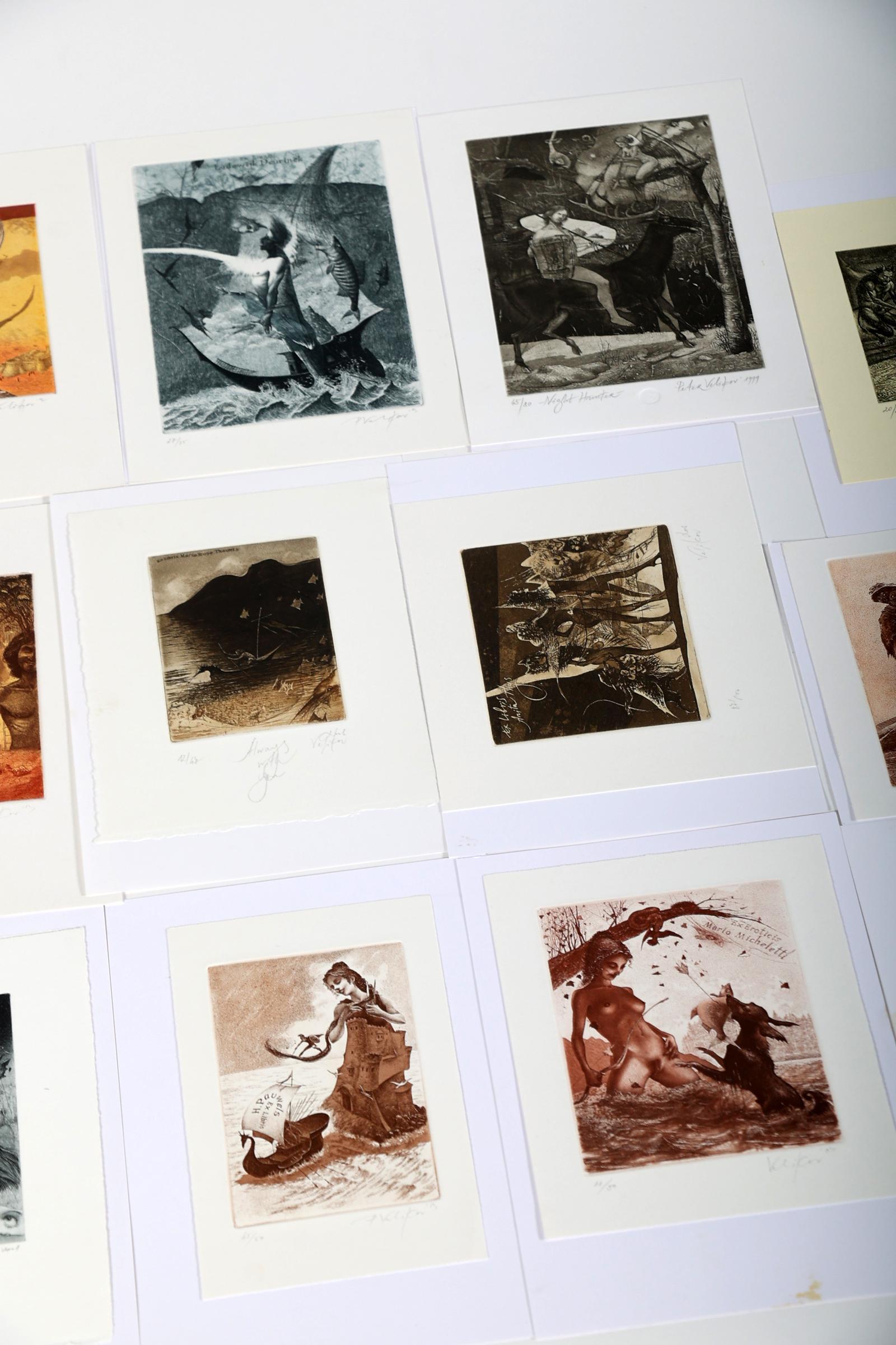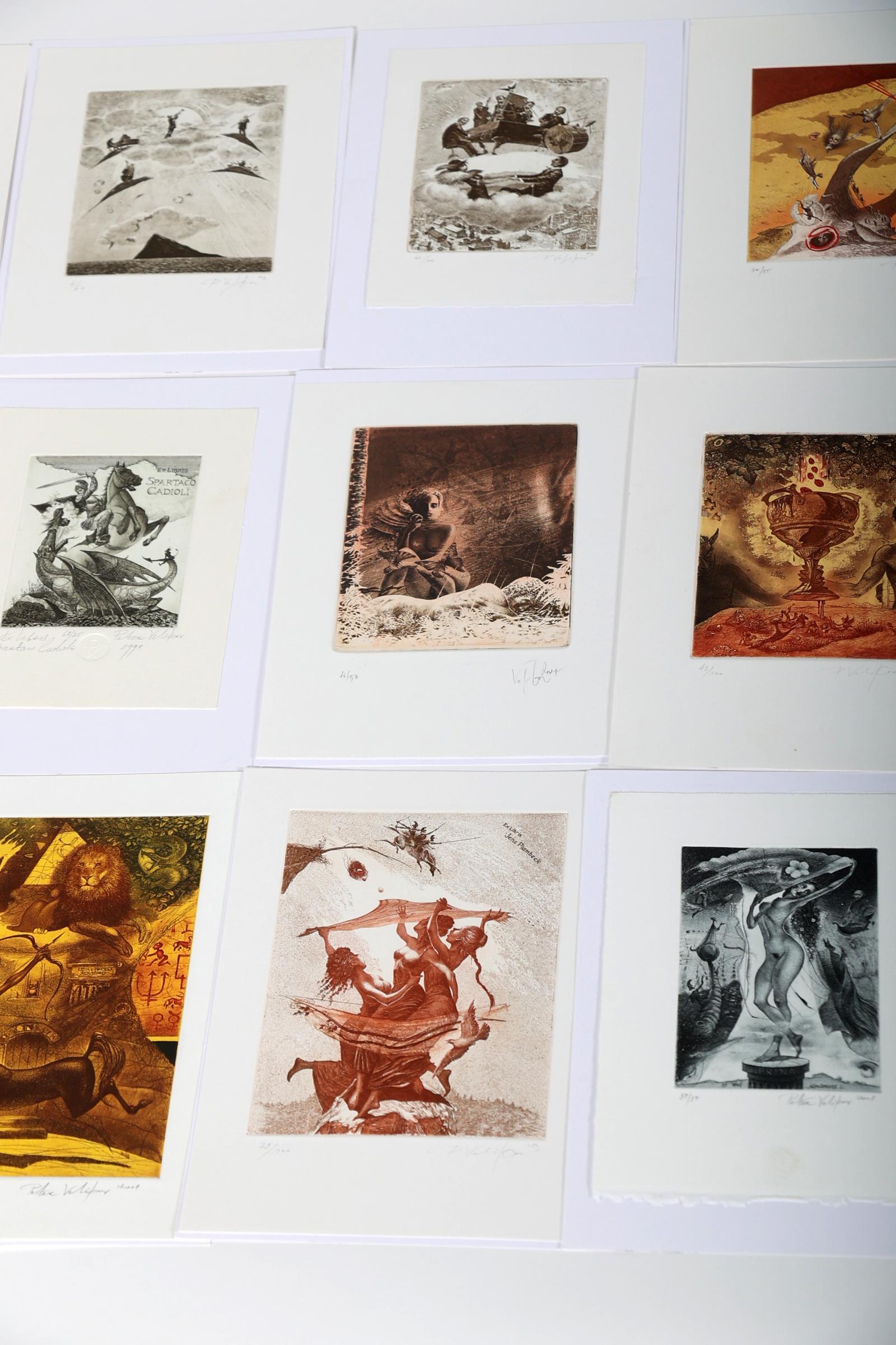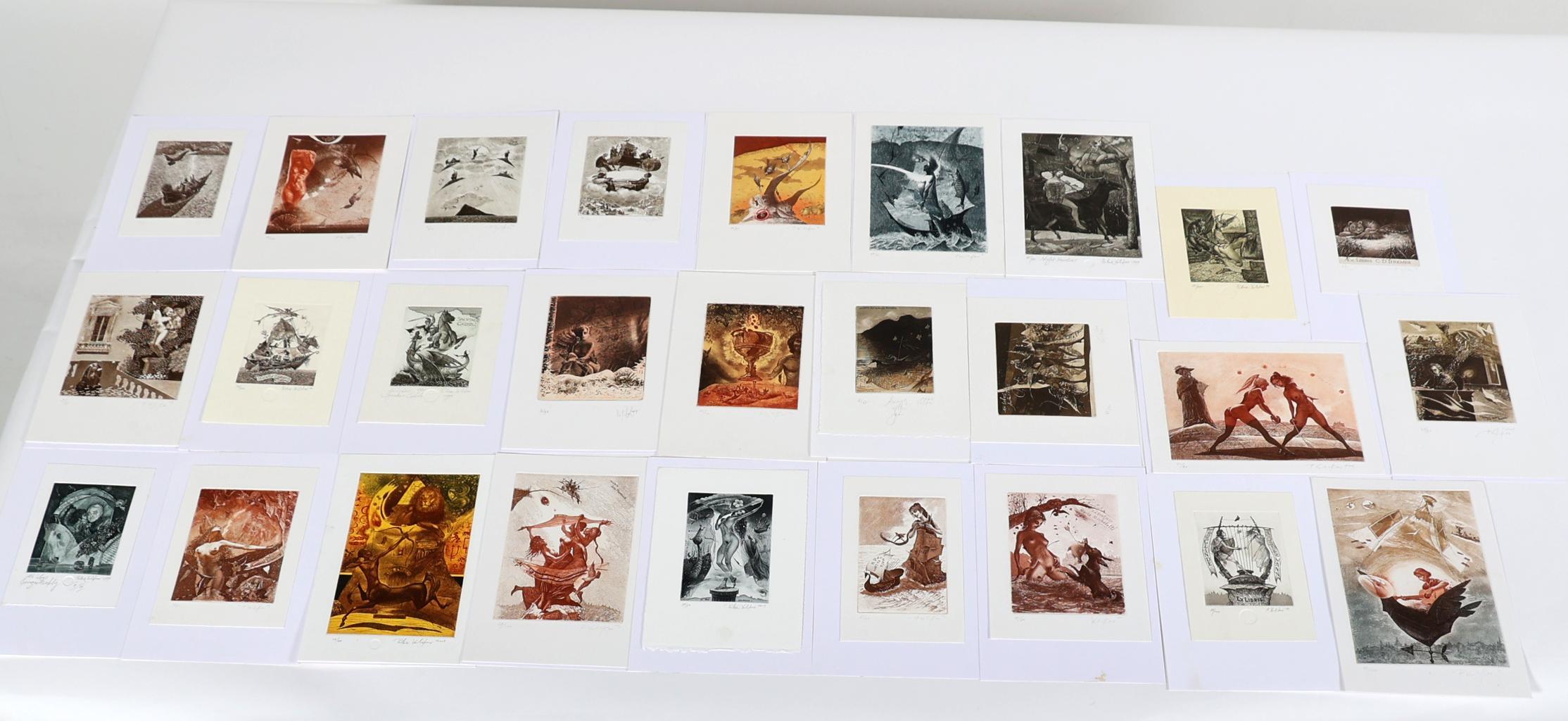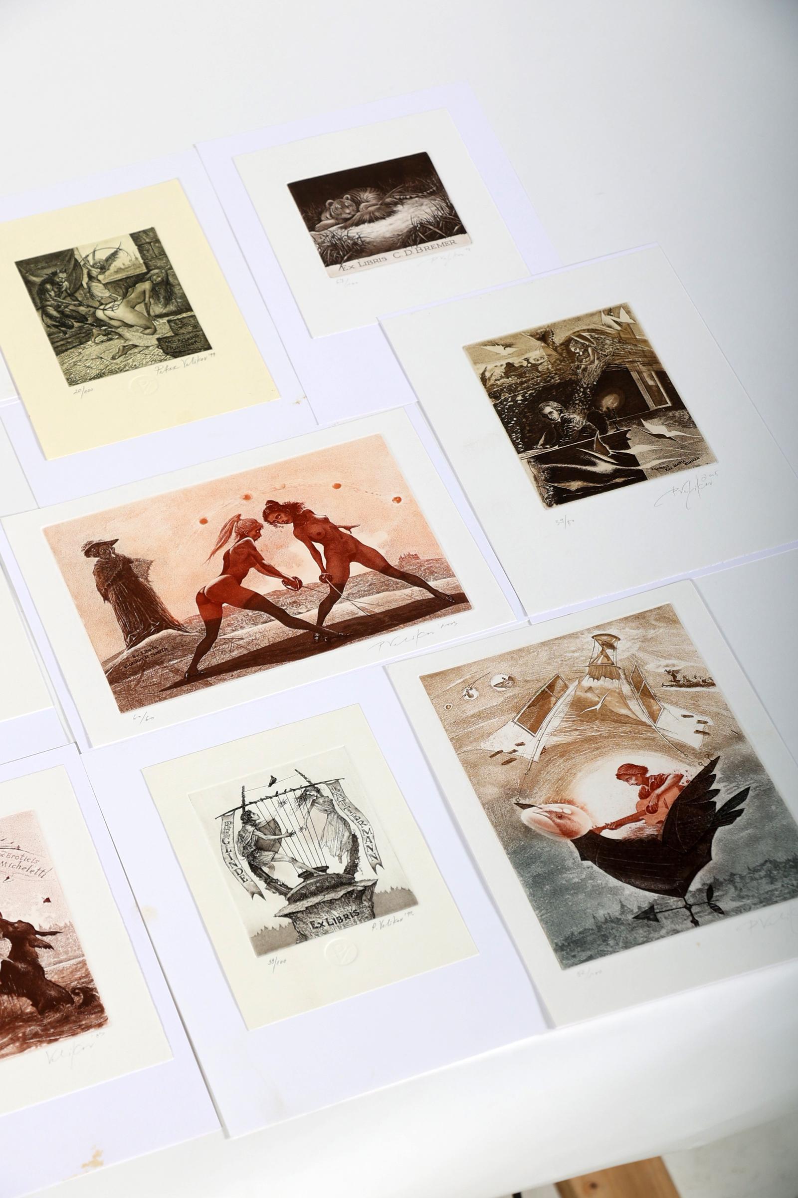 Velikov, P, 27 exlibris, C3C5, genummerd en gesigneerd, opgeplakt (o.a. voor V.d. Veen, Wimmer, Smith, Thijs, Theunis, Schmitz, Jensch, Forni)