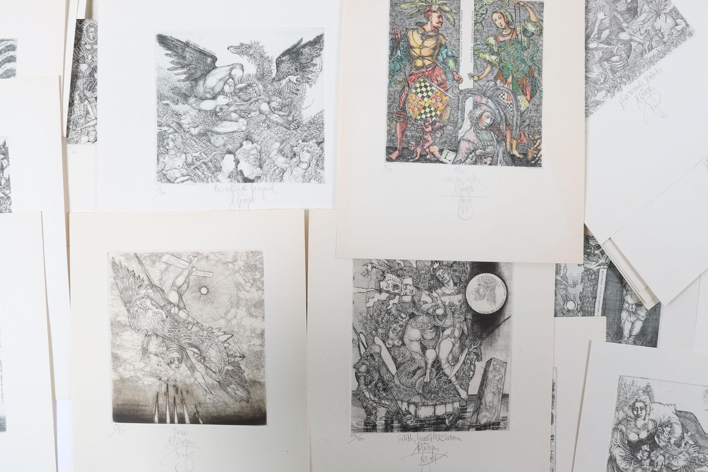 Juergens, H., plm. 85 exlibris / kleingrafiek, C3, genummerd en gesigneerd, veel mythologische / literaire thema's