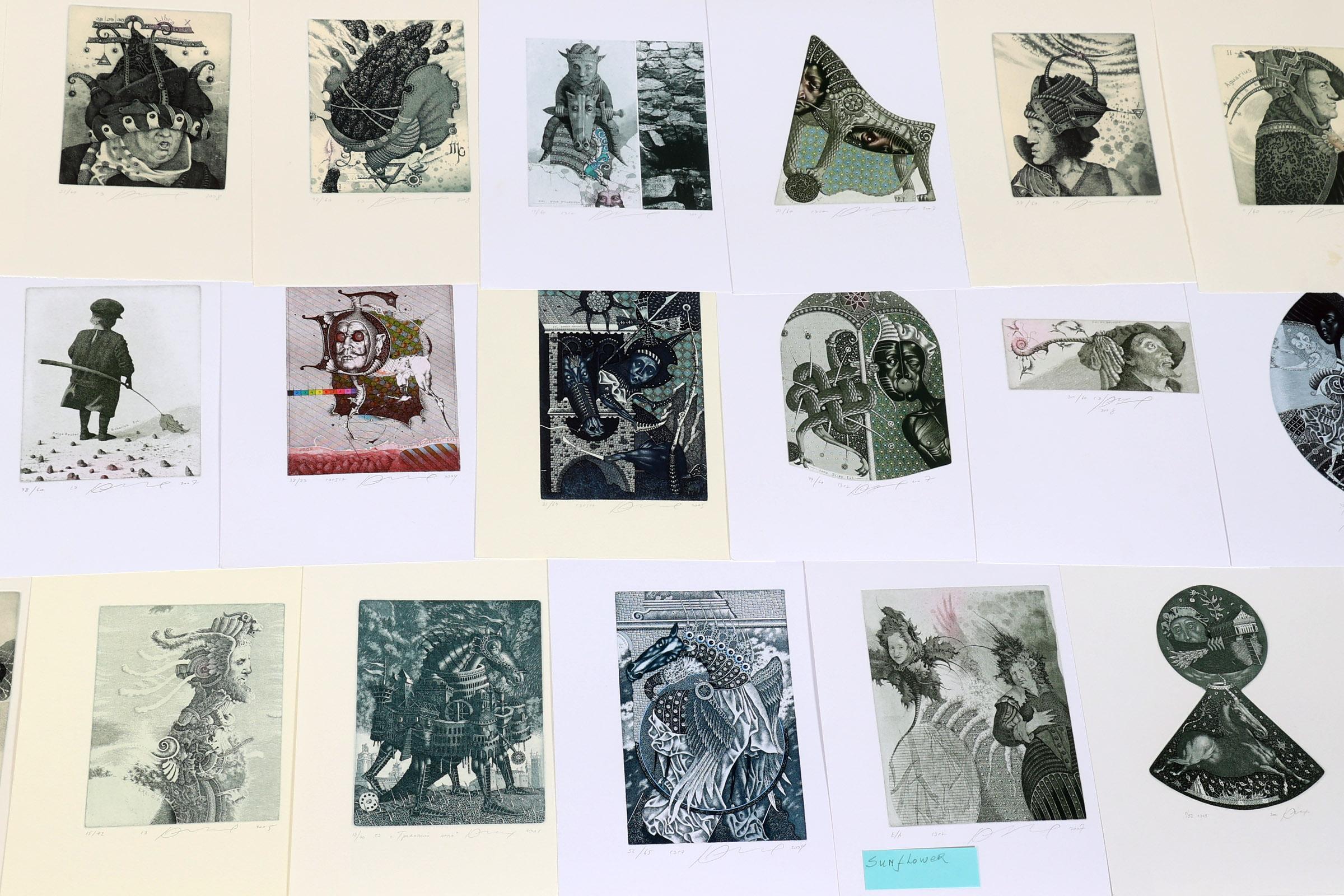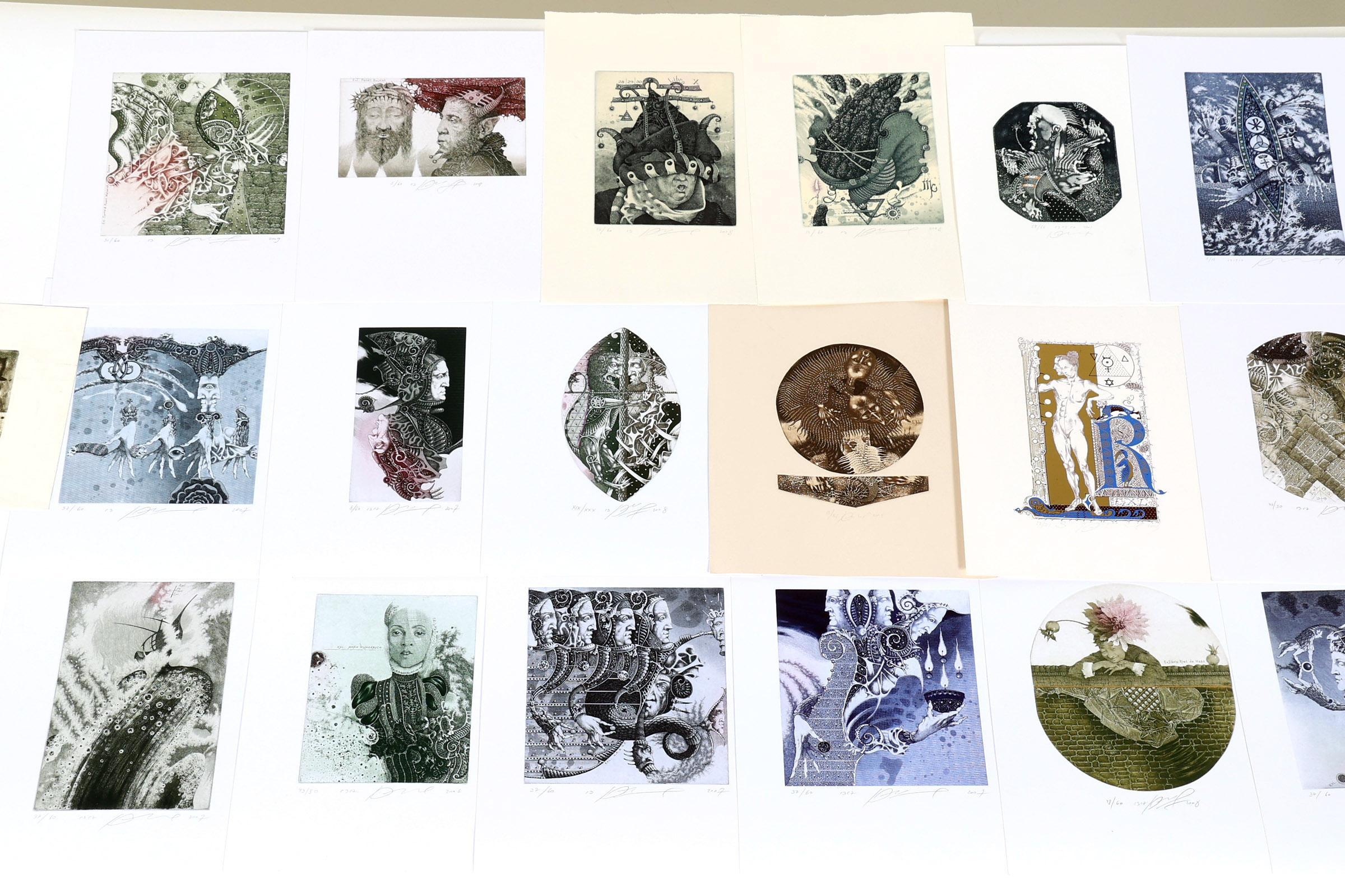 Jakovenko, J., 50 exlibris, C3C4C5, genummerd en gesigneerd (o.a. voor Vogelvanger, Soudlenkov, Polderman, Wijmeersch, Kudo, De Haas, Bujdak, Renigini, Aarsen)
