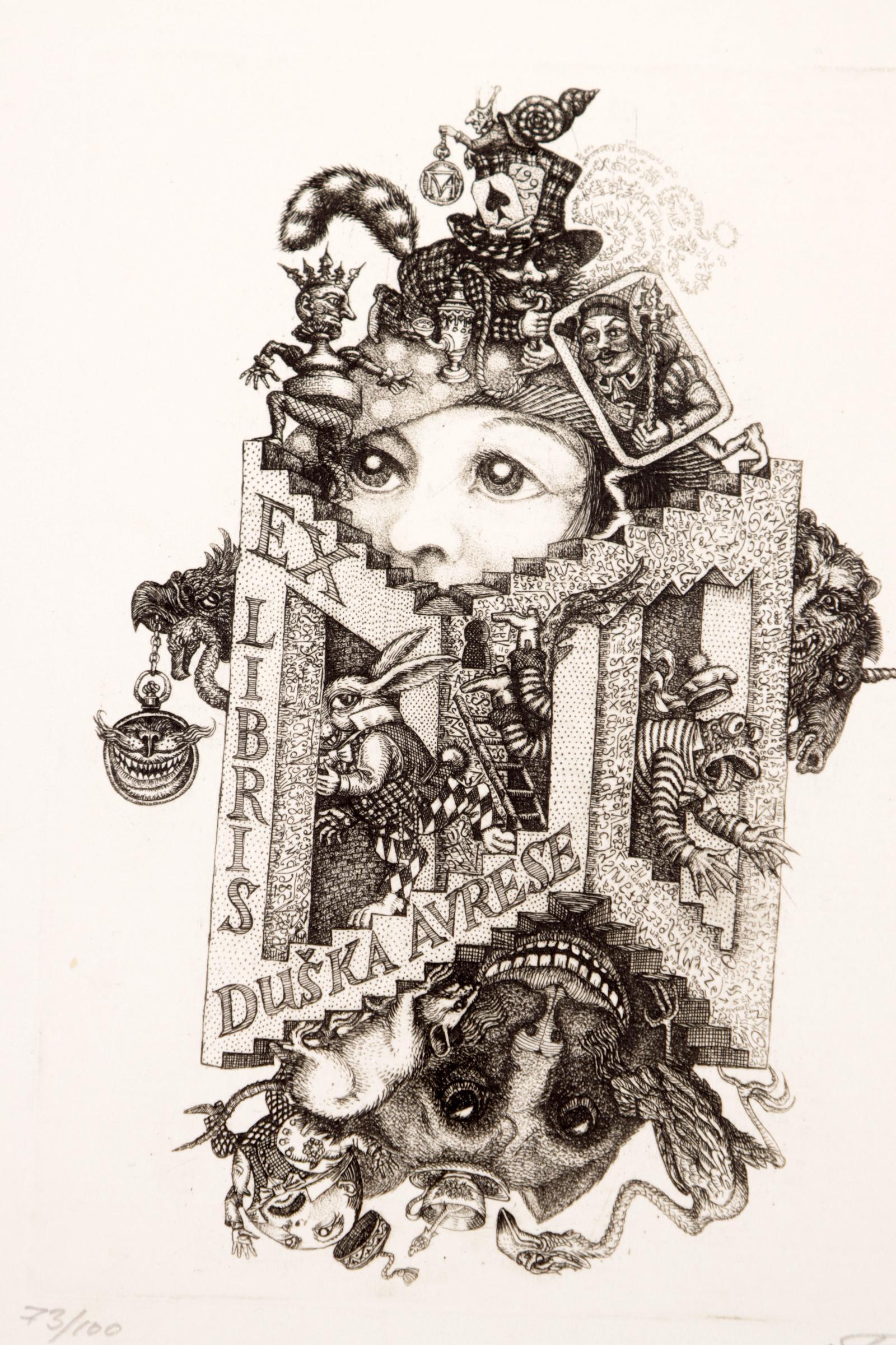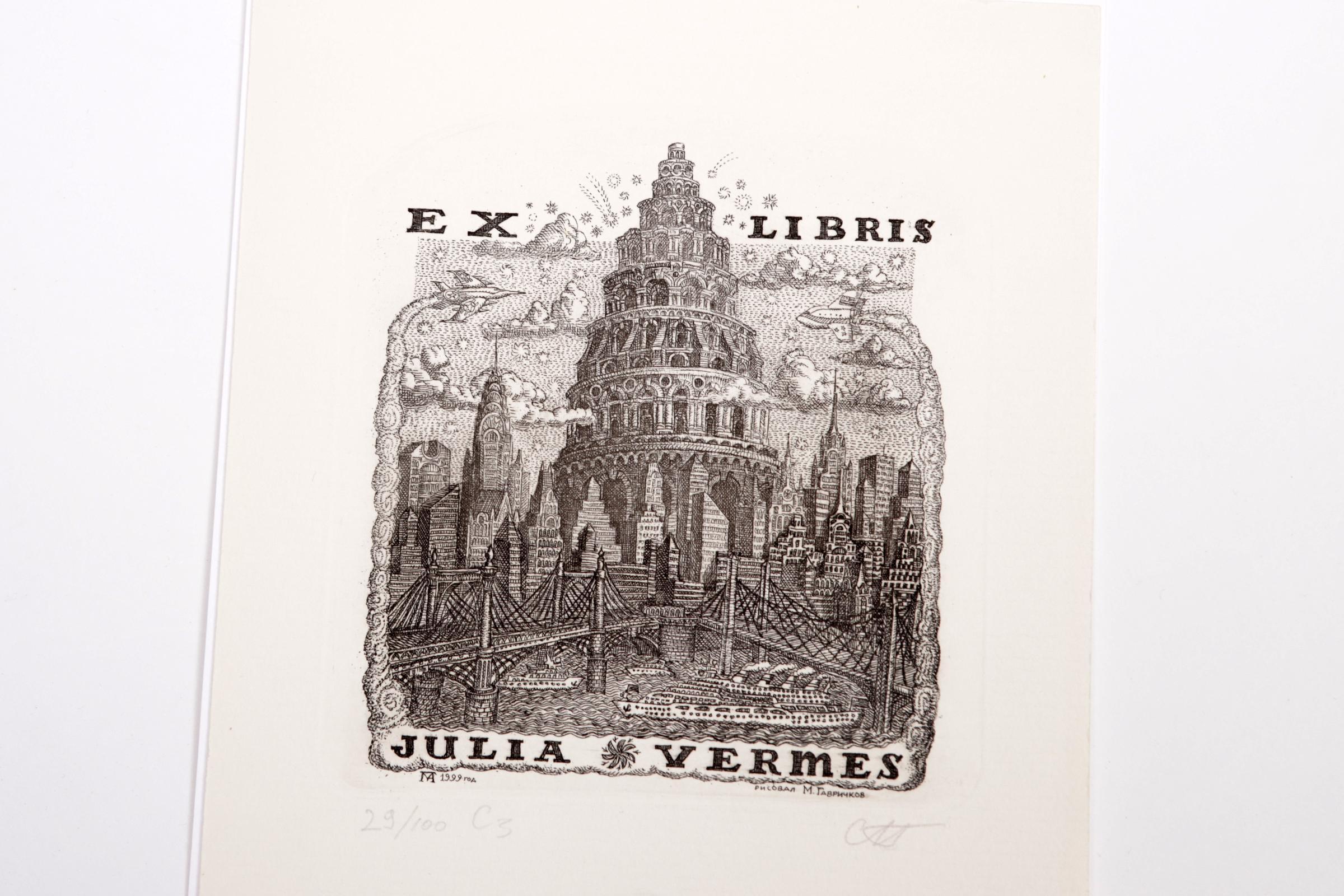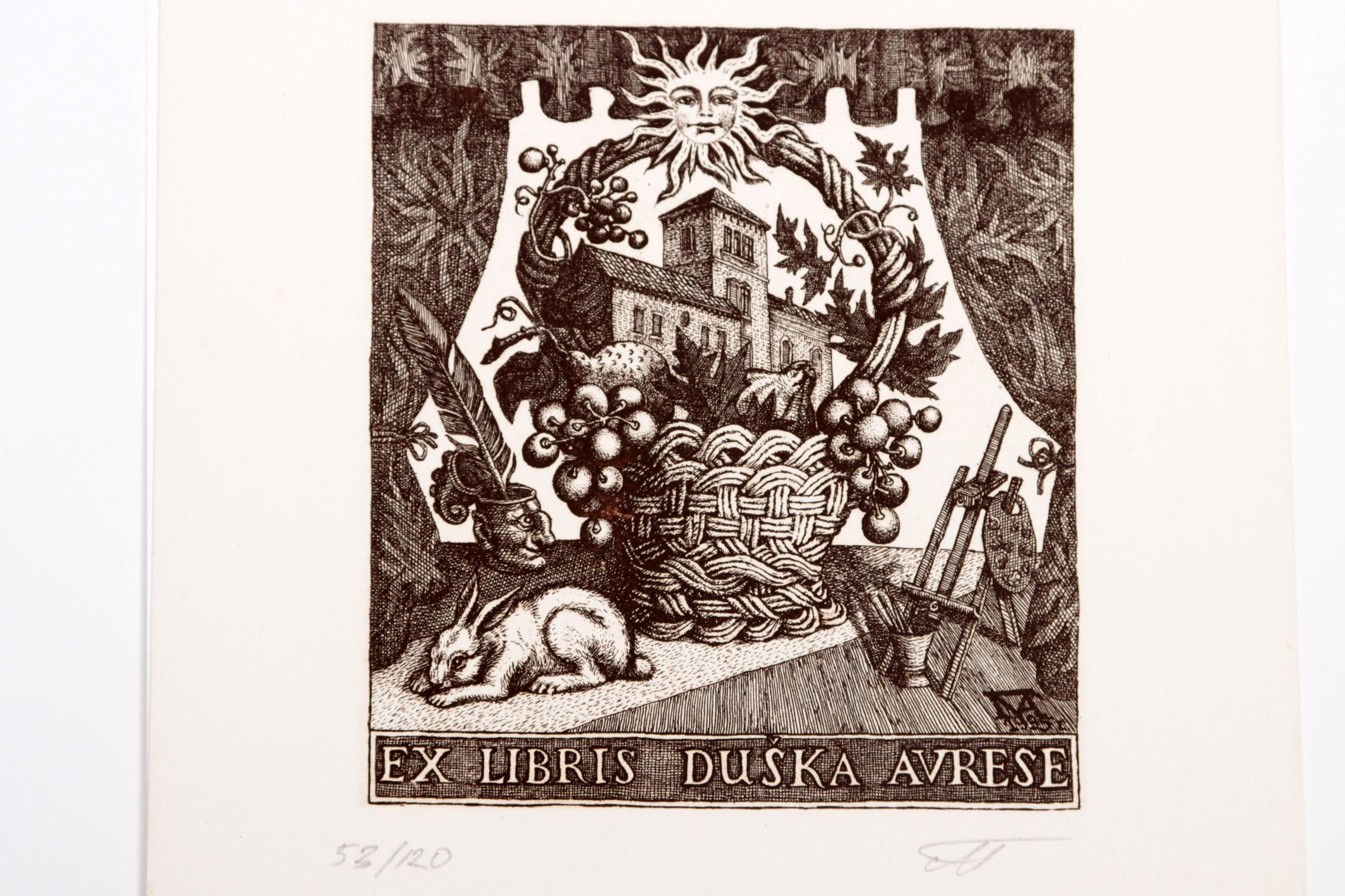 Gravichkov, M, 9 exlibris, C3, genummerd en gesigneerd, opgeplakt (o.a. voor Wiszkocsil, Vermes, Plambeck, Edipo, Avrese)
