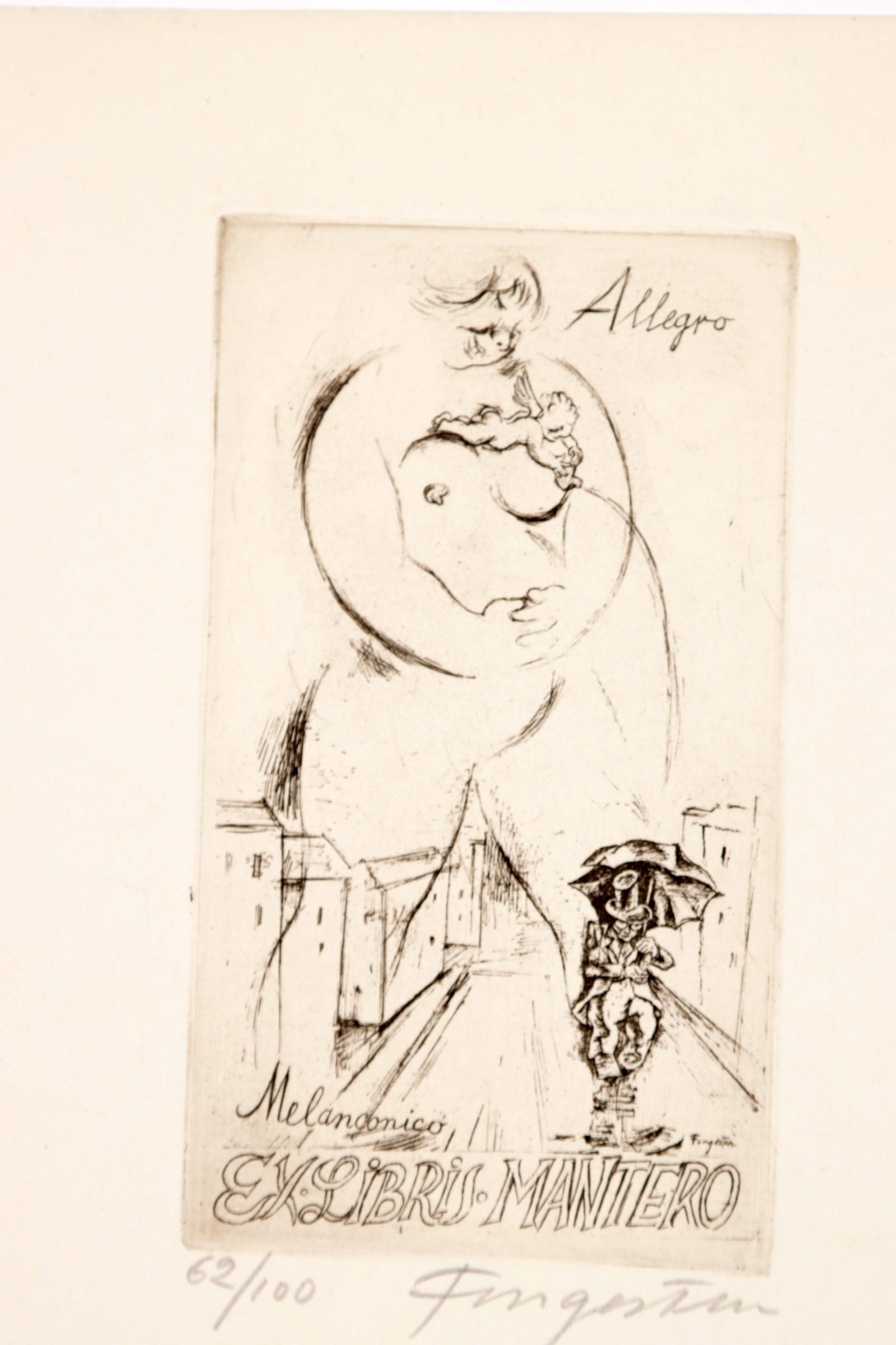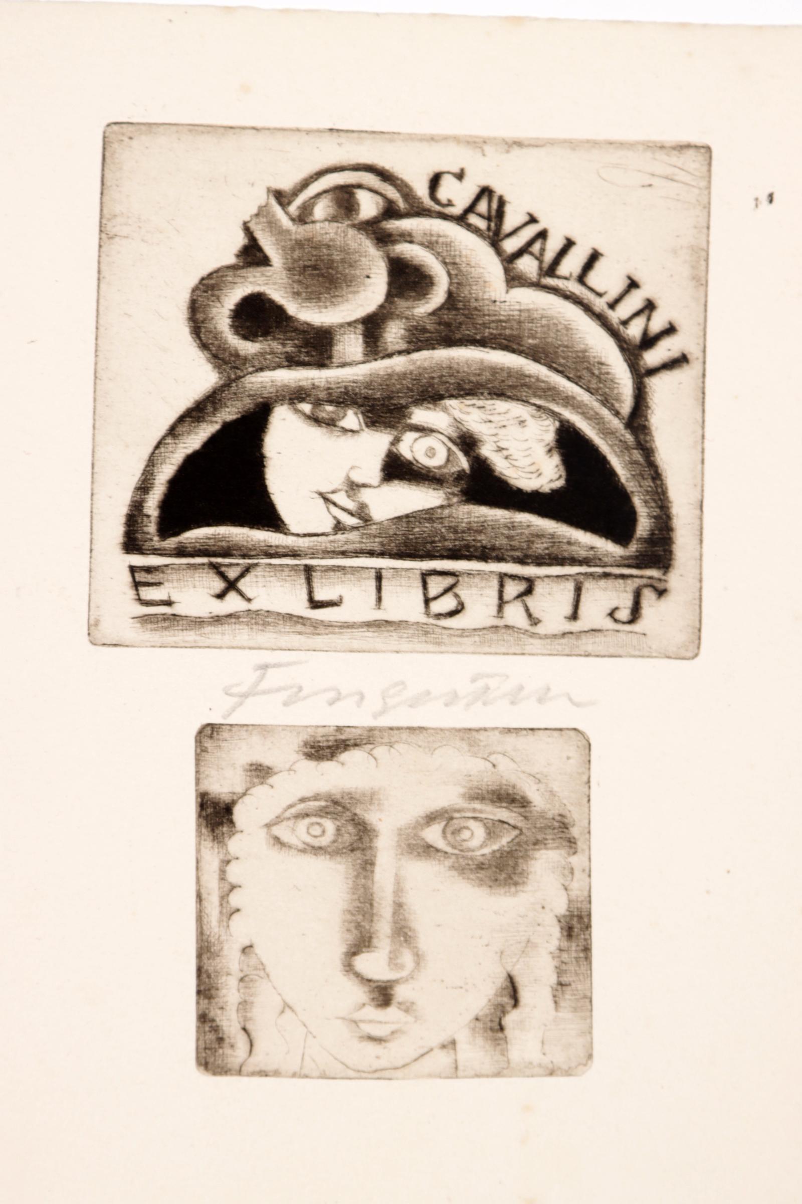 Fingesten, M, 3 exlibris (Cavallini (2 drukken op 1 blad, Rene Maeterlink, Mantero), C3, gesigneerd, opgeplakt (geweest)