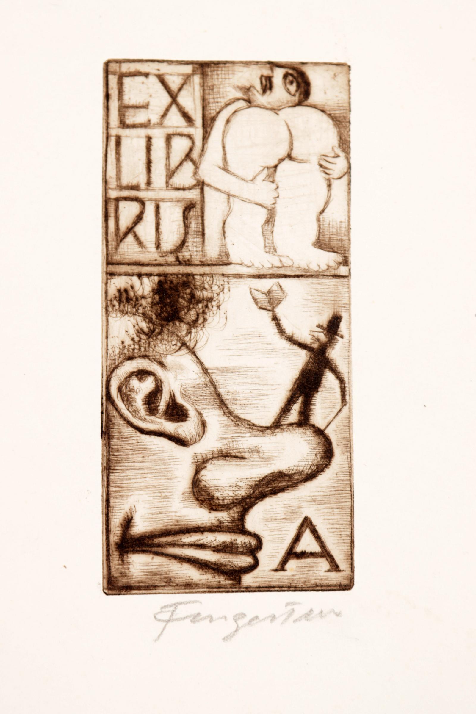 Fingesten, M, 3 exlibris (Herta Fleischer, Peter Fingesten, A.), C3, gesigneerd, opgeplakt (geweest)