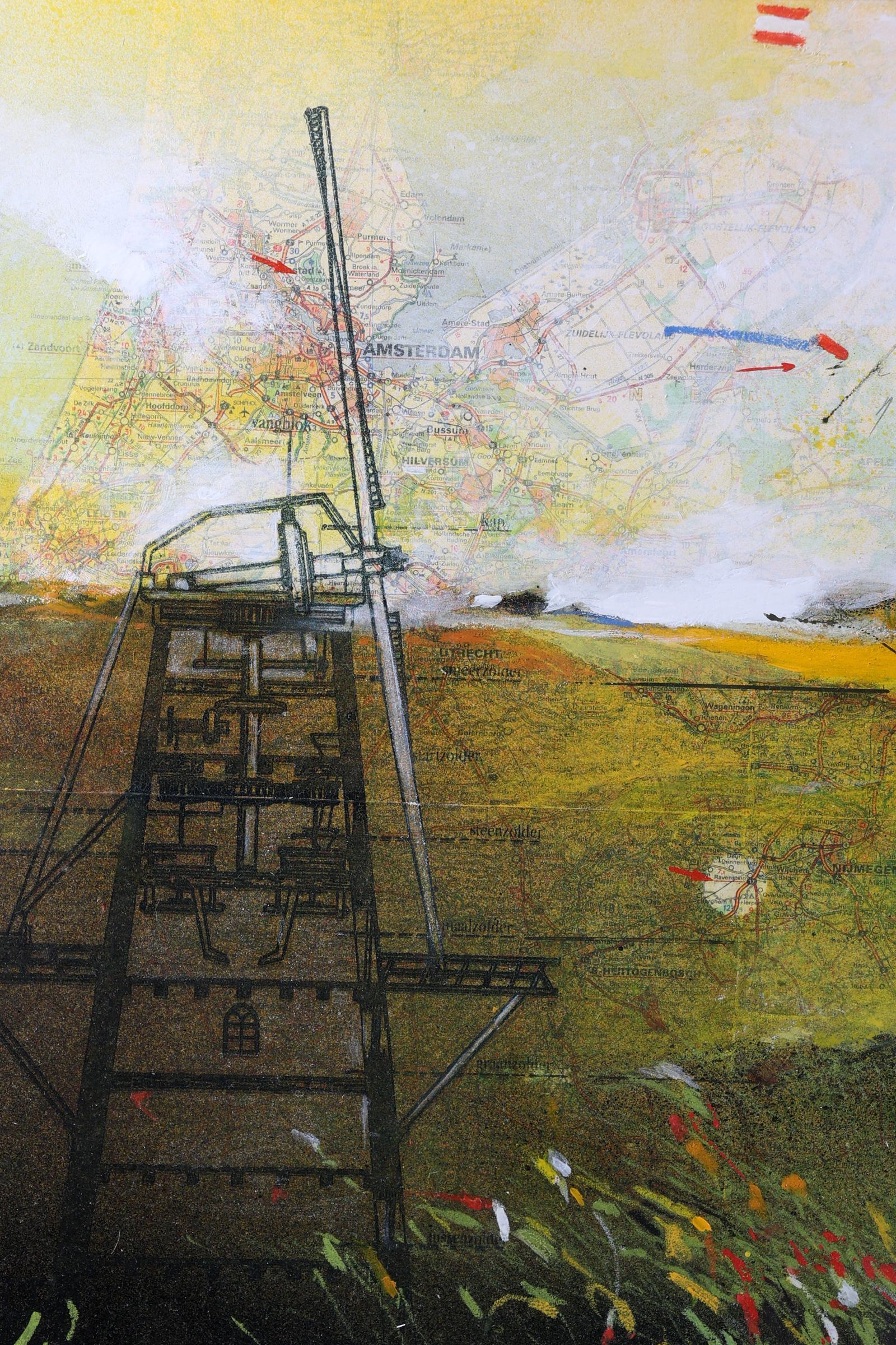 Martin R. Baeyens, Gent 1943, Reference 7 Meulemans, acrylverf op kaart van Nederland, 70 x 44 cm.