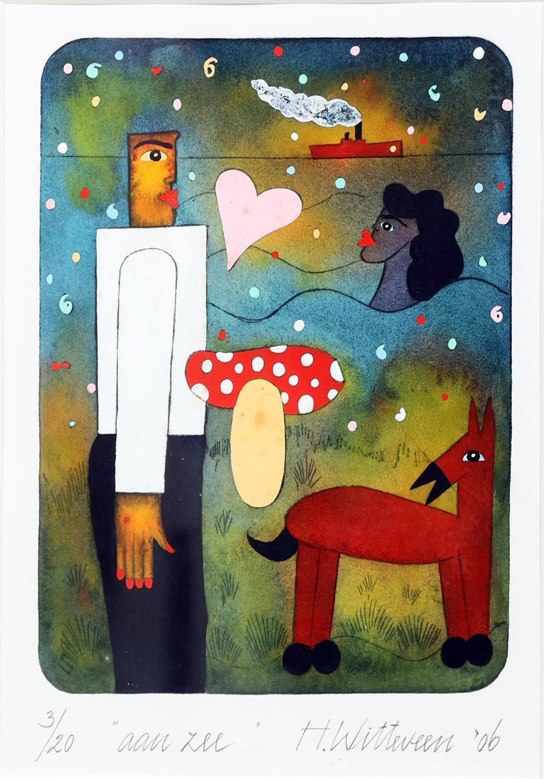 H. Witteveen, Aan zee, handgesigneerde zeefdruk, nr.3/20, gedateerd 2006, 24 x 17 cm.