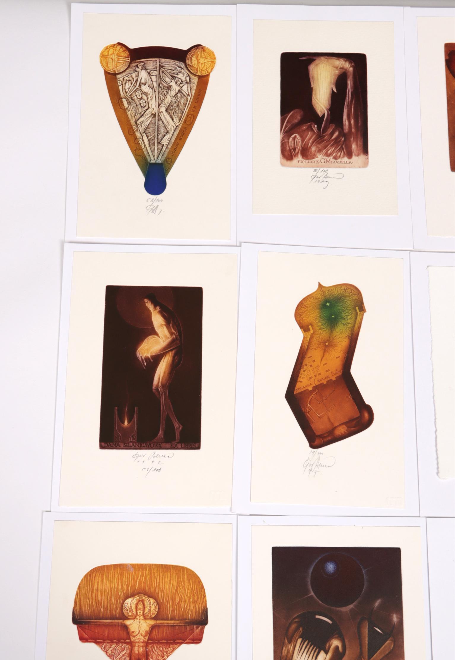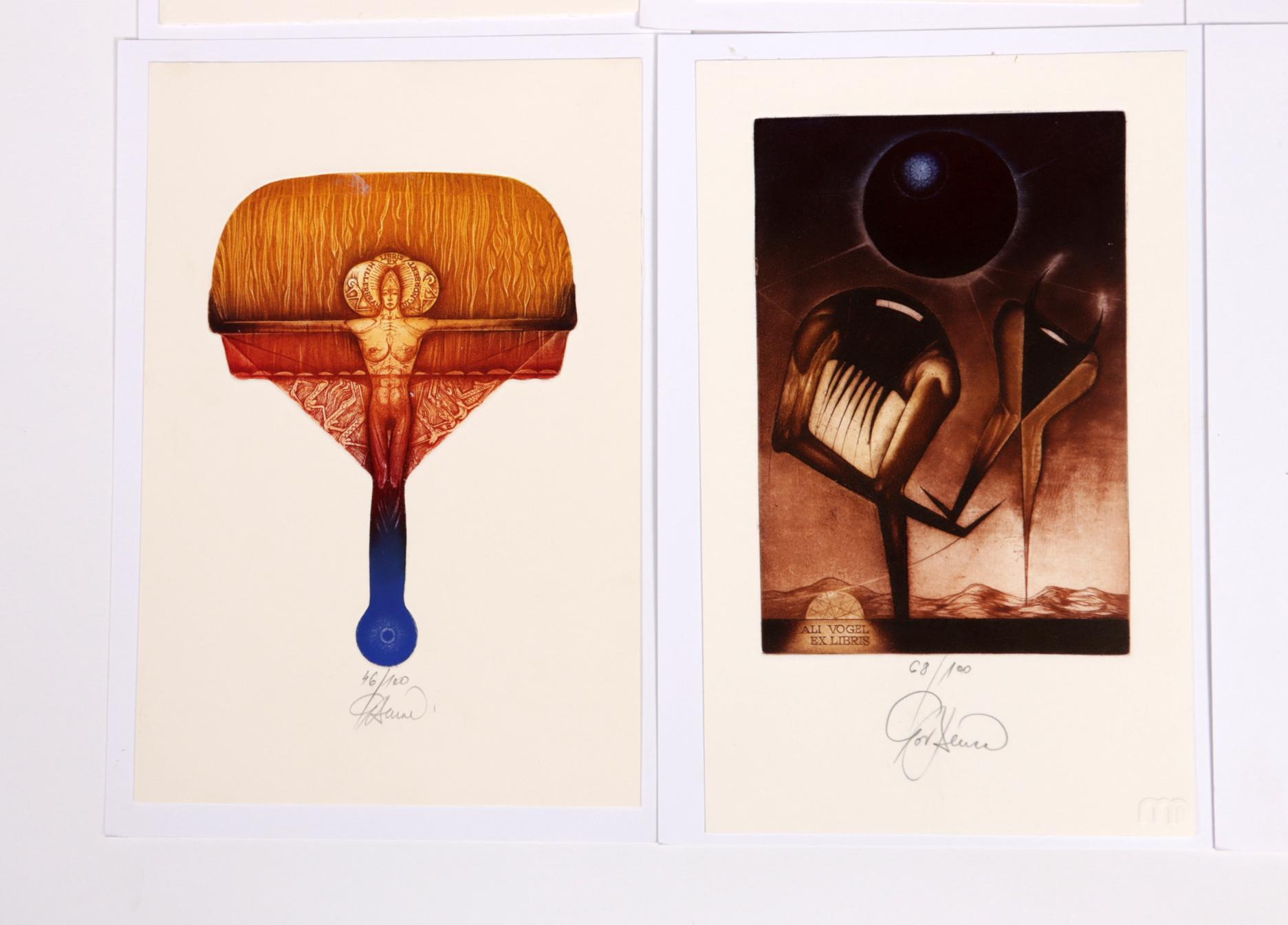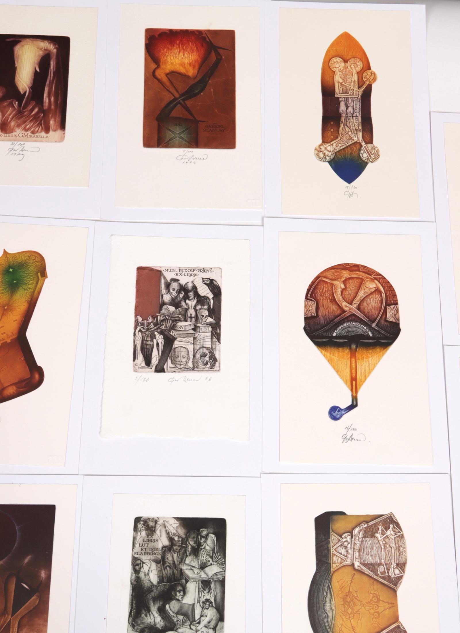 Benca, I., 14 exlibris C3C5 (grotendeels meerkleuren), genummerd / gesigneerd, opgeplakt. O.a. voor Vogel, Slabbinck, Kolar, Mirabella, Hillerbrandt, Burch, Slanicay.