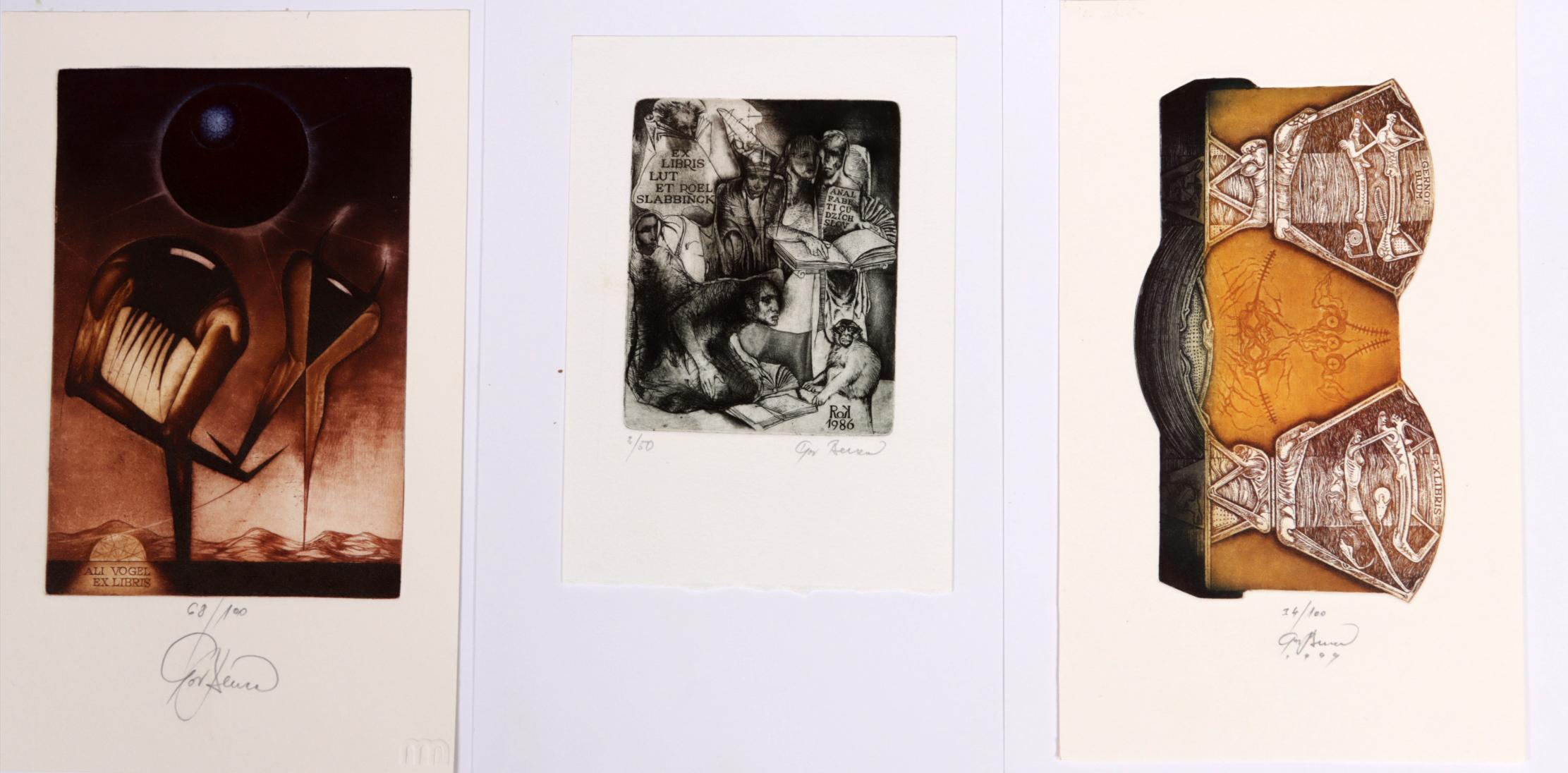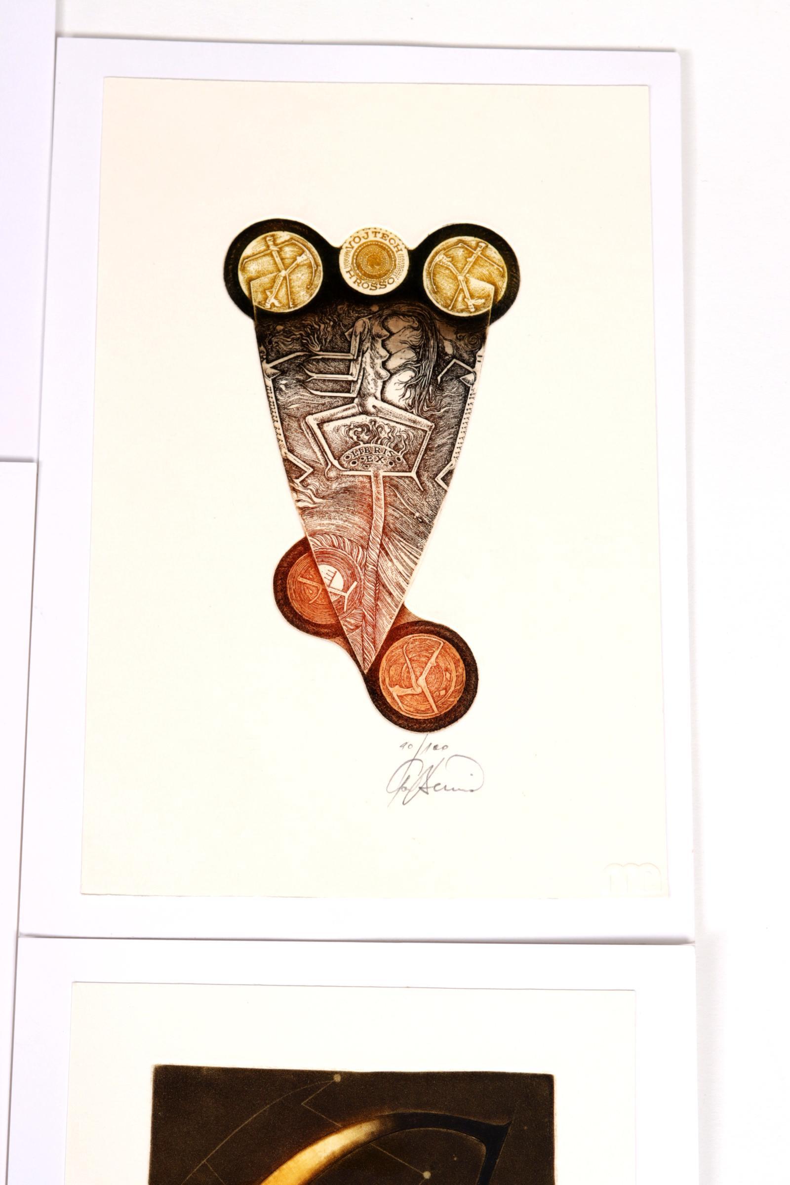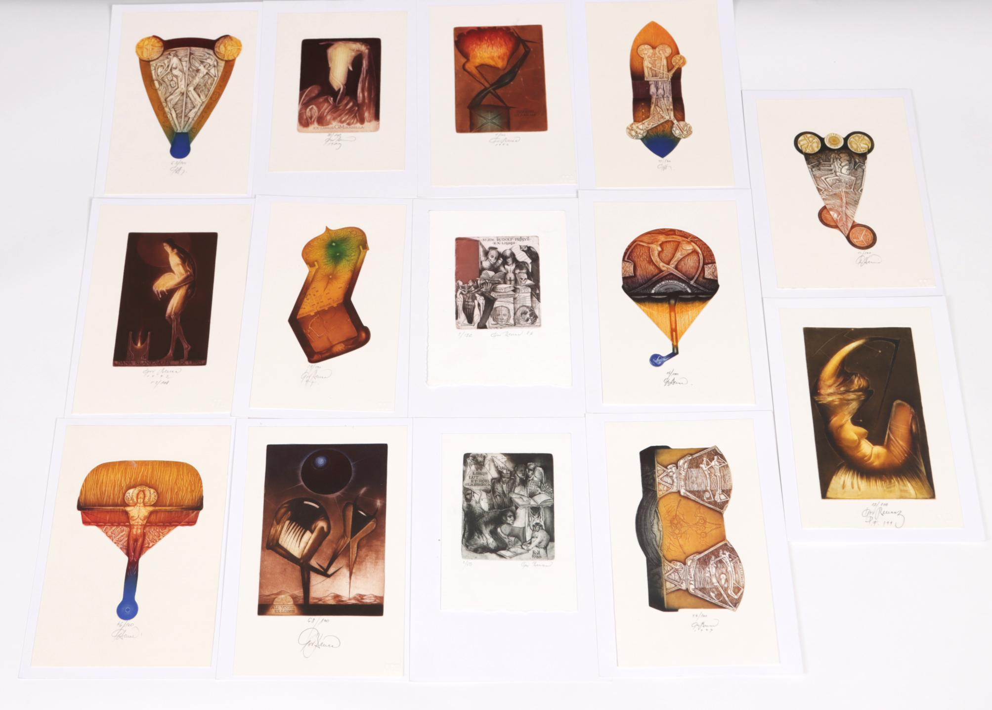 Benca, I., 14 exlibris C3C5 (grotendeels meerkleuren), genummerd / gesigneerd, opgeplakt. O.a. voor Vogel, Slabbinck, Kolar, Mirabella, Hillerbrandt, Burch, Slanicay.