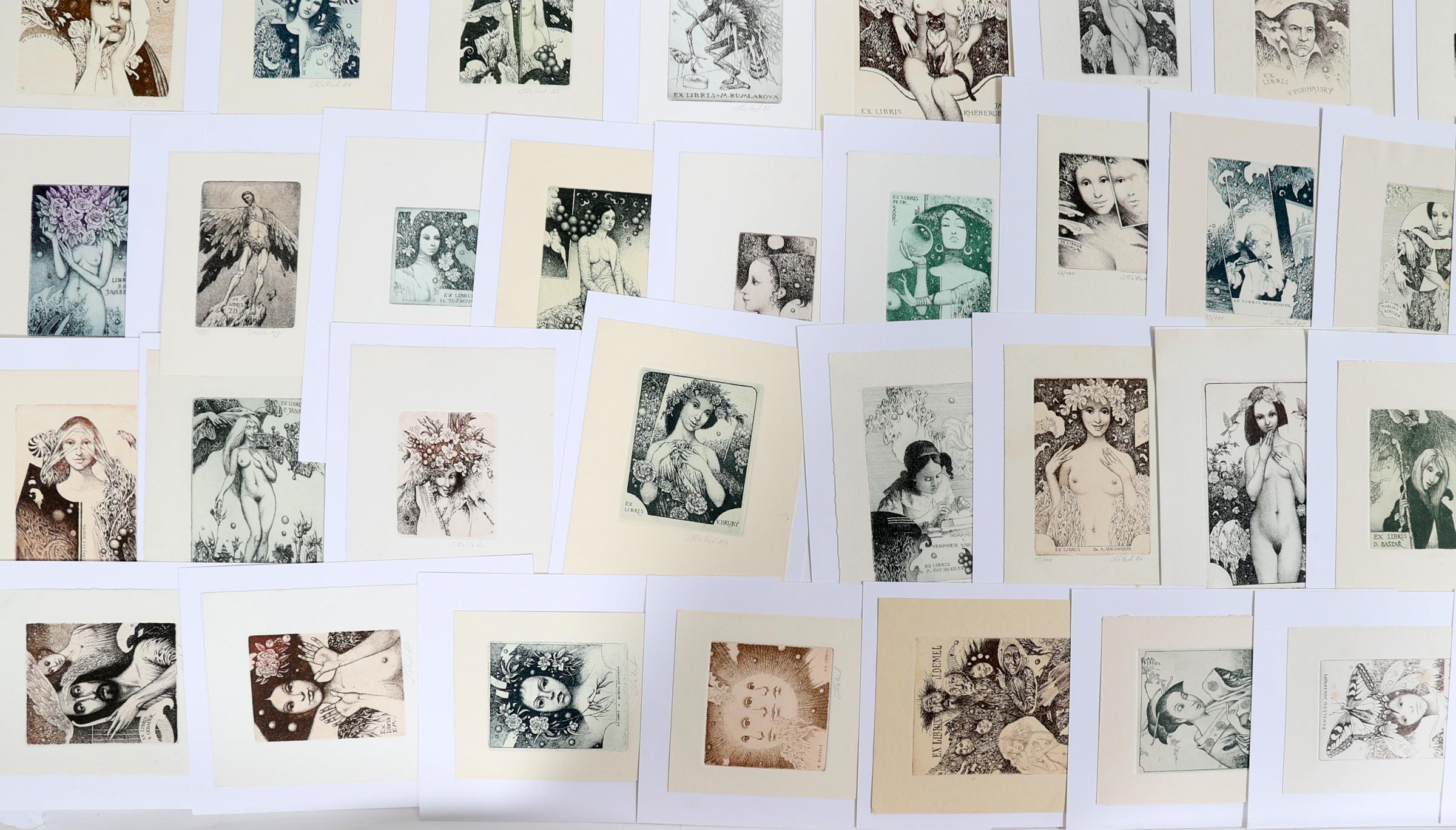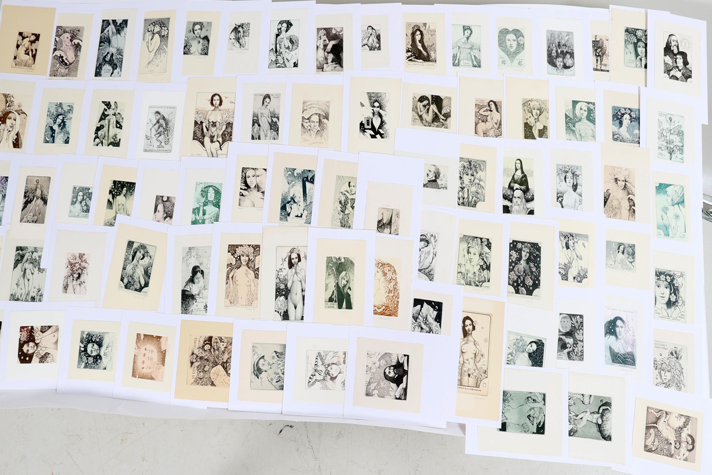 Kabrt,J., plm. 75 exlibris, C3, gesigneerd, opgeplakt