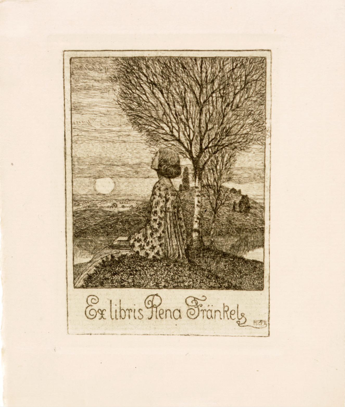 Vogeler, H., exlibris Rena Fraenkels, C3, niet gesigneerd, opgeplakt geweest