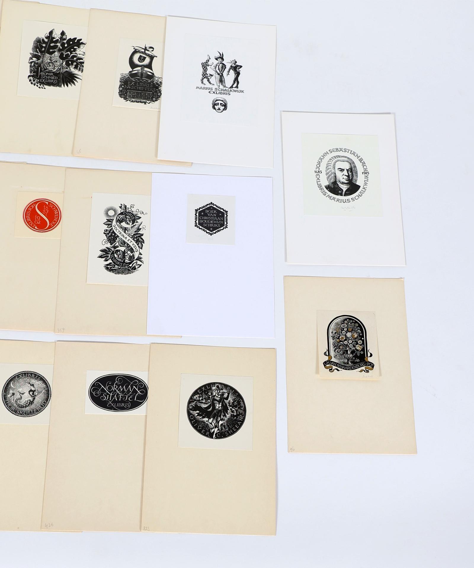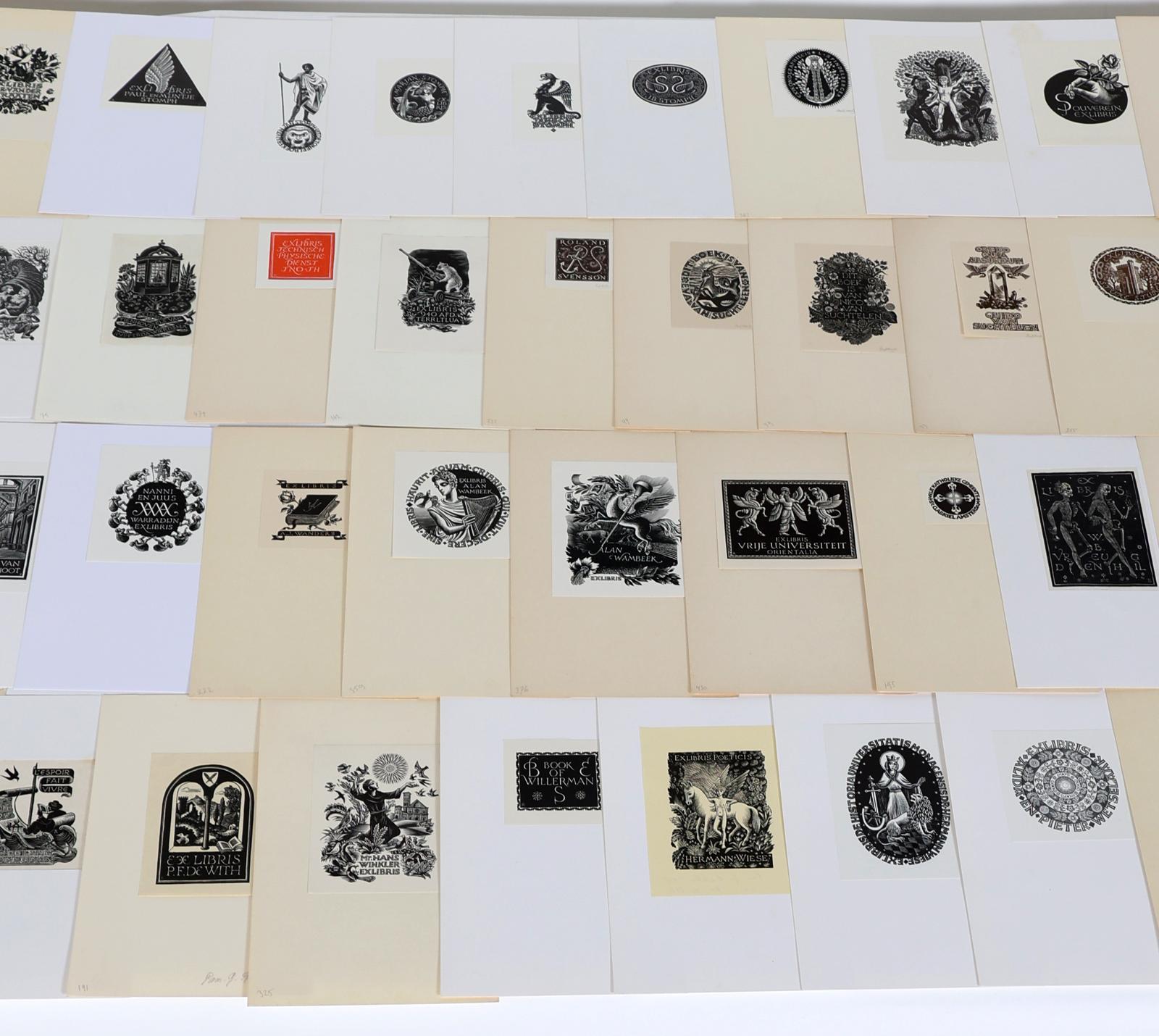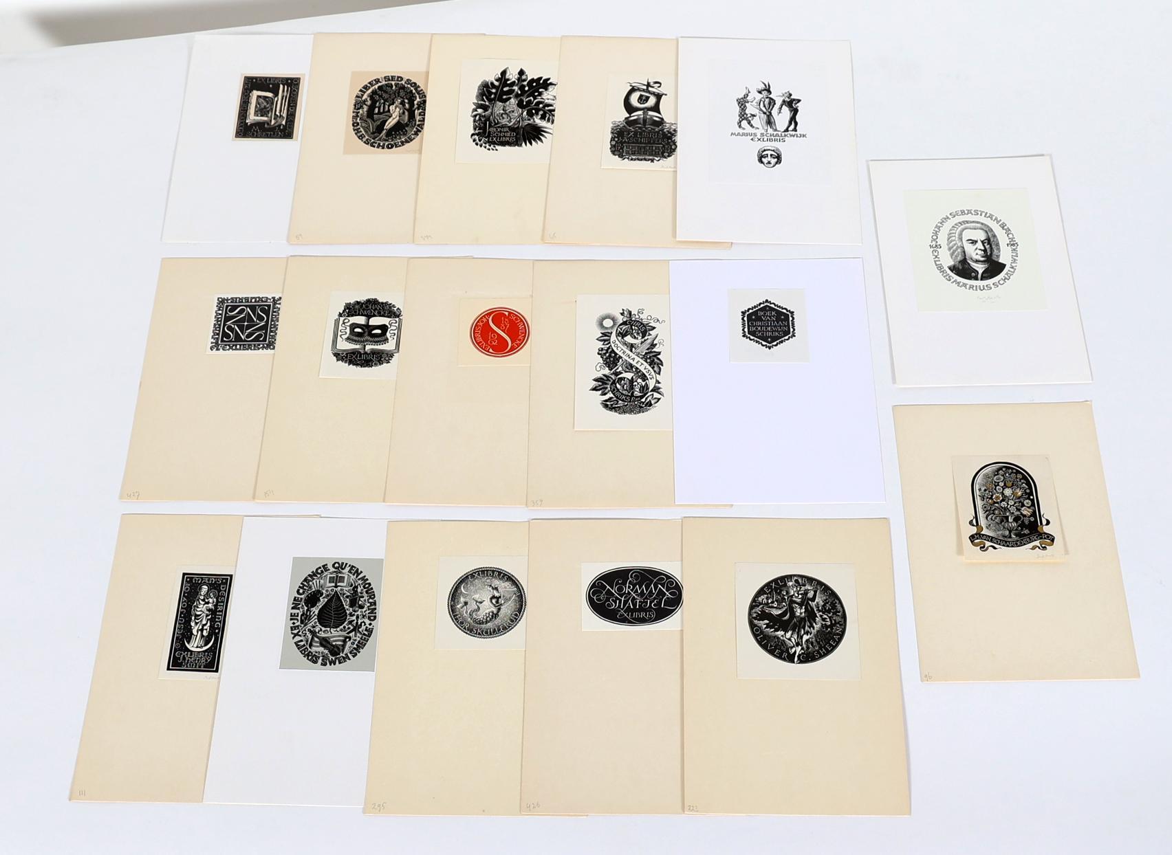 Rueter, Pam G., 75 exlibris, X2, deels gesigneerd, opgeplakt