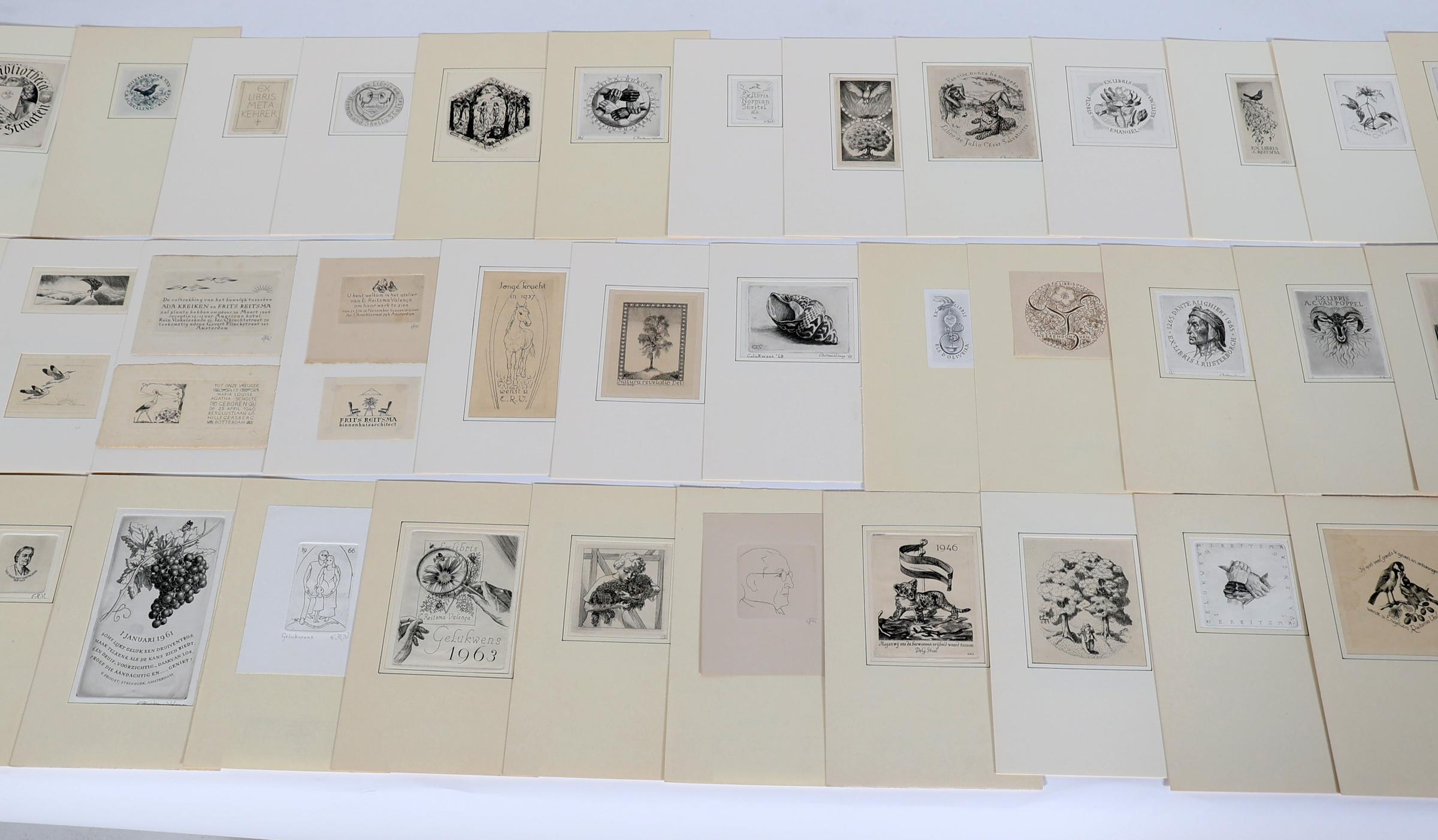 Reitsma Valenca, E., 61 exlibris / kleingrafiek, merendeel kopergravures, deels gesigneerd / gemonogrammeerd, opgeplakt