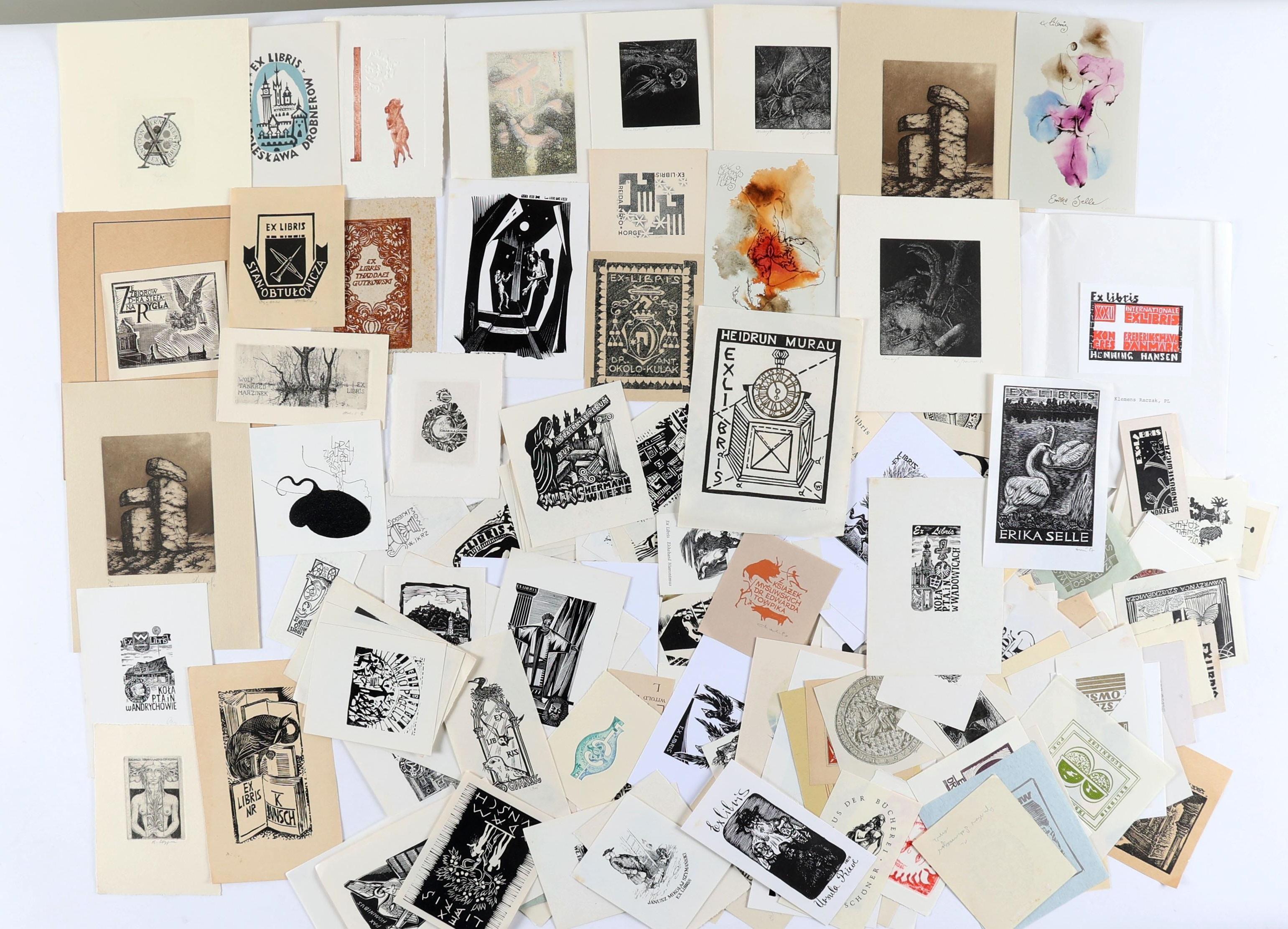collectie van plm. 200 Poolse exlibris en kleingrafiek, diverse technieken, deels opgeplakt, deels gesigneerd.