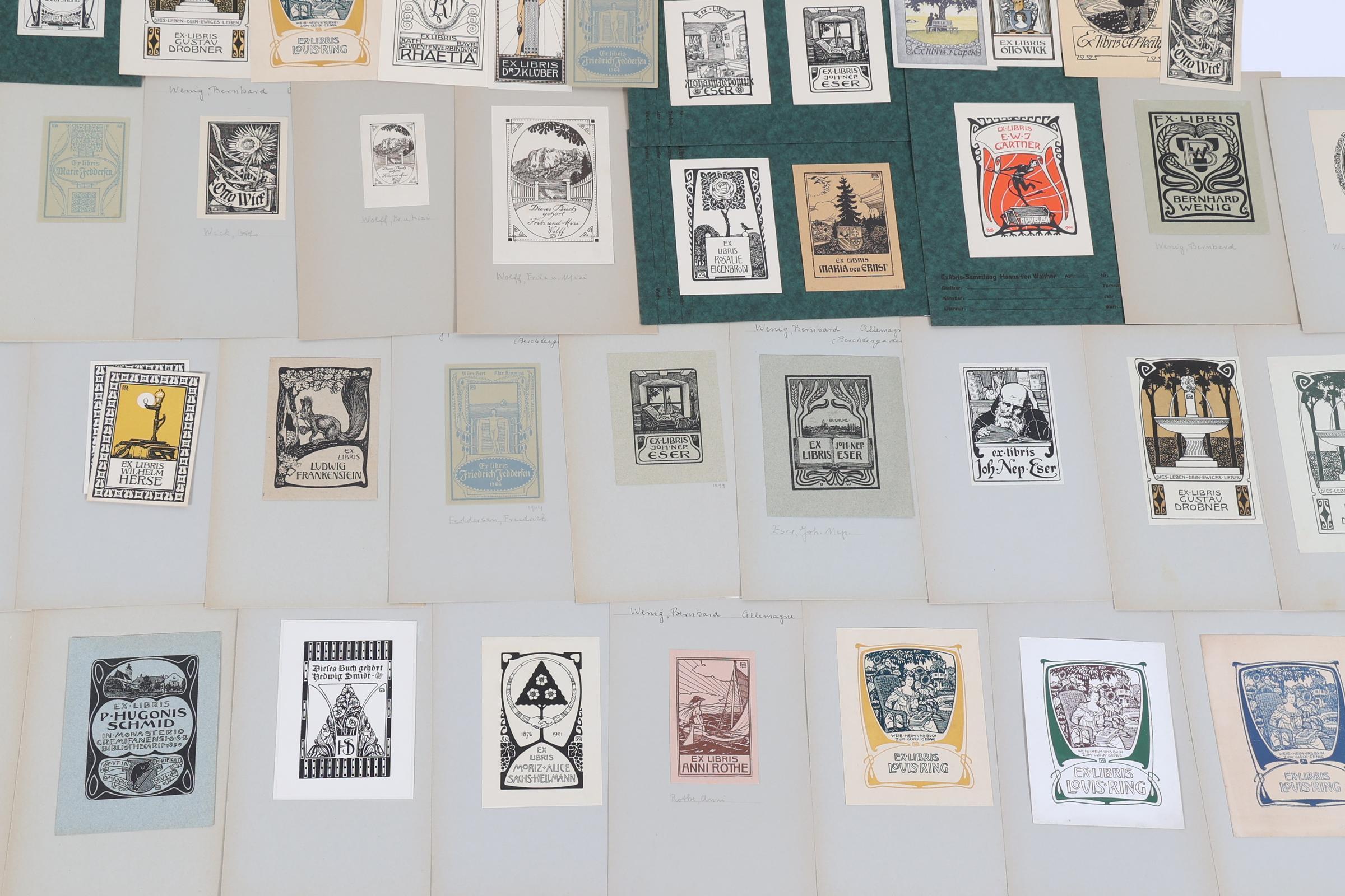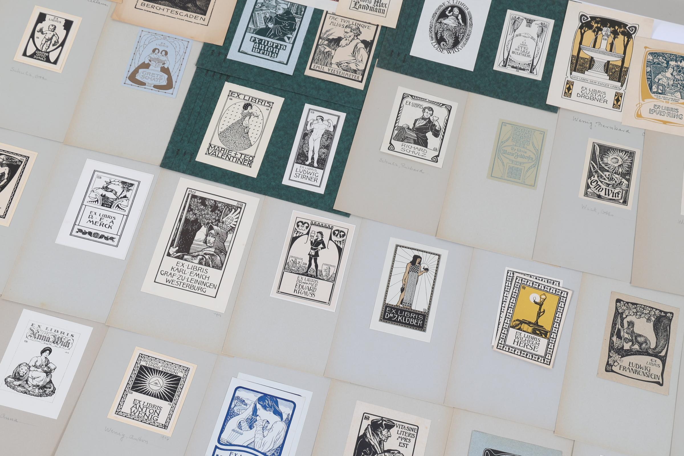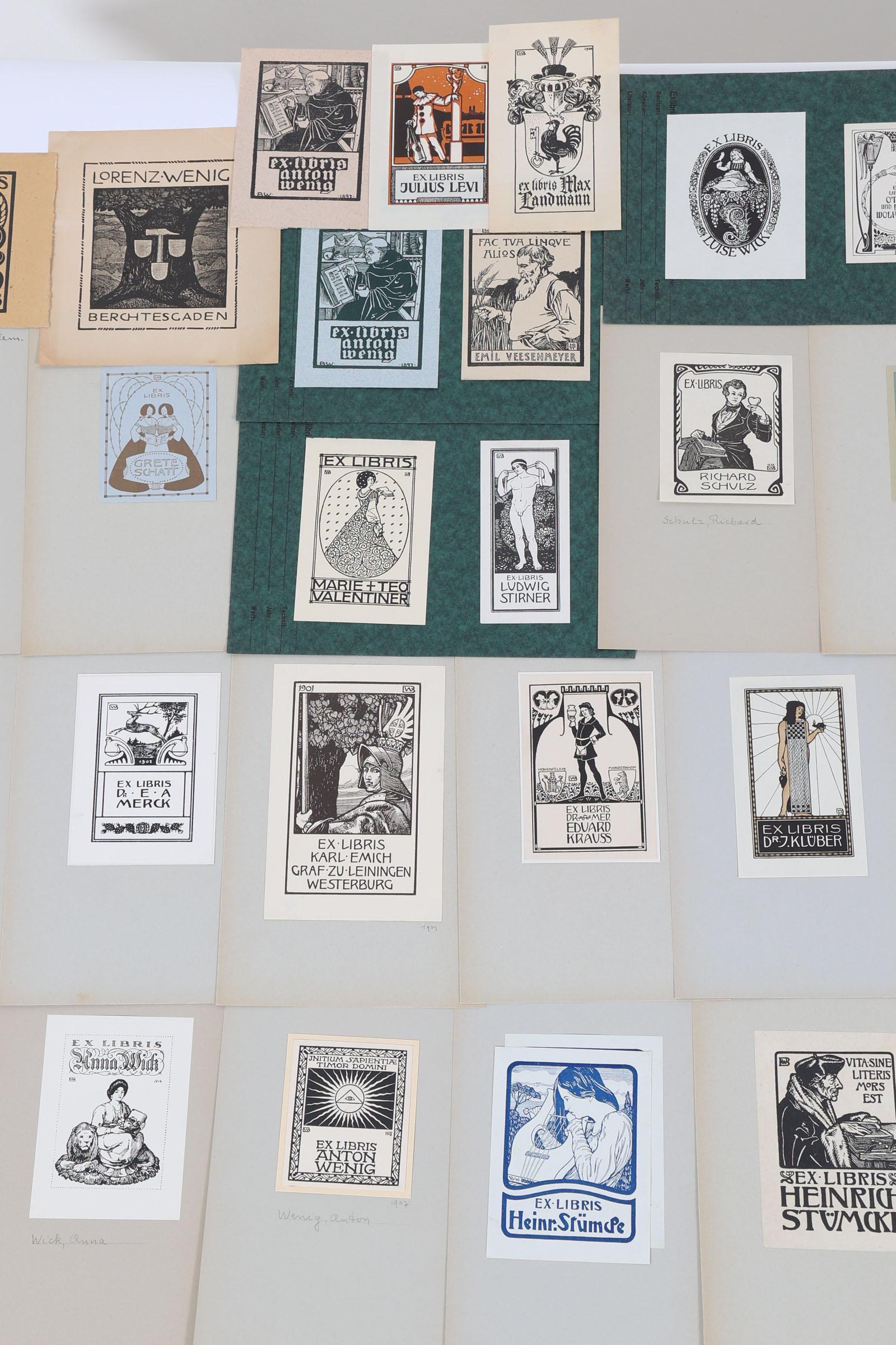 Wenig, B., plm. 65 exlibris, cliché, niet gesigneerd, opgeplakt