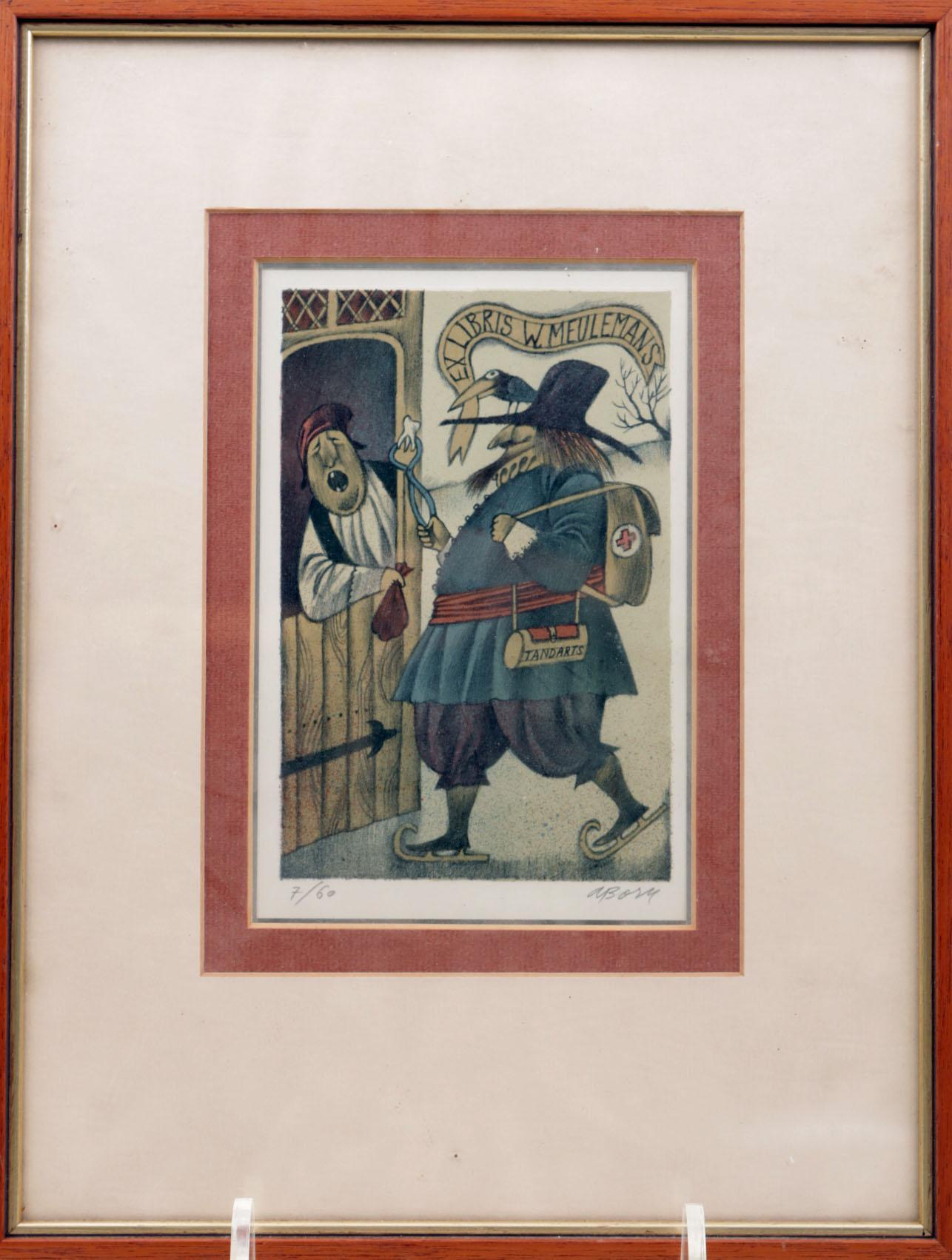 Born A., Ex libris, W. Meulemans, nr.7/60, ingelijst, 20 x 14 cm.