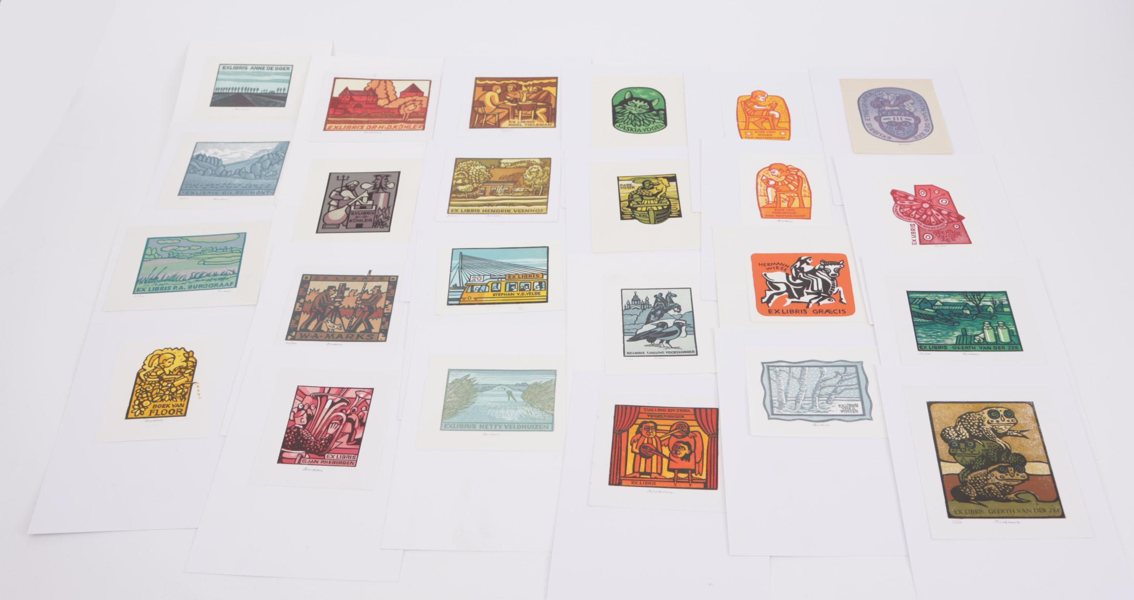 Blokhuis, H., 24 exlibris, X3 (meerkleuren), gesigneerd, opgeplakt.