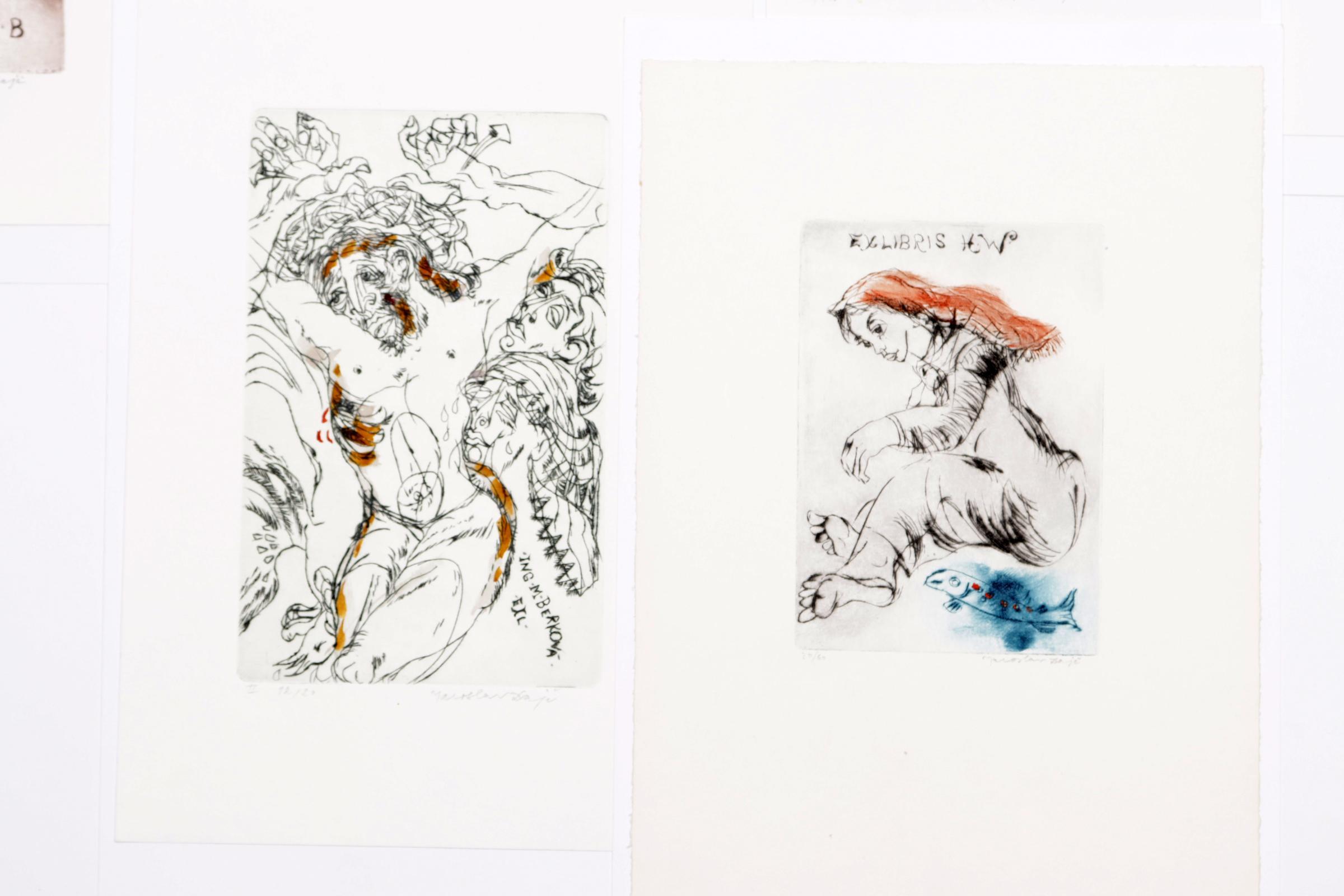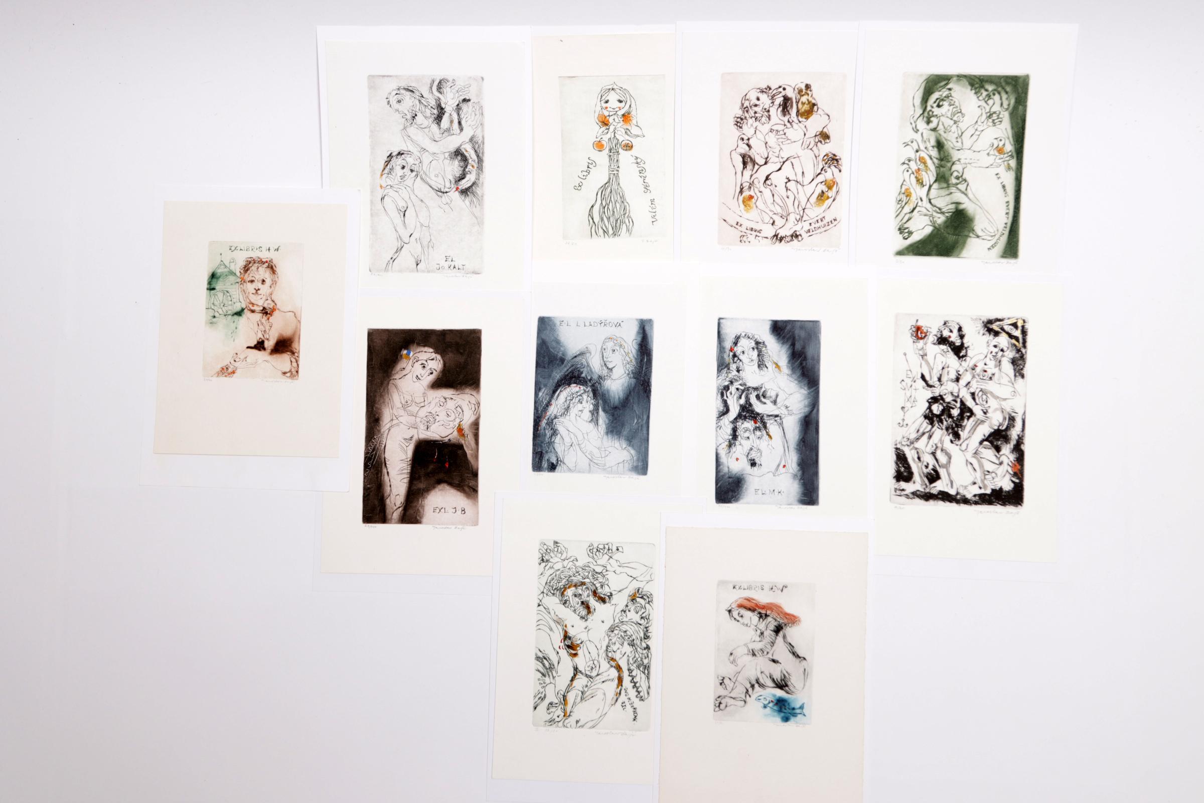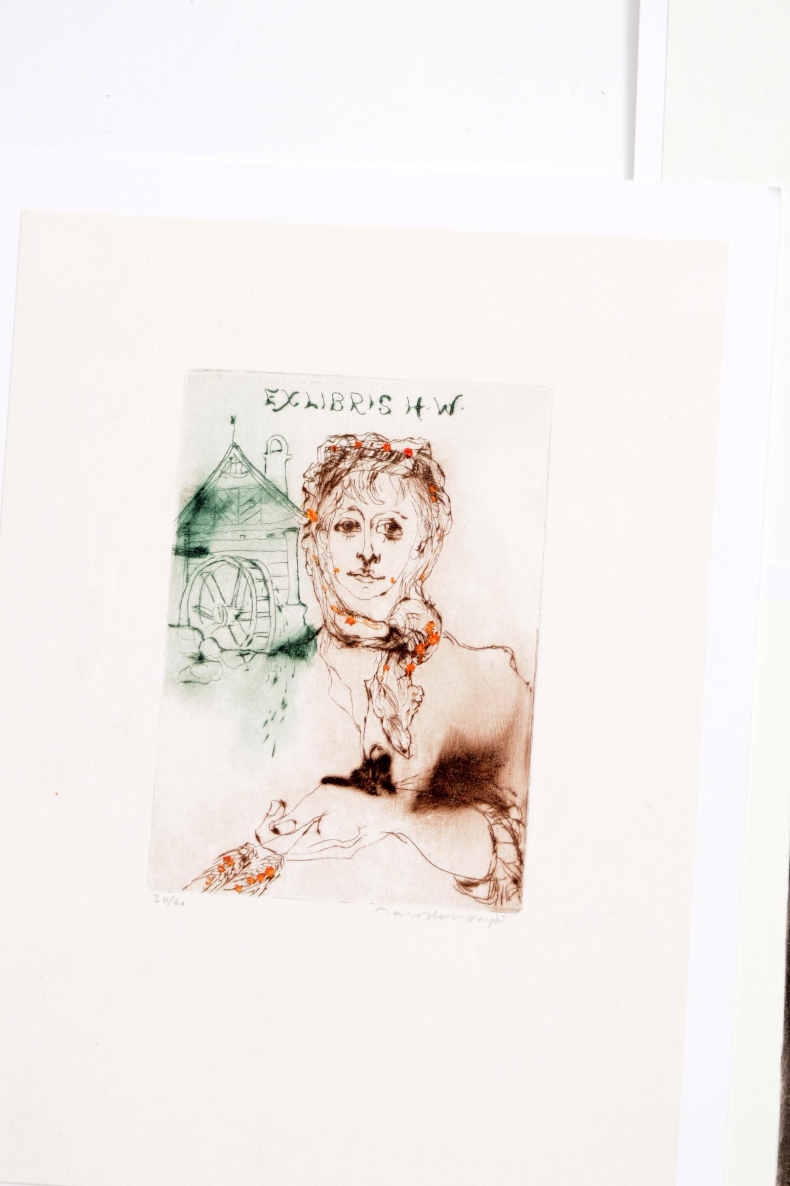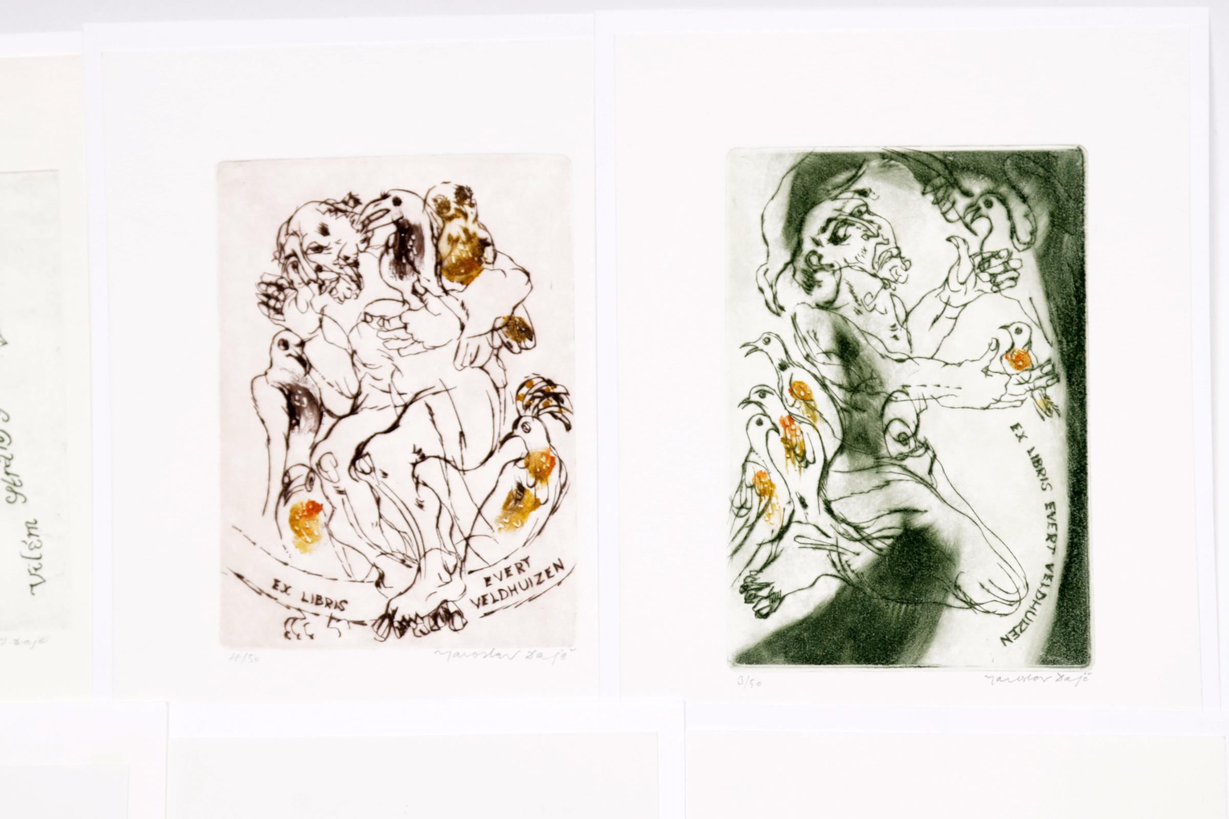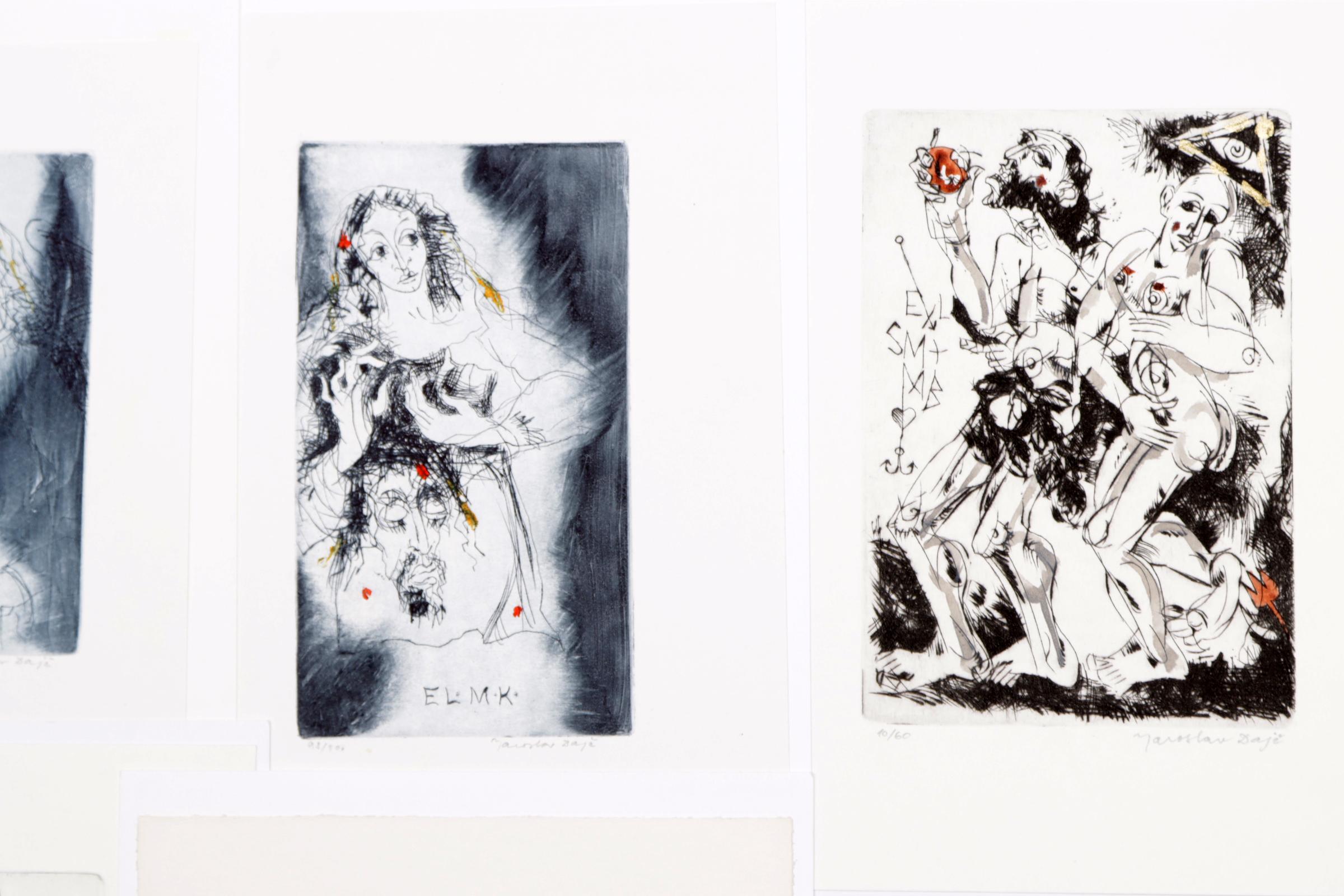 Dajc, J., 11 exlibris, C4, genummerd en gesigneerd. O.a. voor Veldhuizen, Stransky, MK, Ladyrova.