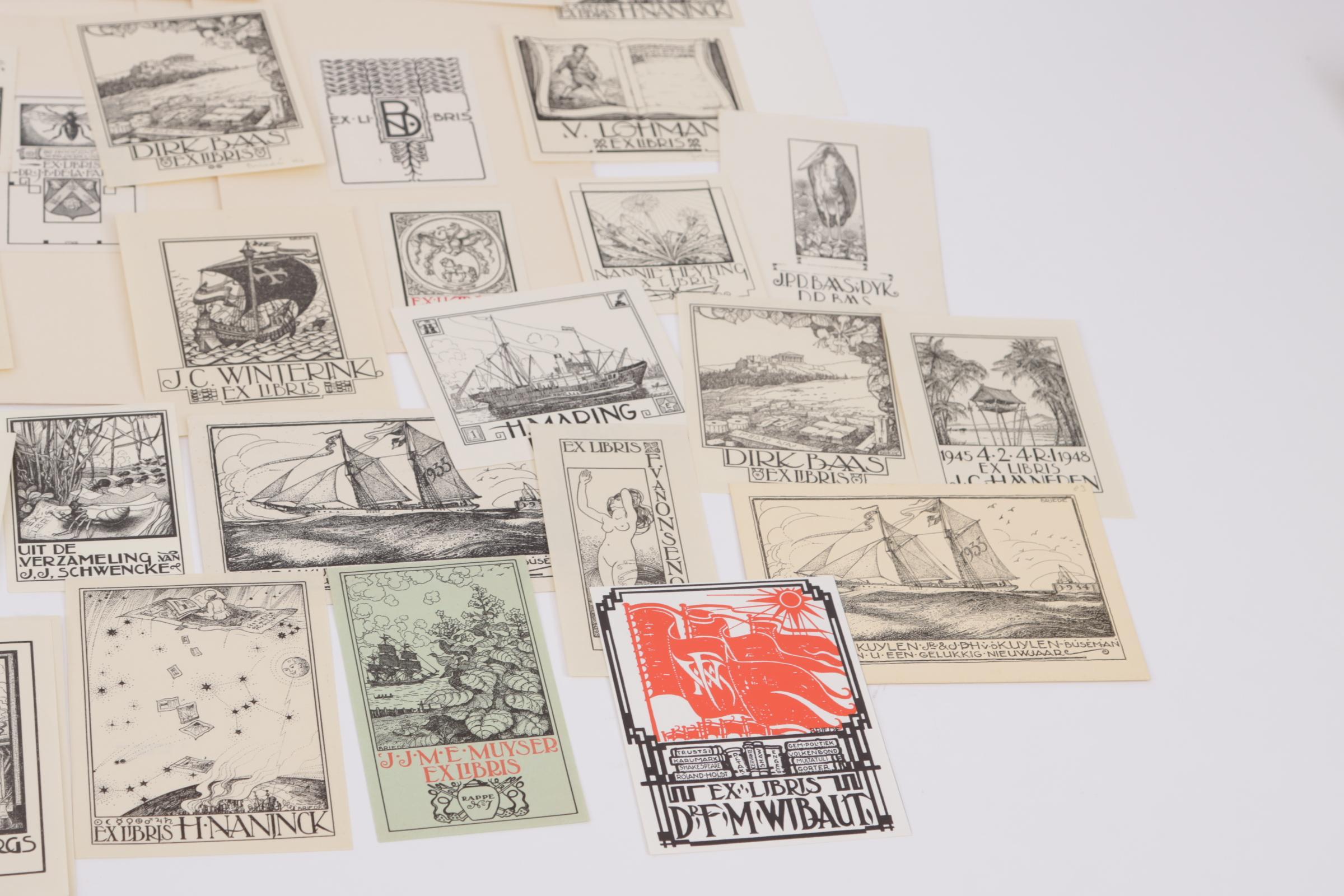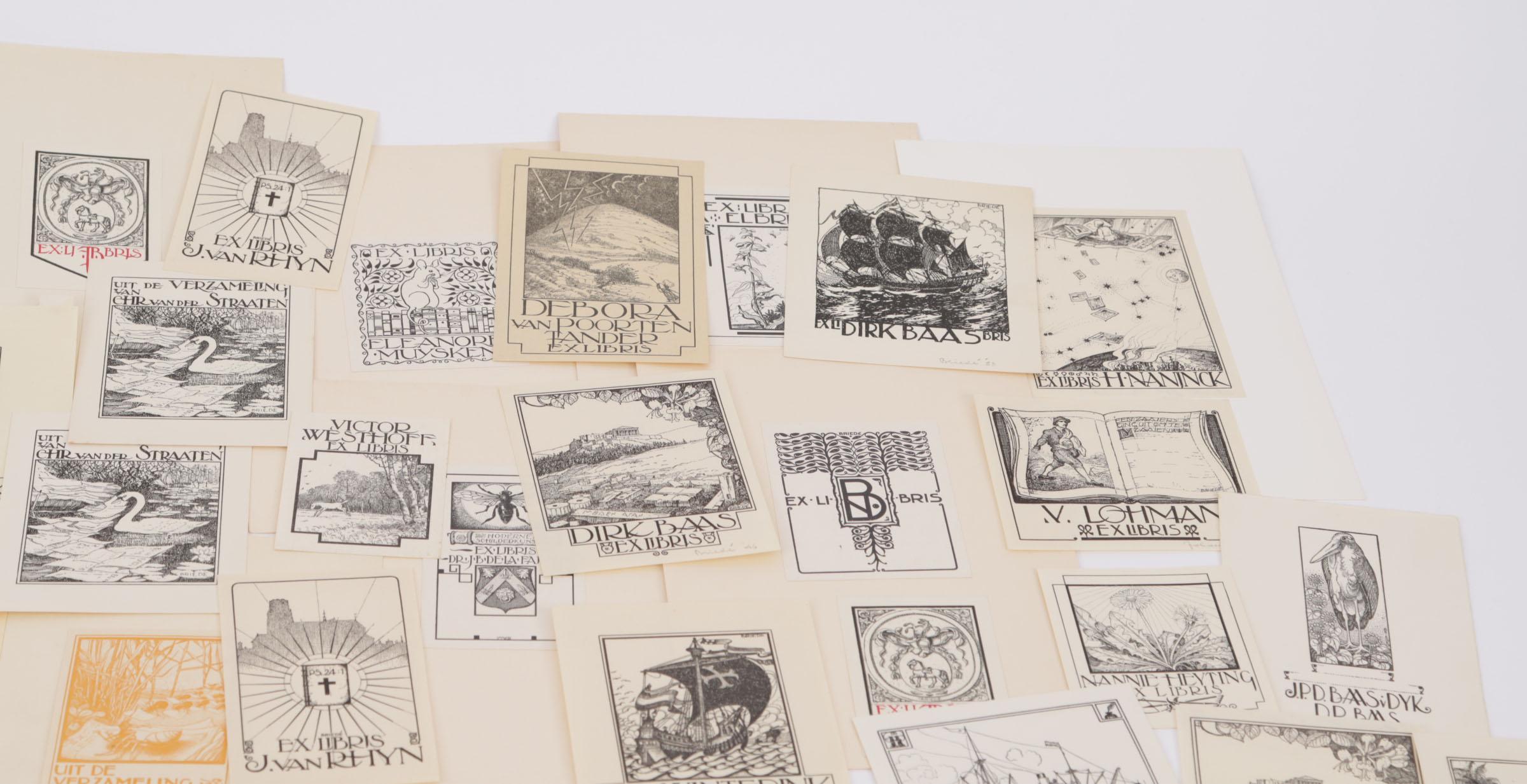 Briede, Joh., plm. 50 exlibris / kleingrafiek, cliché, deels gesigneerd, deels opgeplakt. Bevat enkele doubletten.
